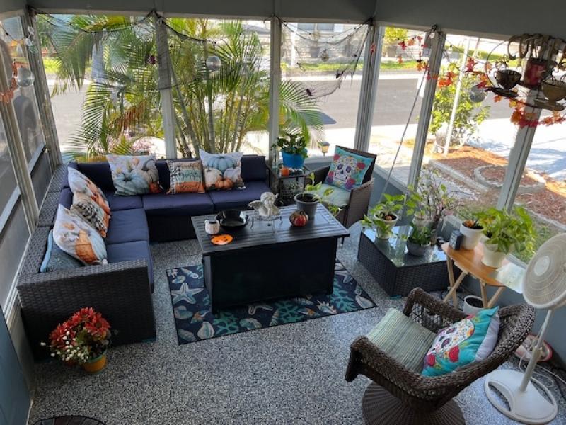 The epitome of Florida living. Gorgeous 2 bedroom, 2 bath home with delightful all-seasons room. 5 star adult, resort style community with amazing amenities including pool, spa, gym, billiards, pickleball, bocce lawn, clubhouse, organized activities & events and shuffleboard. Live where most people dream of vacationing. Enerfy saving new windows, 6 yr old shingled roof, granite counters, designer grade cabinets ad subway tile backsplash. Sellers are leaving lots of stuff for the new owners including living room sofa, end tables tv stand, all appliances, dining room table with four chairs, white cabinet (dr), green cabinet (dr), picture of ocean (dr), new full-sized bed and brand new mattress (gr), dresser (gr), end table (gr), queen-sized bed with orthopedic mattress, dresser and (2) end tables (mr), Lanai couch, chair, TV, end table, propane firepit and washer and dryer. Bring your toothbrush and come on! Call Cheryl for a tour today! (