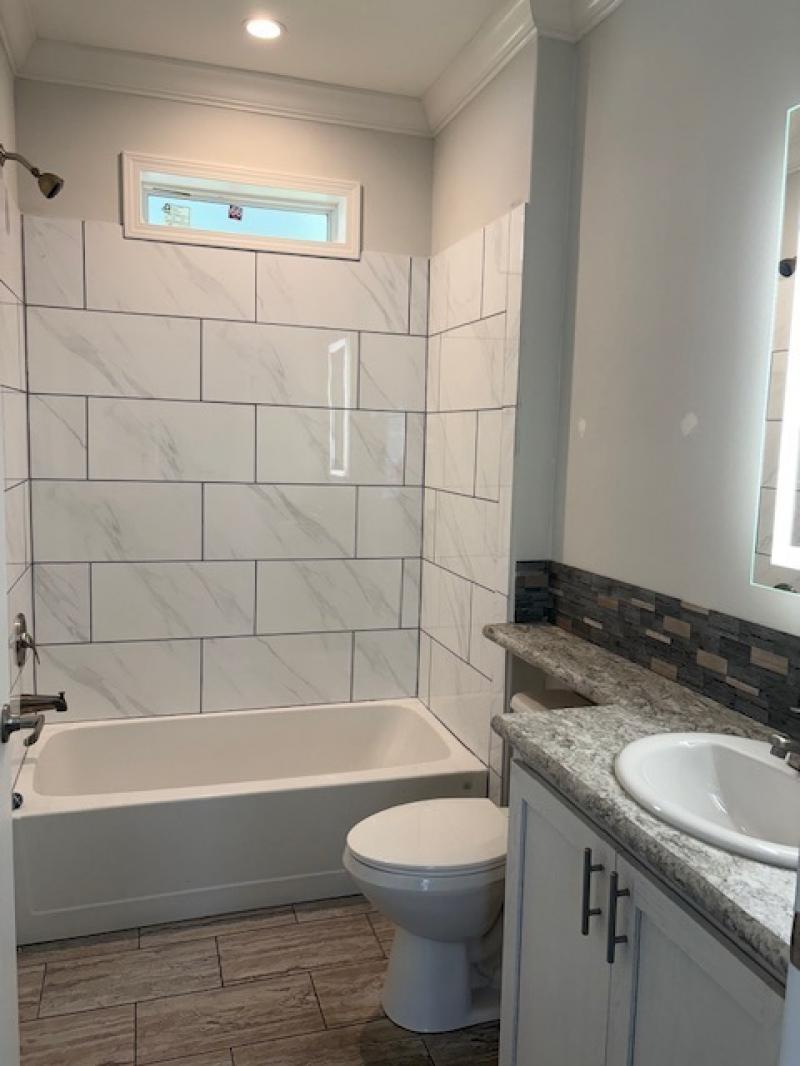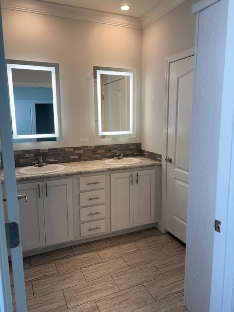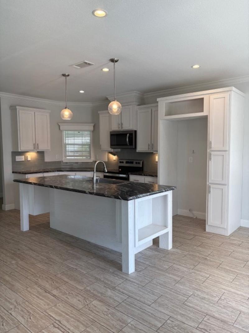 Heron Model, nearly 1,500 square just came available! The home is accompanied with a paved entrance, clean uniformed landscaping, full porch and carport with your personal storage shed. Three bedroom space is equipped with retro ceiling fans and two bathrooms completed with mosaic 8″ tile backsplash. Full stainless steel appliances fitted with a farmhouse sink, deluxe refrigerator, built in microwave and full range oven. Turin vinyl flooring through with welcoming carpets in rooms. 5′ crown molding and base boards in entire home.