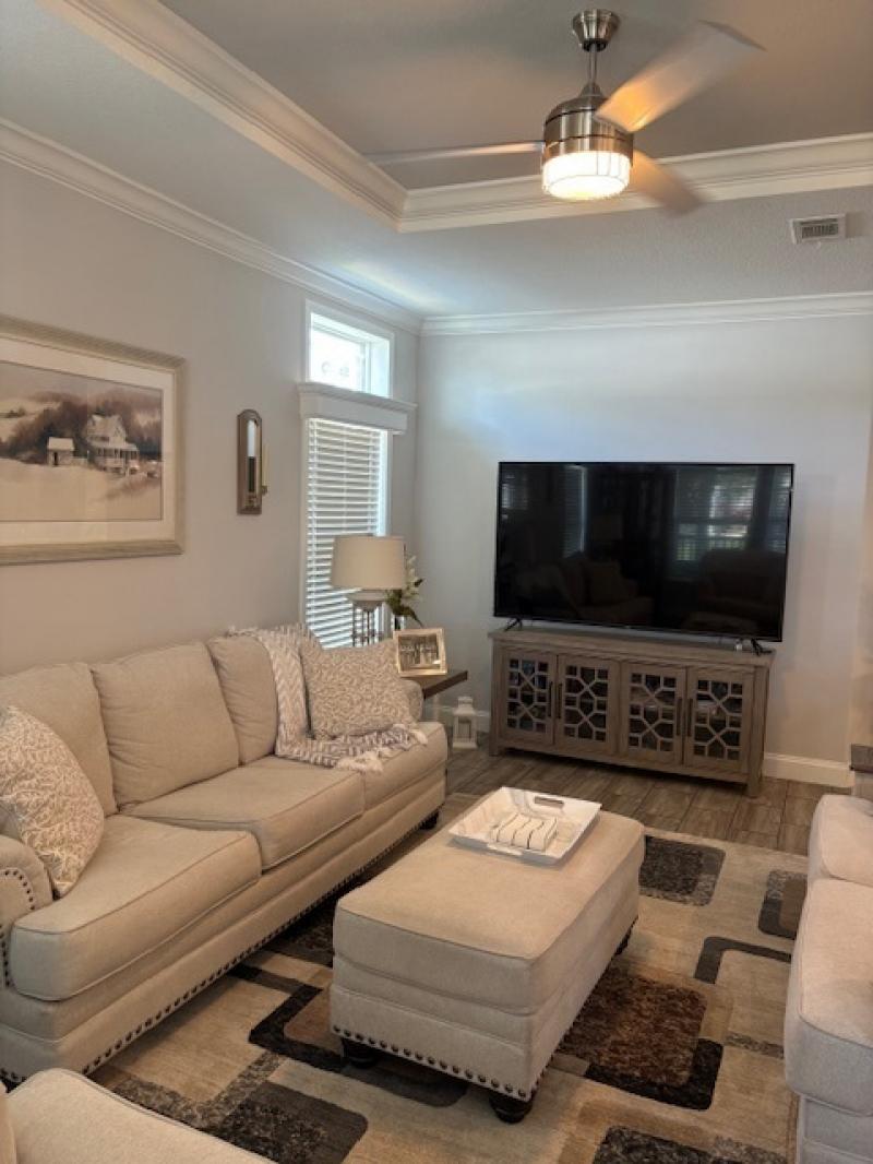 You will love the front screened-in upgraded, length of the home porch. Extra ceiling fans and outdoor furnishings are included as well as washer and dryer, the rest of the furnishings and golf cart are negotiable.