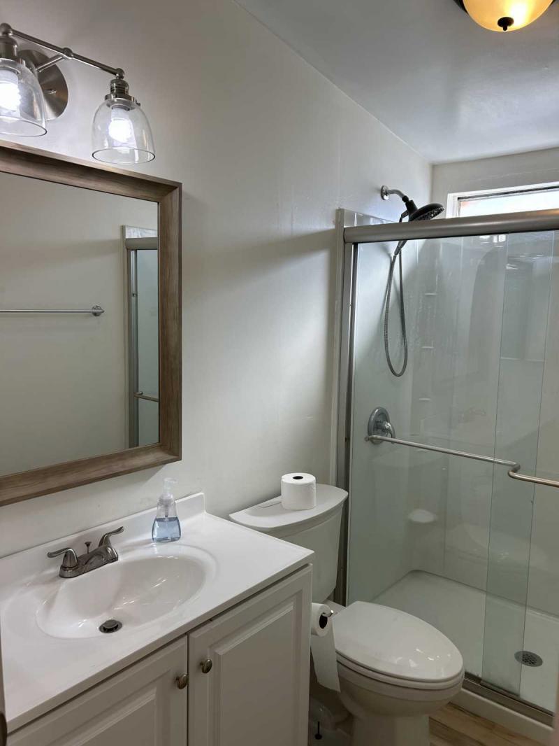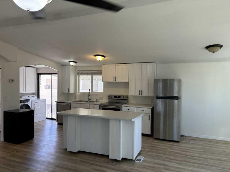 Beautifully remodeled 3 bedroom 2 bath home in all-age community. Cool Beachy vibes with all new vinyl plank flooring, vaulted ceilings, accent wood wall, open kitchen has new counters, Large moveable island, updated stainless steel appliances ( Bosch & Maytag), new sink, updated lighting and custom arches. Spacious primary bedroom has a double closet and a sliding new barn door to en-suite custom bath. Two large guest bedrooms ( One with custom recording / sound studio built-in) plus a nice guest bathroom. In-home laundry has gas dryer. 4 ton AC unit is only 2 years old. NEW shingled roof just 6 months old. Updated wiring and plumbing throughout. New vinyl skirting around home. New Front porch welcomes your guests. Private carport. Community has 2 pools, covered play area, basketball court, volleyball court, soccer field and community clubhouse. Night-time security patrol and on-site managers. MUST SEE – Financing available.