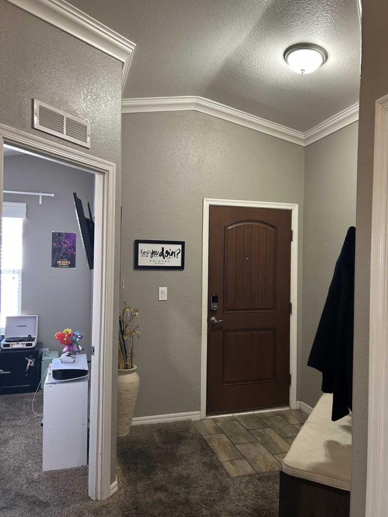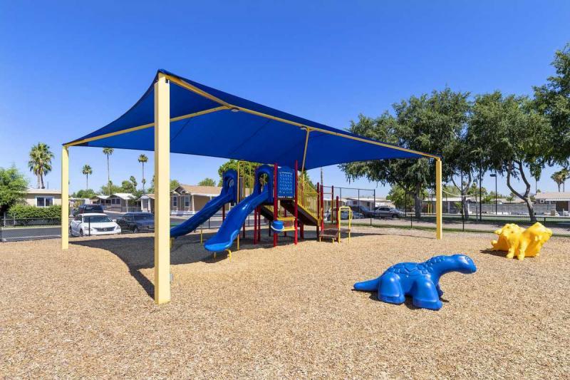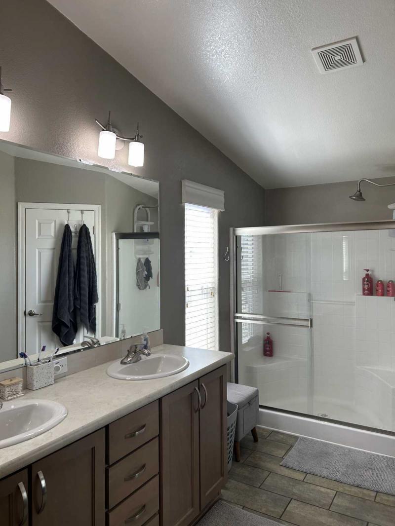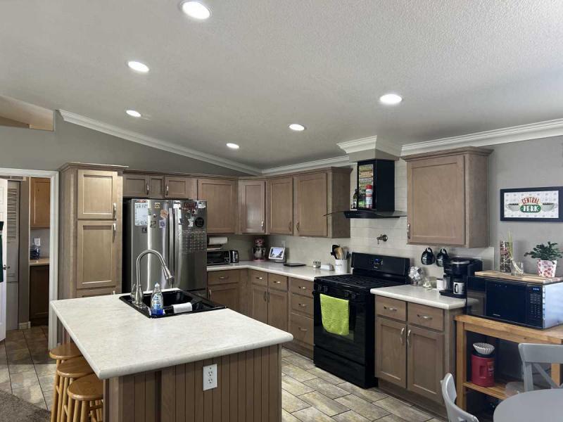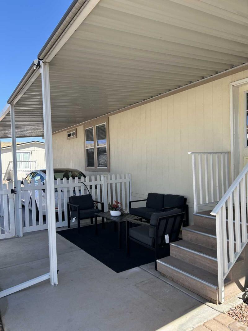 Gorgeous Large 3 bed 2 bath Cavco home has a huge open great room and split bedroom floorplan. Adorable curb appeal with welcoming front porch. Custom crown molding and cathedral ceilings with recessed lights throughout this lovely home. Chef’s dream kitchen has a large island and plenty of cabinets plus a dishwasher, gas range with vent hood & garbage disposal. Plumbed for pot filler at stove. HUGE open living room has soaring ceilings and great windows for natural light. Spacious primary bedroom features TWO walk-in closets and an en-suite bathroom with dual sink vanity and private commode room. Two extra guest bedrooms on opposite end of home plus a full guest bathroom with tub/shower combination. Great floorplan! Full-sized private laundry room with extra storage and a door to your large carport and patio area. MUST SEE! Easy financing and all-age central Tempe community has two pools, basketball & volleyball courts, a soccer field and night-time security patrol.