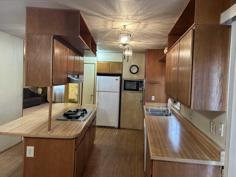Cherished family home for sale! Large 2 bedroom 2 full bath with 2 spacious living rooms and a formal dining room. Bring your finishing touches to this amazing home in a resort all-age community. Open kitchen has dishwasher, refrigerator, gas stove top, center island, built-in microwave and solid oak cabinets. Family room opens to kitchen with big windows. HUGE living room with formal dining area attached. Newer HVAC system ( Approx 6 years old). Nice corner lot. Must agree to bring home up to manager specs – see agent for list. Community features include pool, spa, fitness room, tennis court. night time security patrol and on-site managers.