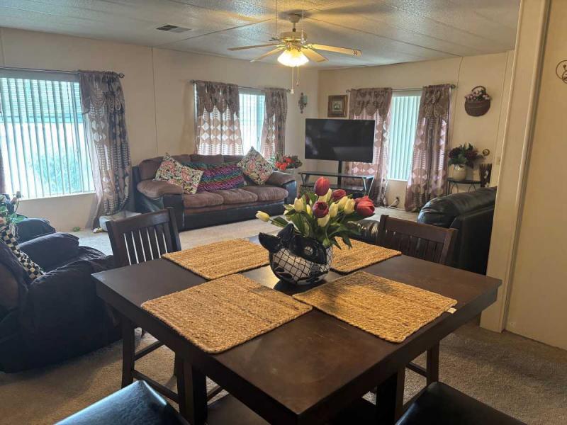 Ready to move in home on corner lot by Clubhouse! This two bedroom two bathroom has New Dishwasher Stove & Refrigerator, New wall A/C unit, Roof done in 2022, newer water heater, new light fixtures in the enclosed patio. This home has a