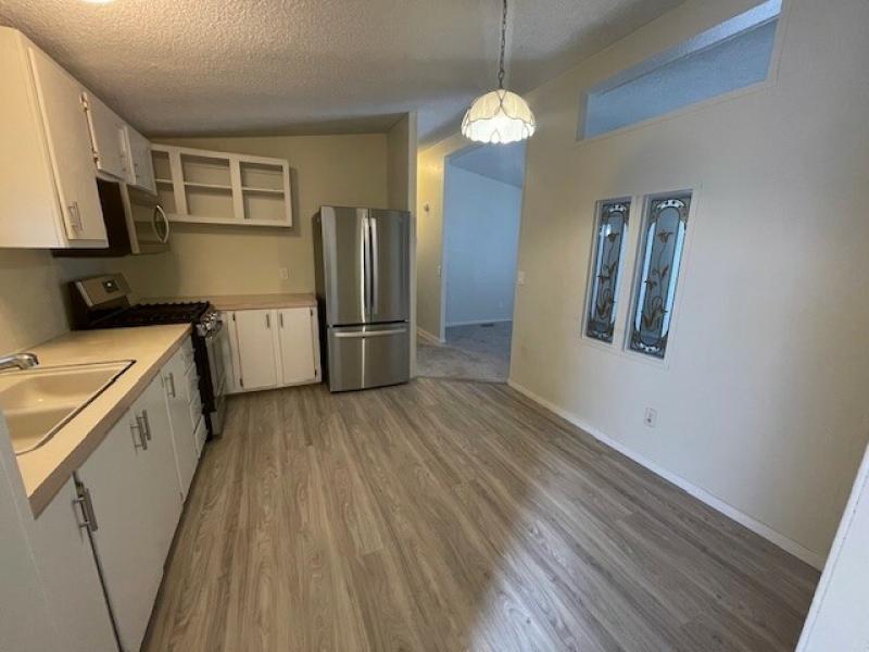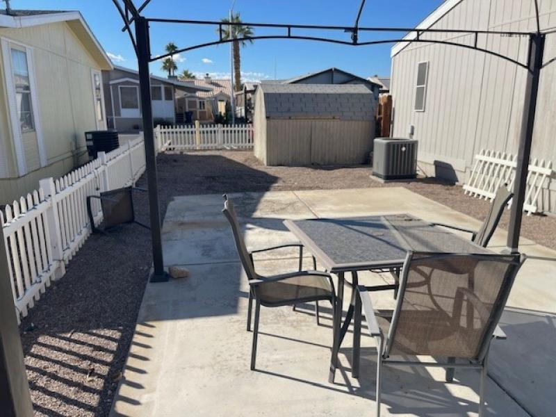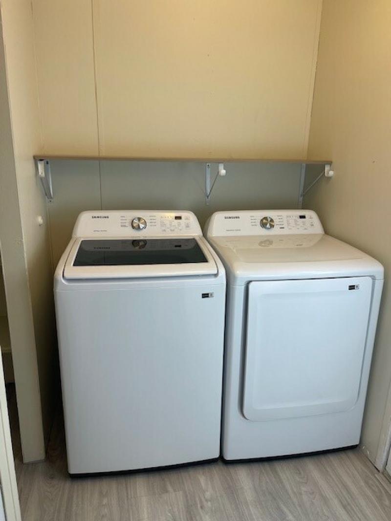 Large corner lot with off street parking, fenced in back yard, covered carport with shade awnings, covered front porch to have morning coffee on, concrete pad on back patio for those barbeques, washer and dryer included, new flooring through out, walk in shower, walk in primary shower.