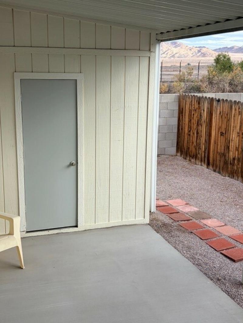 Sunrise Mountain views!! Shed on patio, laundry room with wash tub, washer-dryer included, huge light and bright gourmet kitchen with tons of storage and eat in kitchen bar, skylights in home as well!, large dining area off kitchen, custom wood floors, sunny living room off kitchen area with fireplace, doggie door, office or 3rd bedroom off living room with fireplace and built in desk or hutch, walk in shower, wheelchair ramp into home, primary bath with walk in shower and roman garden tub and dual raised sinks, big primary bedroom with two large walk in closets, enclosed yard for that new pup!