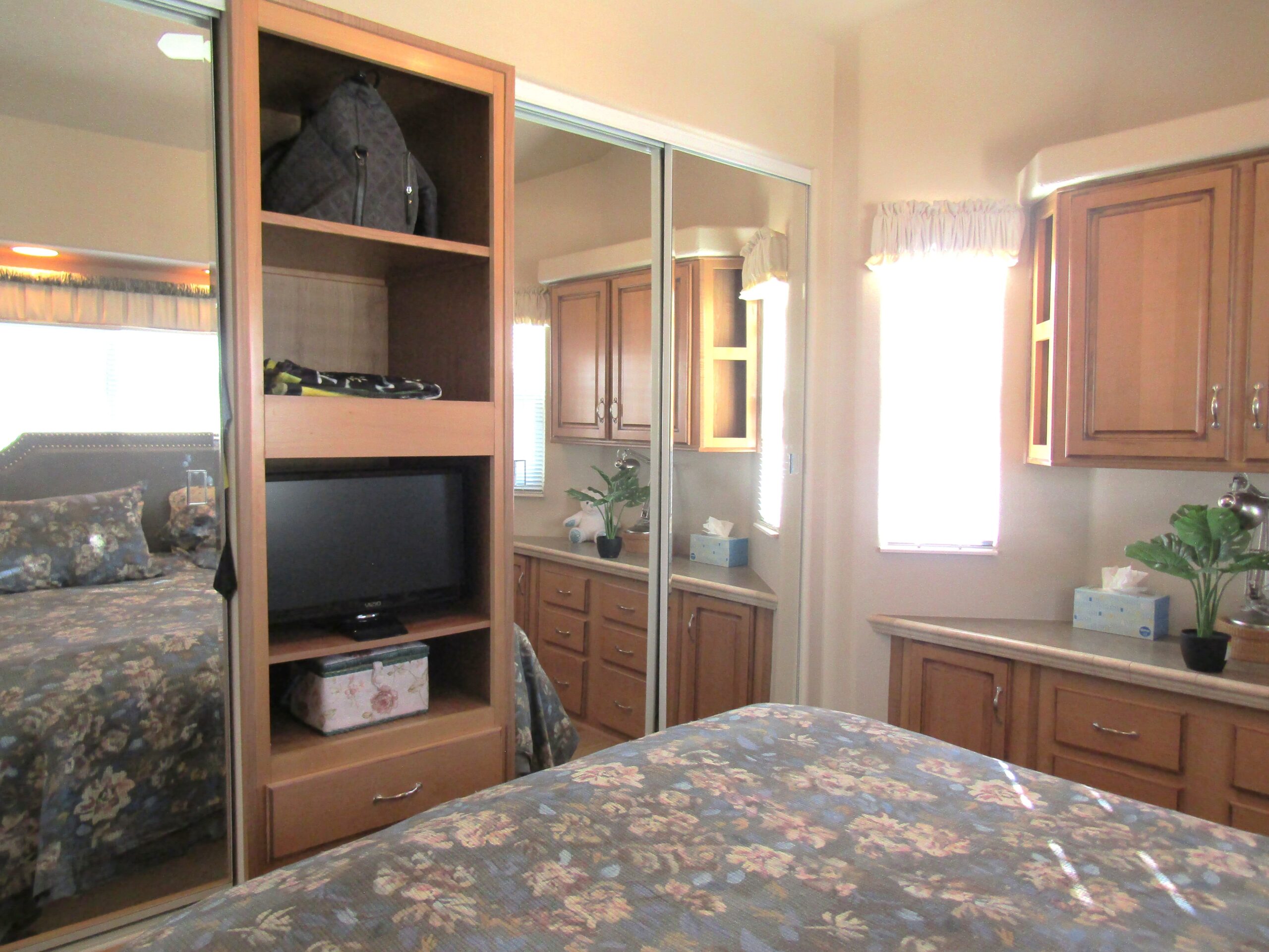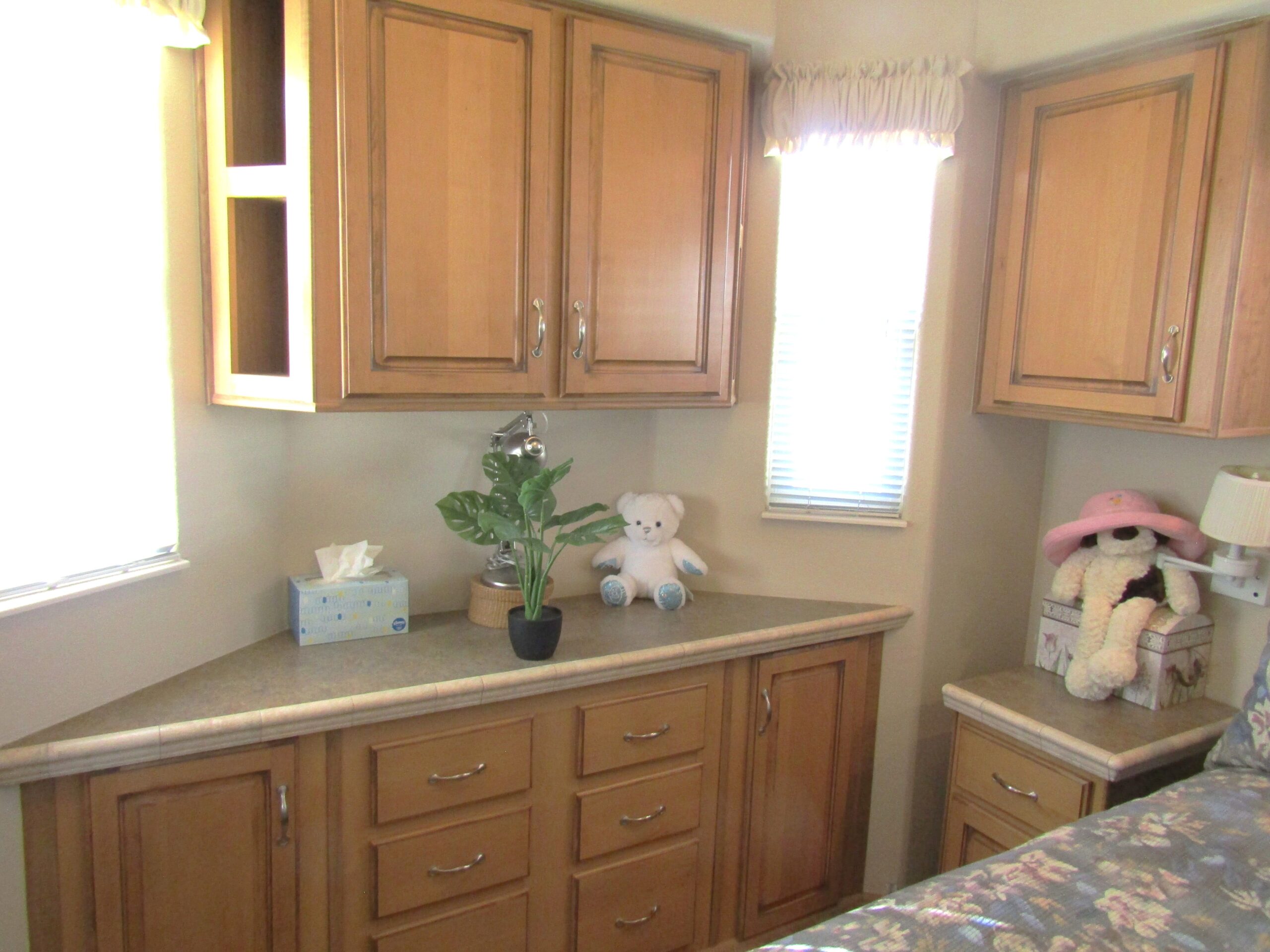 - King Bedroom w/Queen Bed, Double Mirrored Closet, Built-In Dresser, & Upper Cabinets