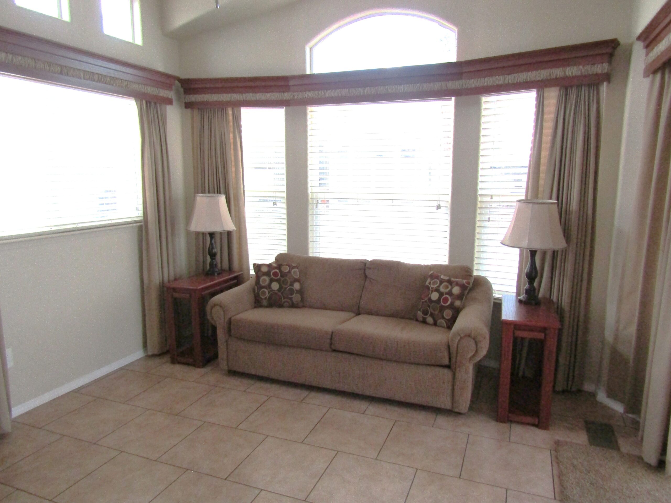 • Front Livingroom w/Laminate Tile Floor, Entertainment Area, & Upper Windows