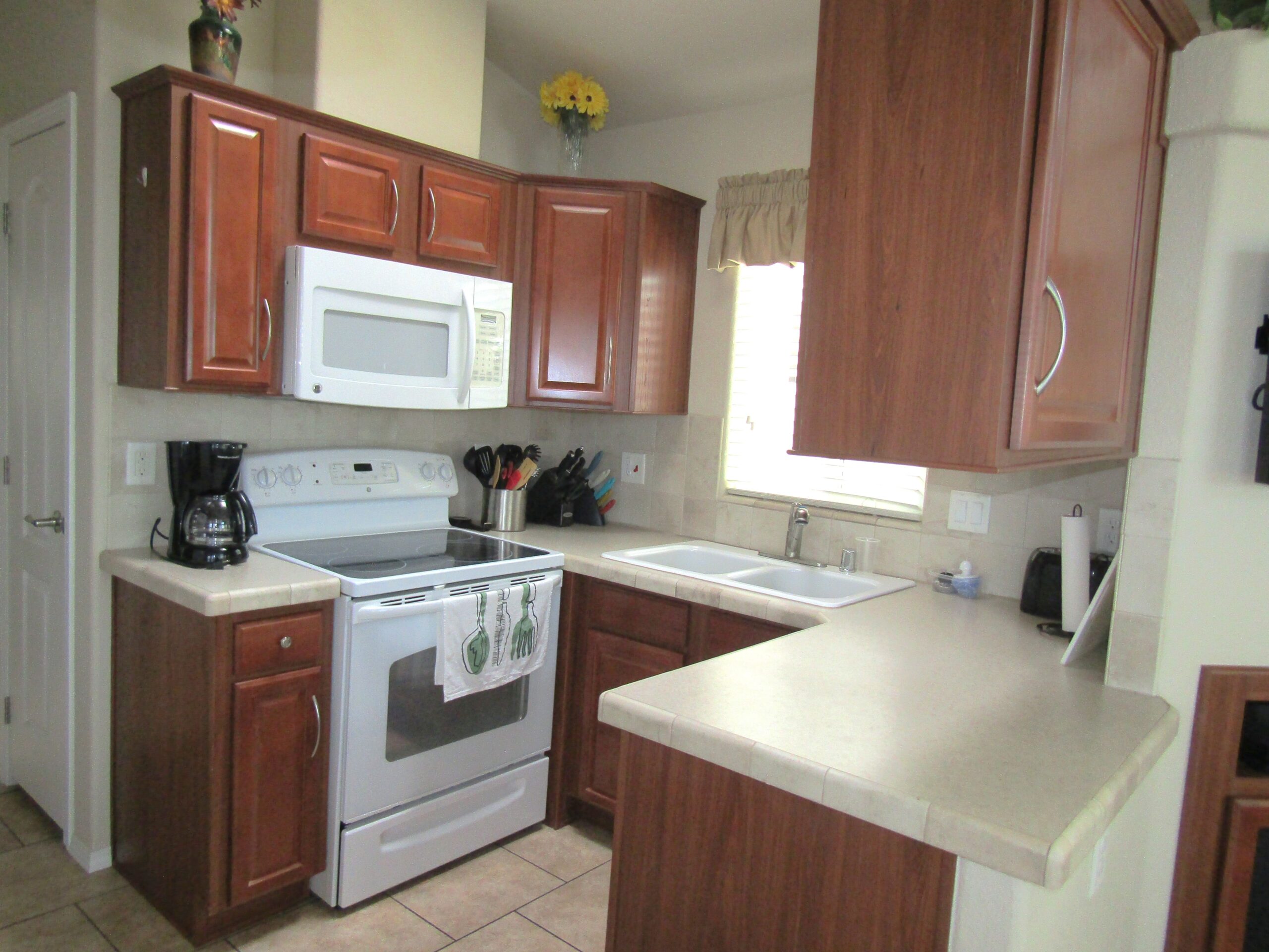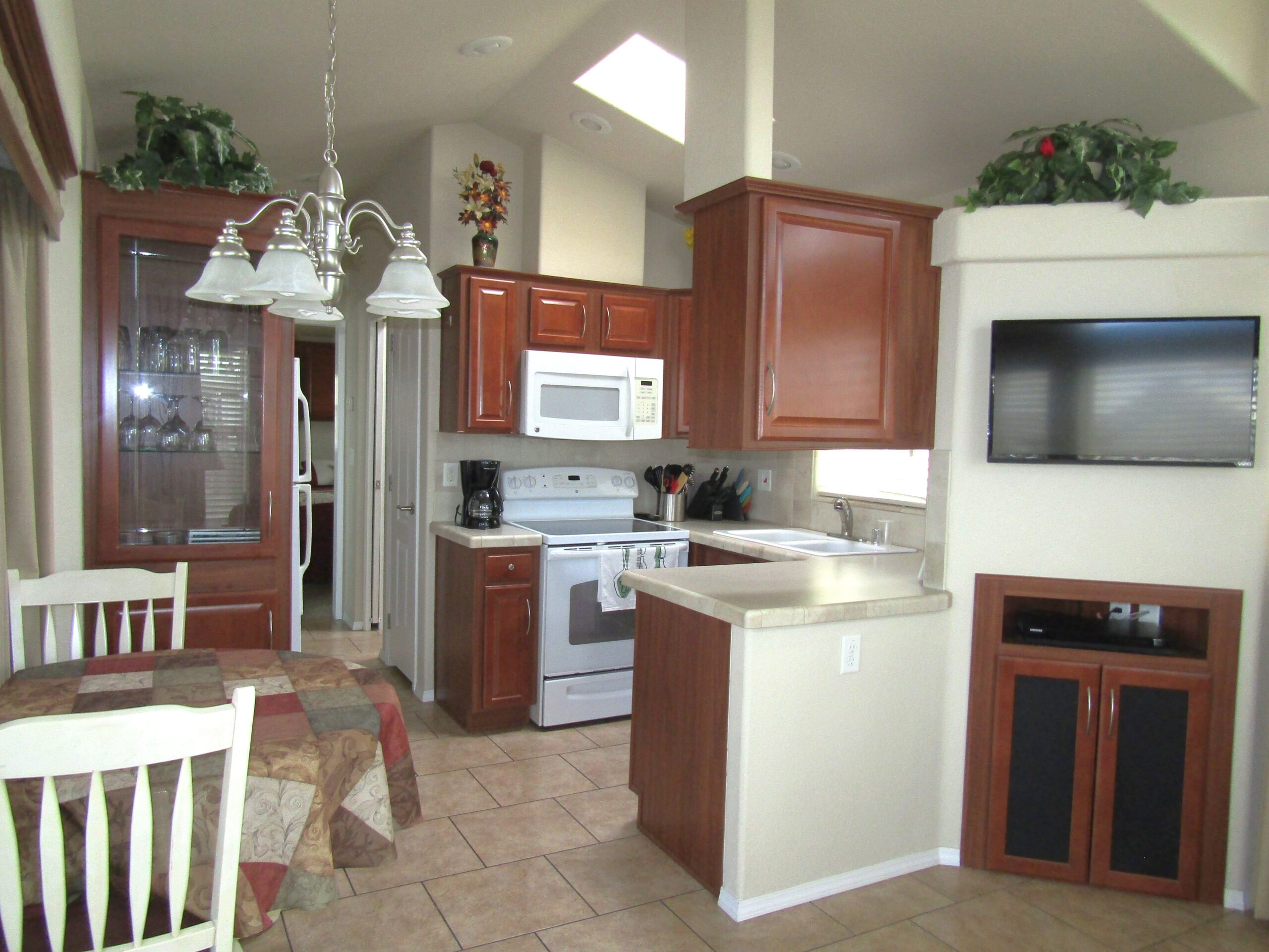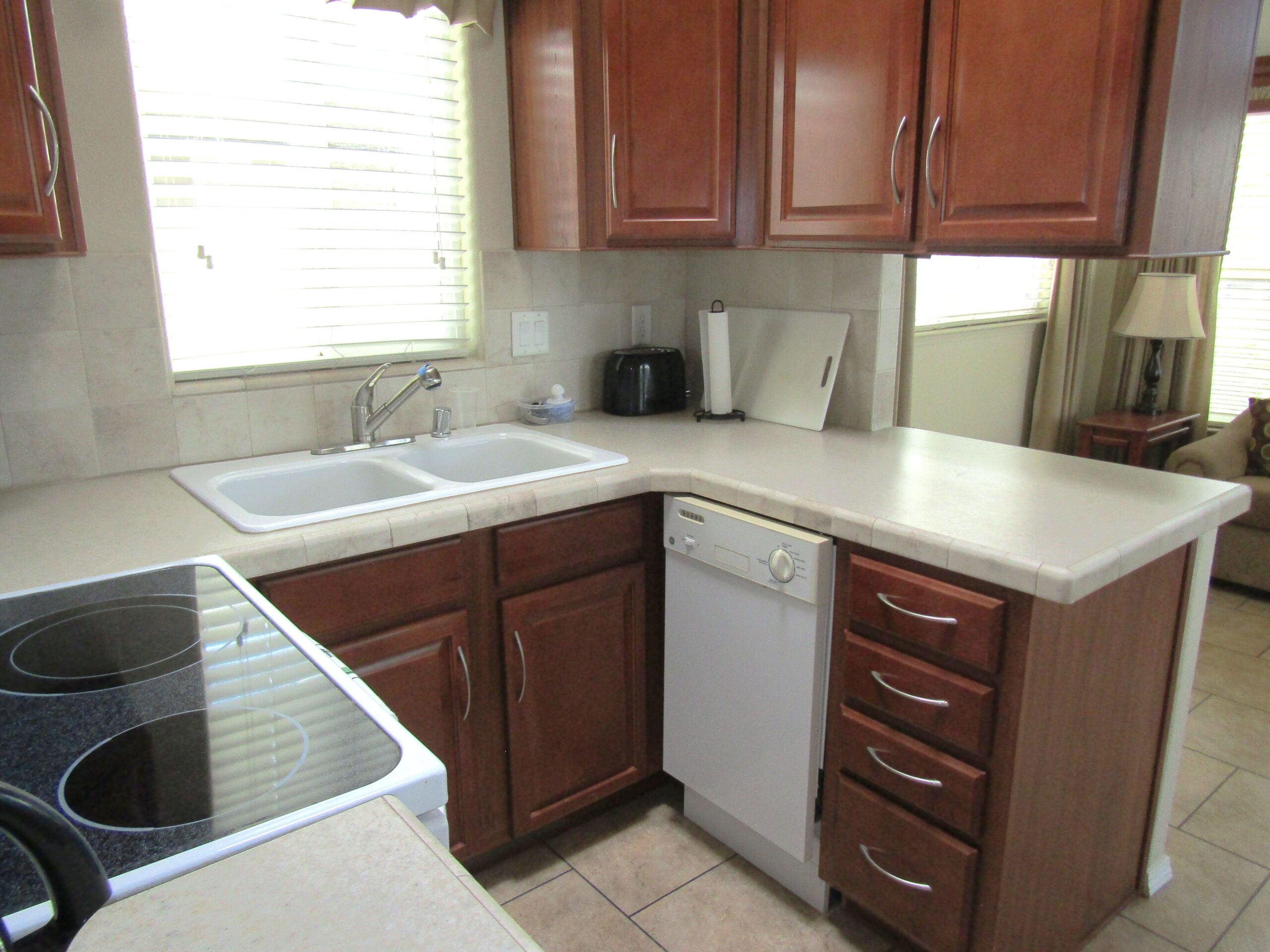 • U-Shape Kitchen w/Dishwasher, Matching White Appliances, Extra Side Cupboards, Disposal, Skylight, & Tile Laminate Floor