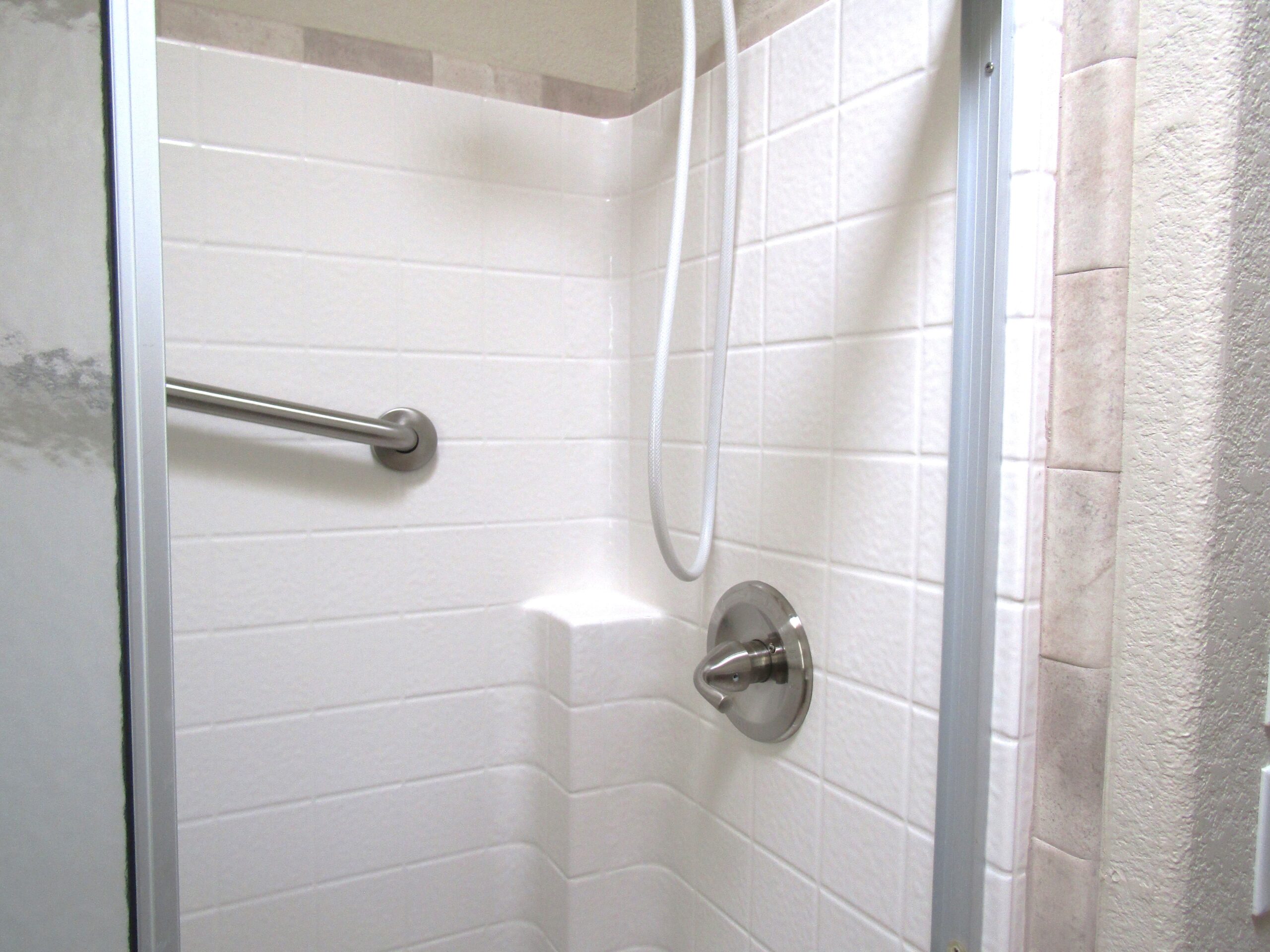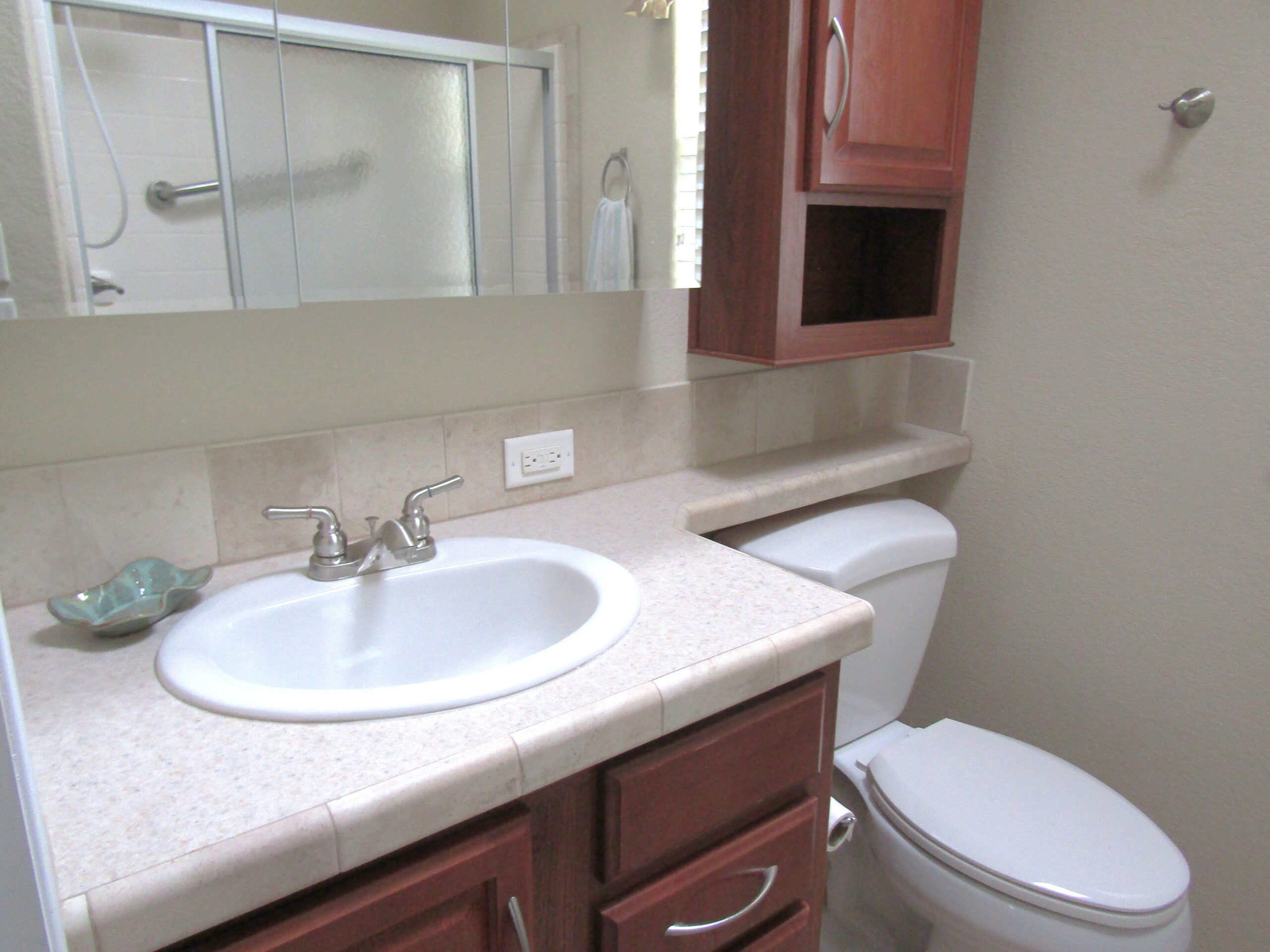 • Bathroom w/Large Vanity, Step-In Shower , Skylight, & Tile Laminate Floor
