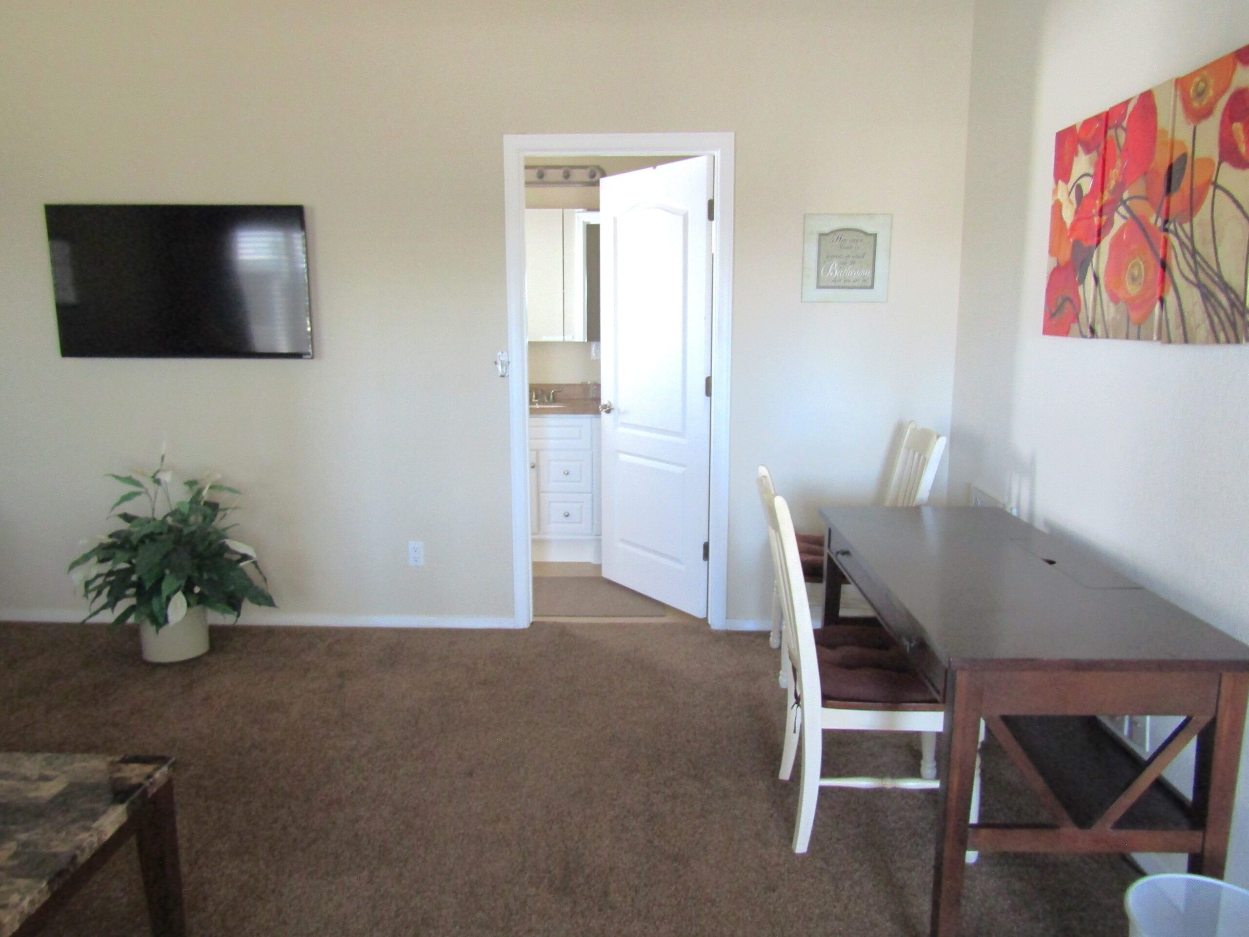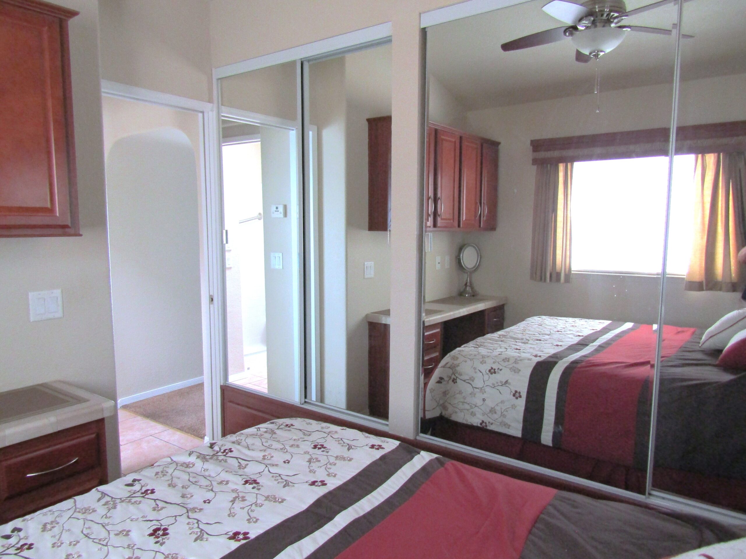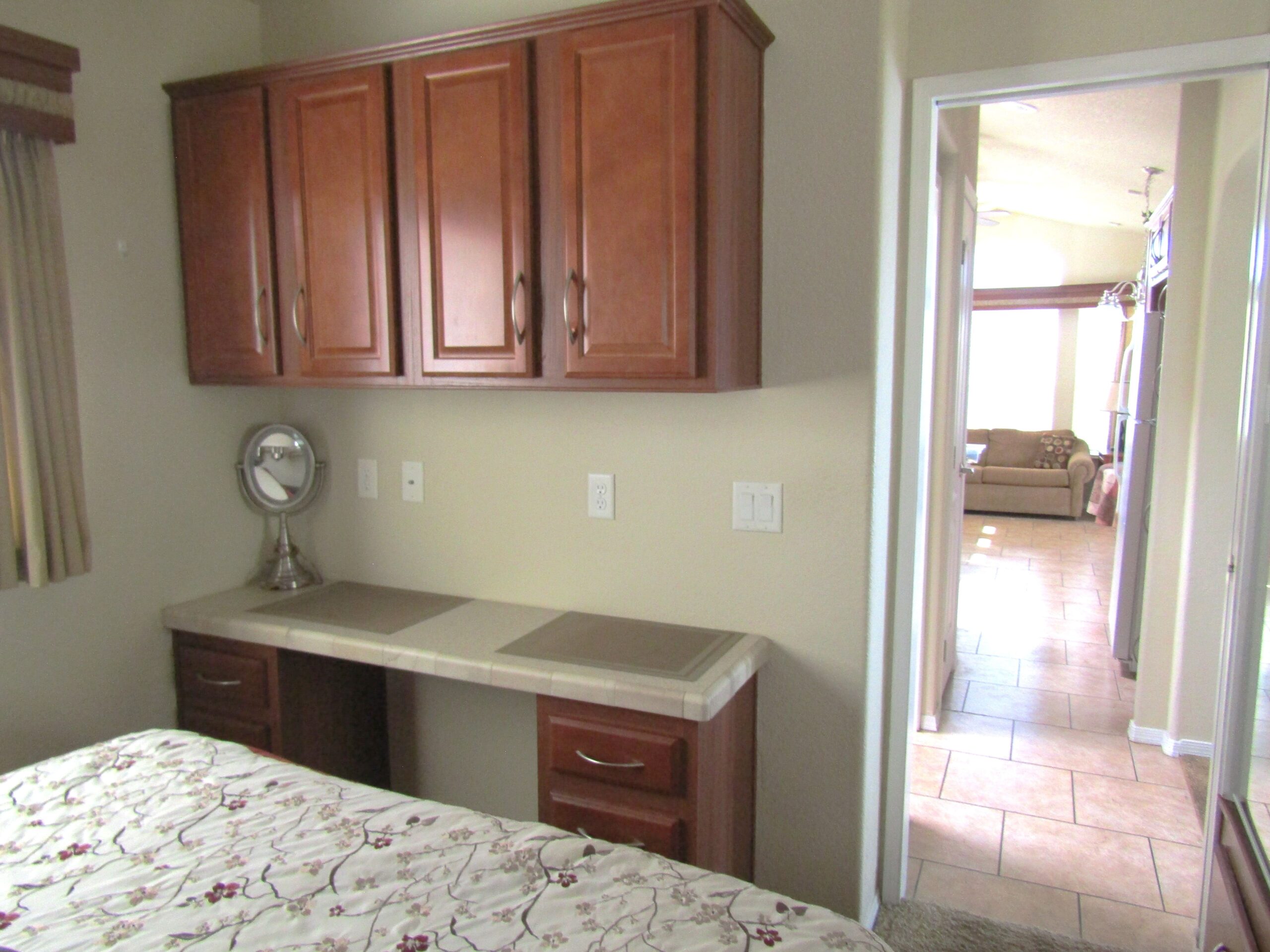 • Carpeted Queen Bedroom w/Full Mirrored Closet, Built-In Dresser/Cabinets/Counter