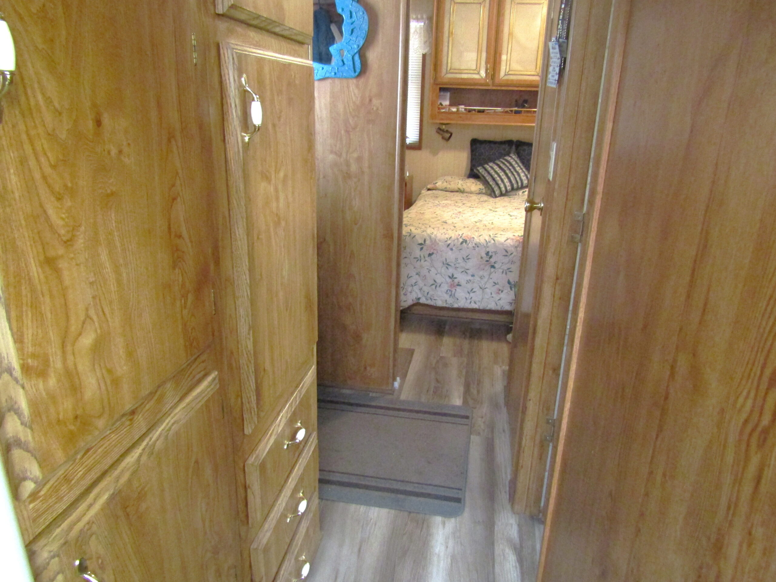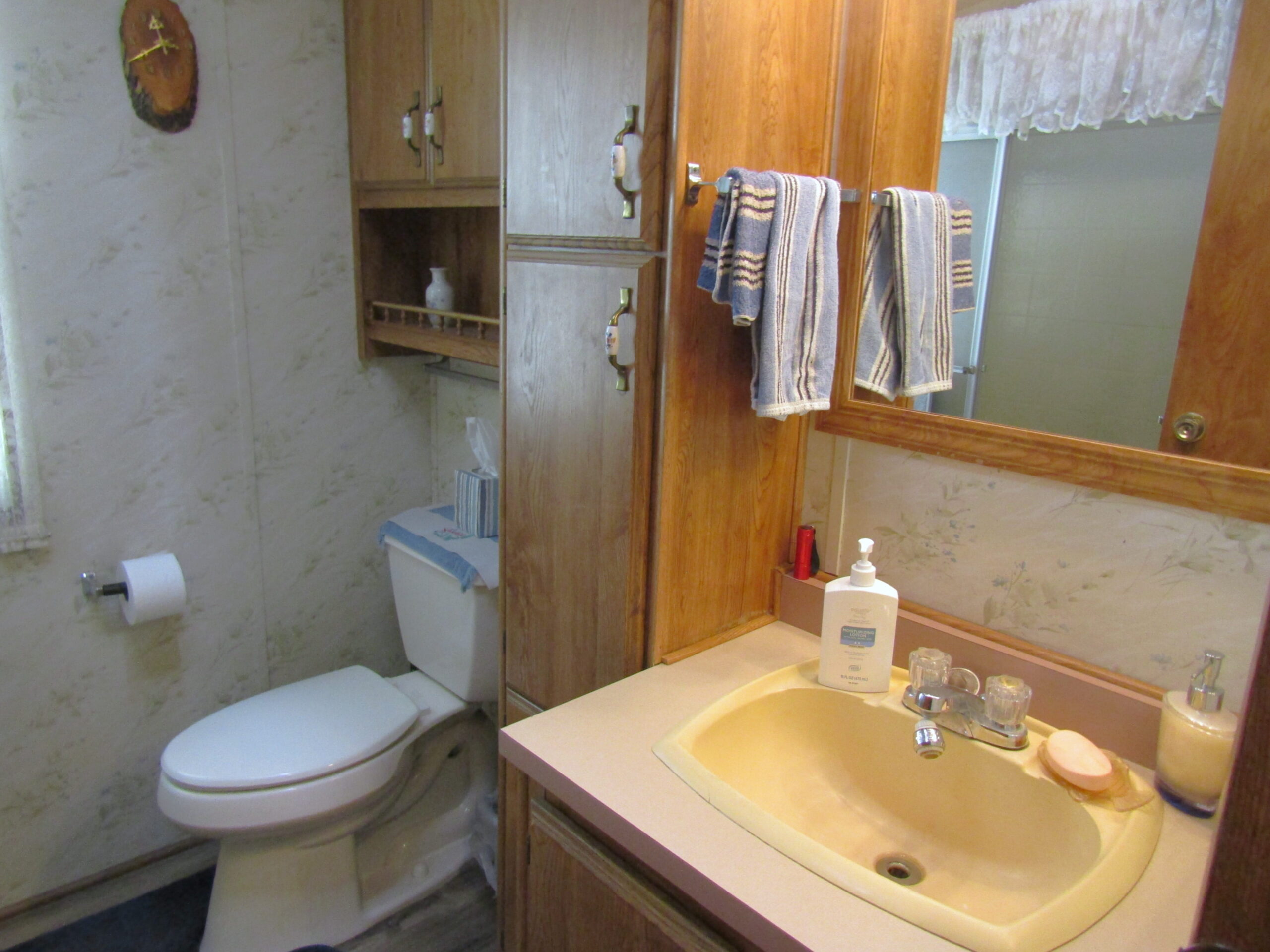 - Bathroom has Shower/Tub Combo (New Shower Valve), Vanity, Extra Cabinets, & Skylight w/Shade