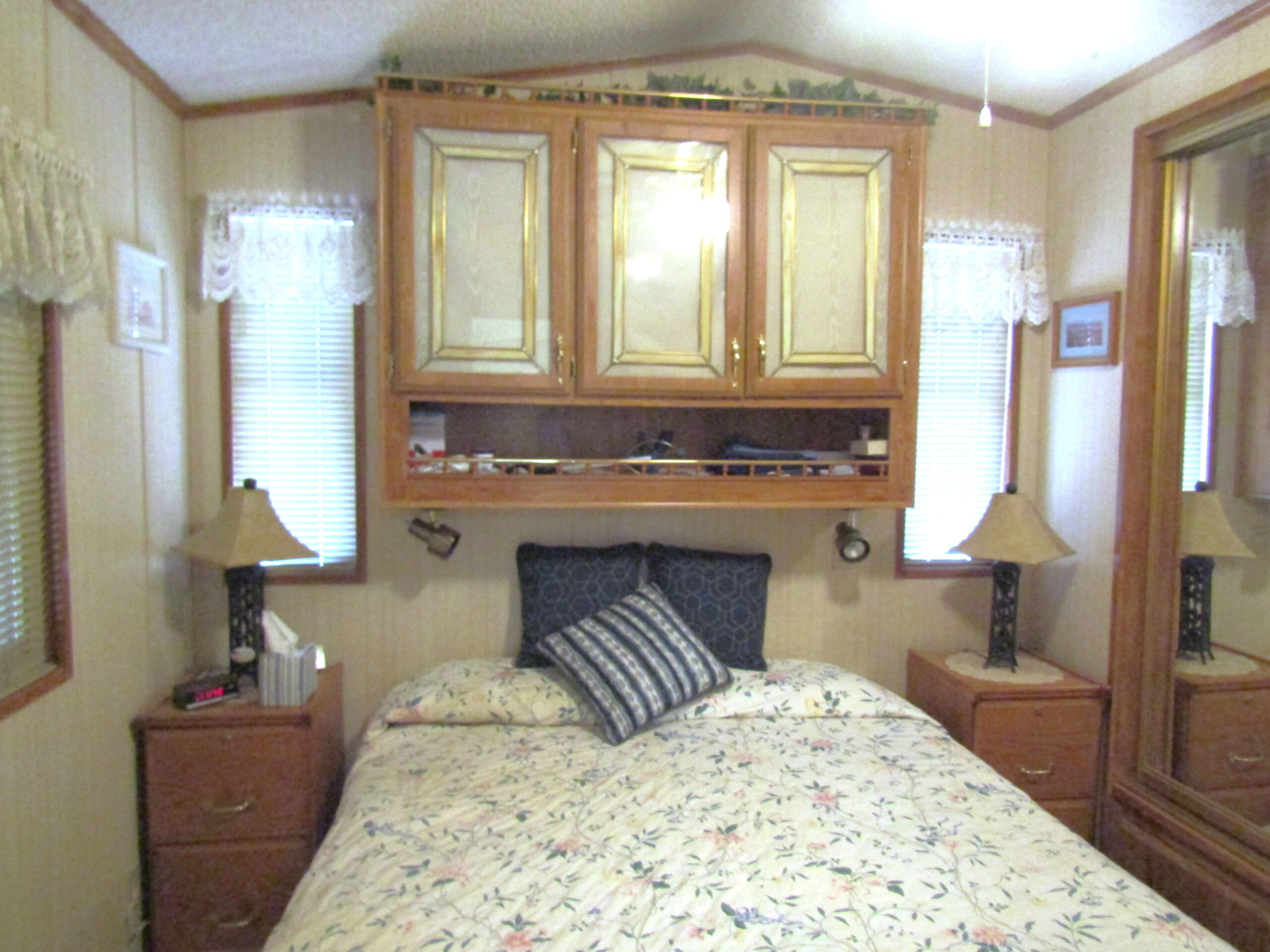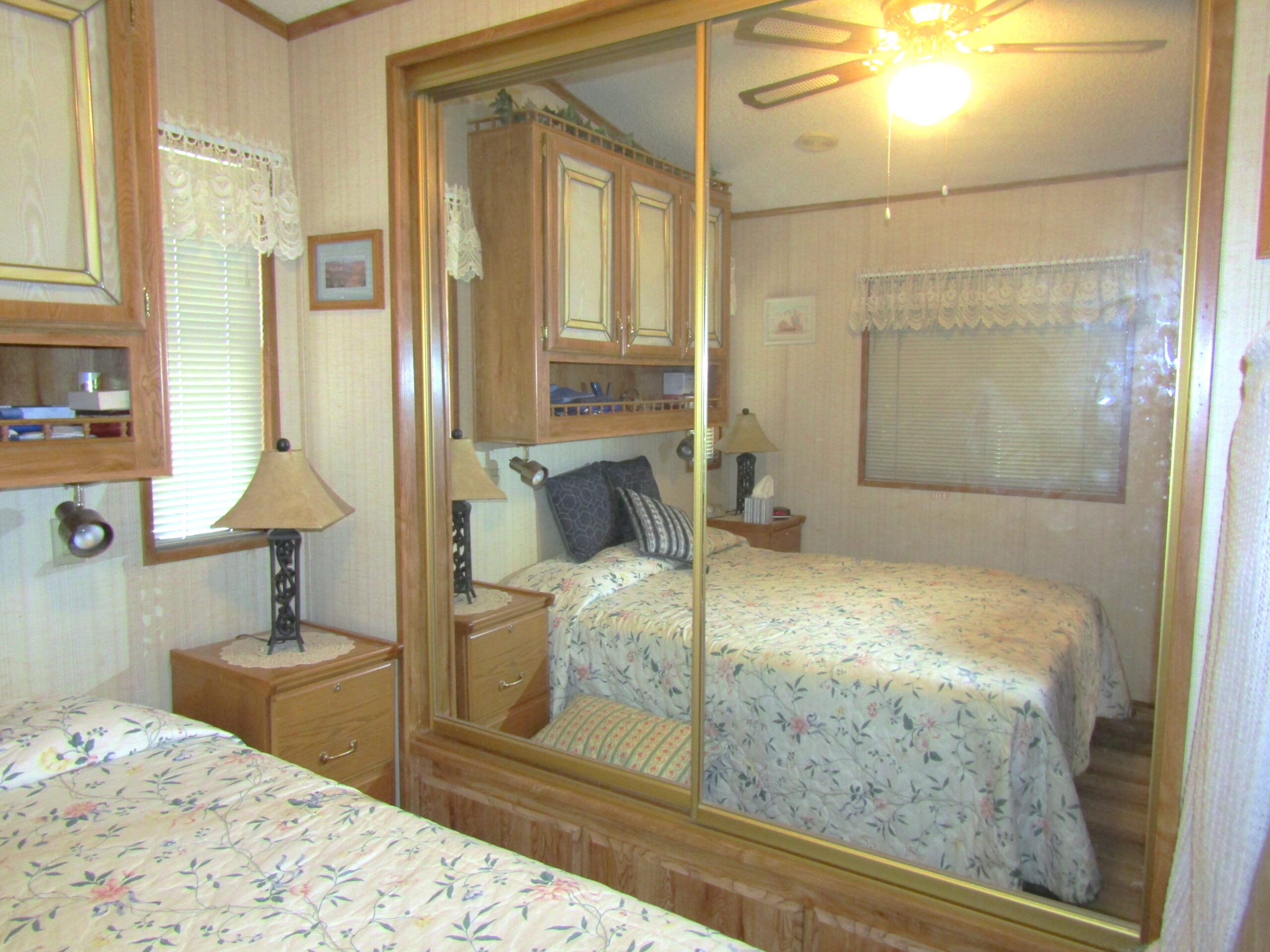 - Queen Bedroom Lift-N-Store Bed w/Mirrored Closet, & Upper Cabinets