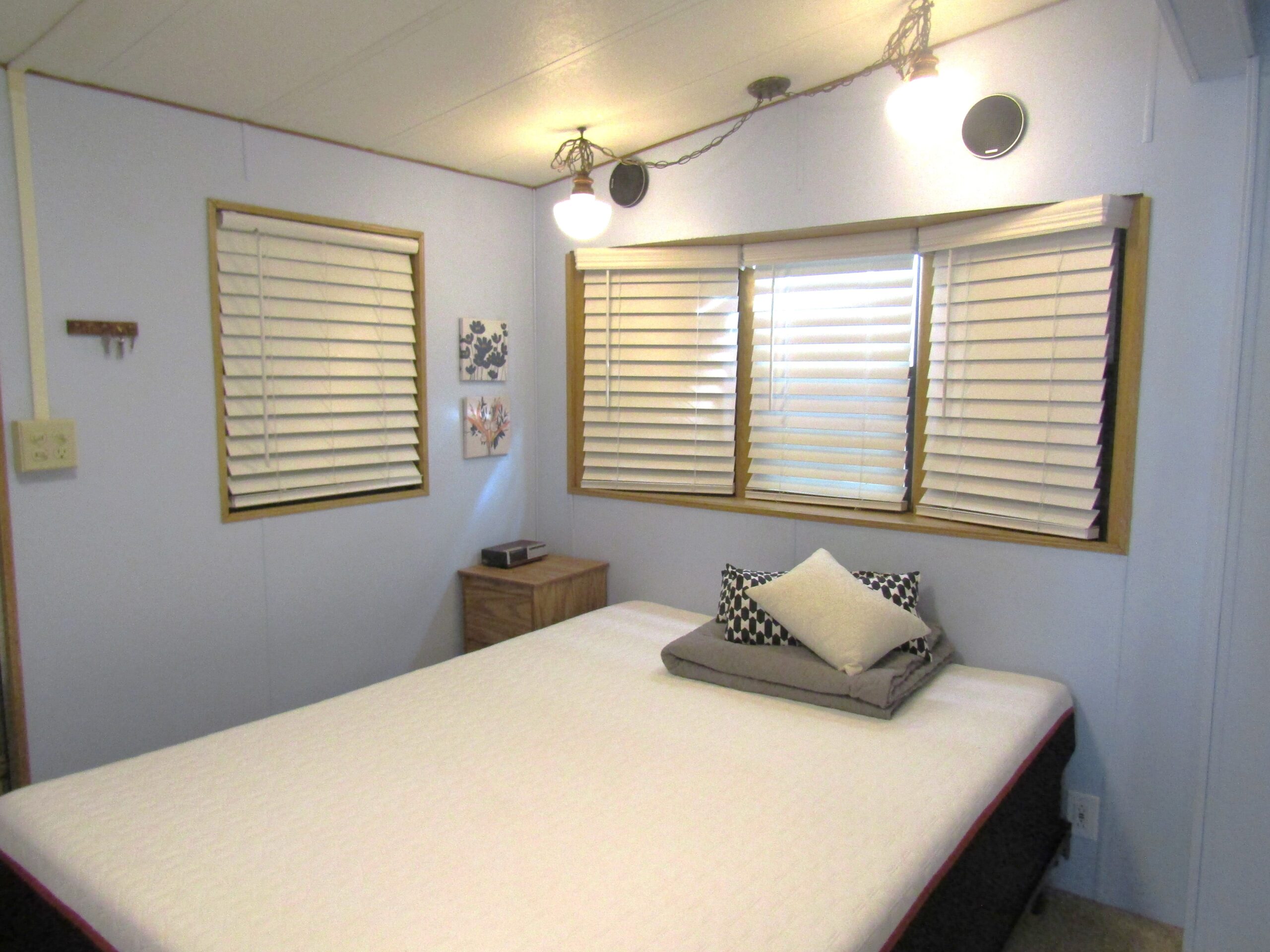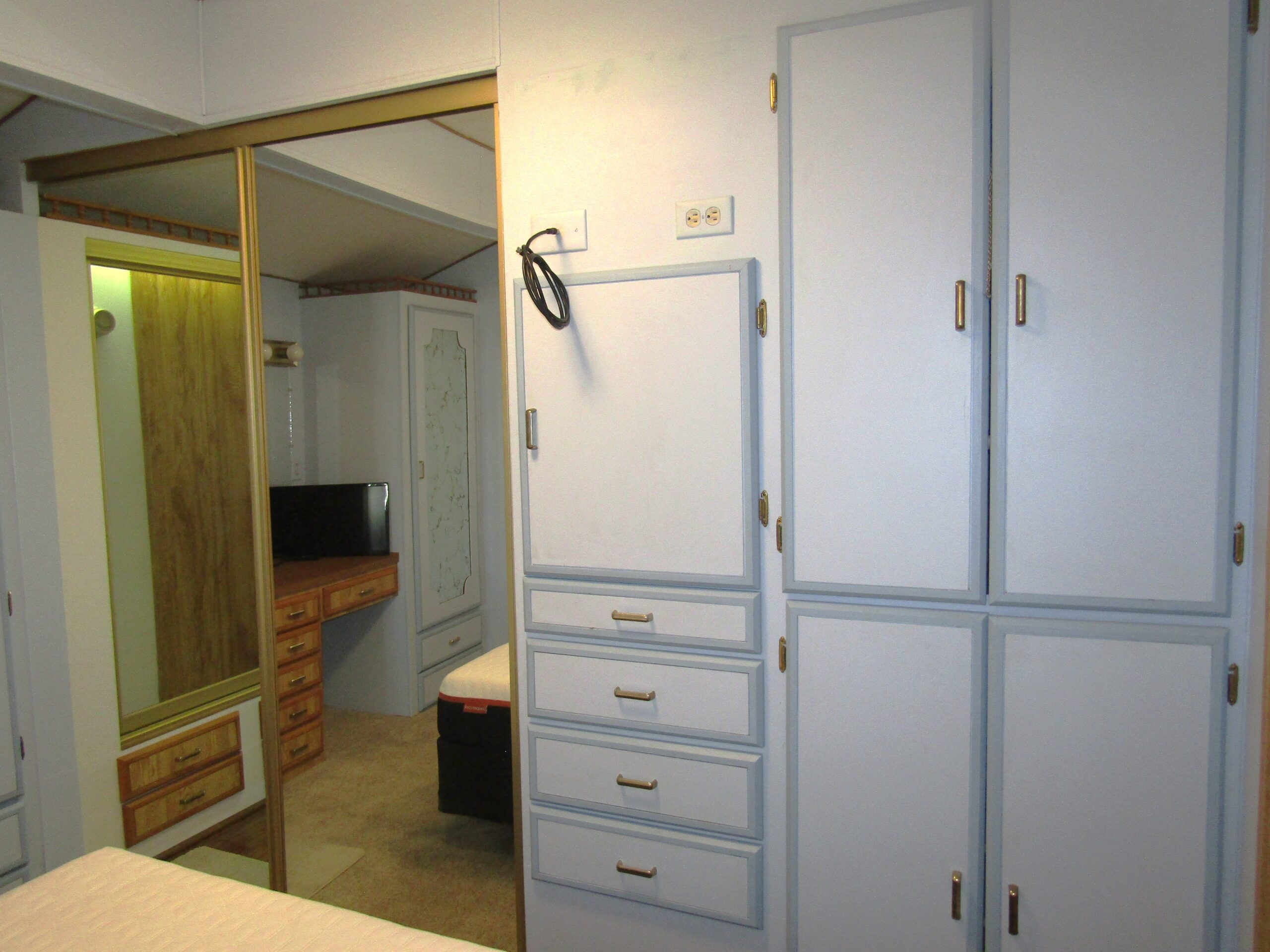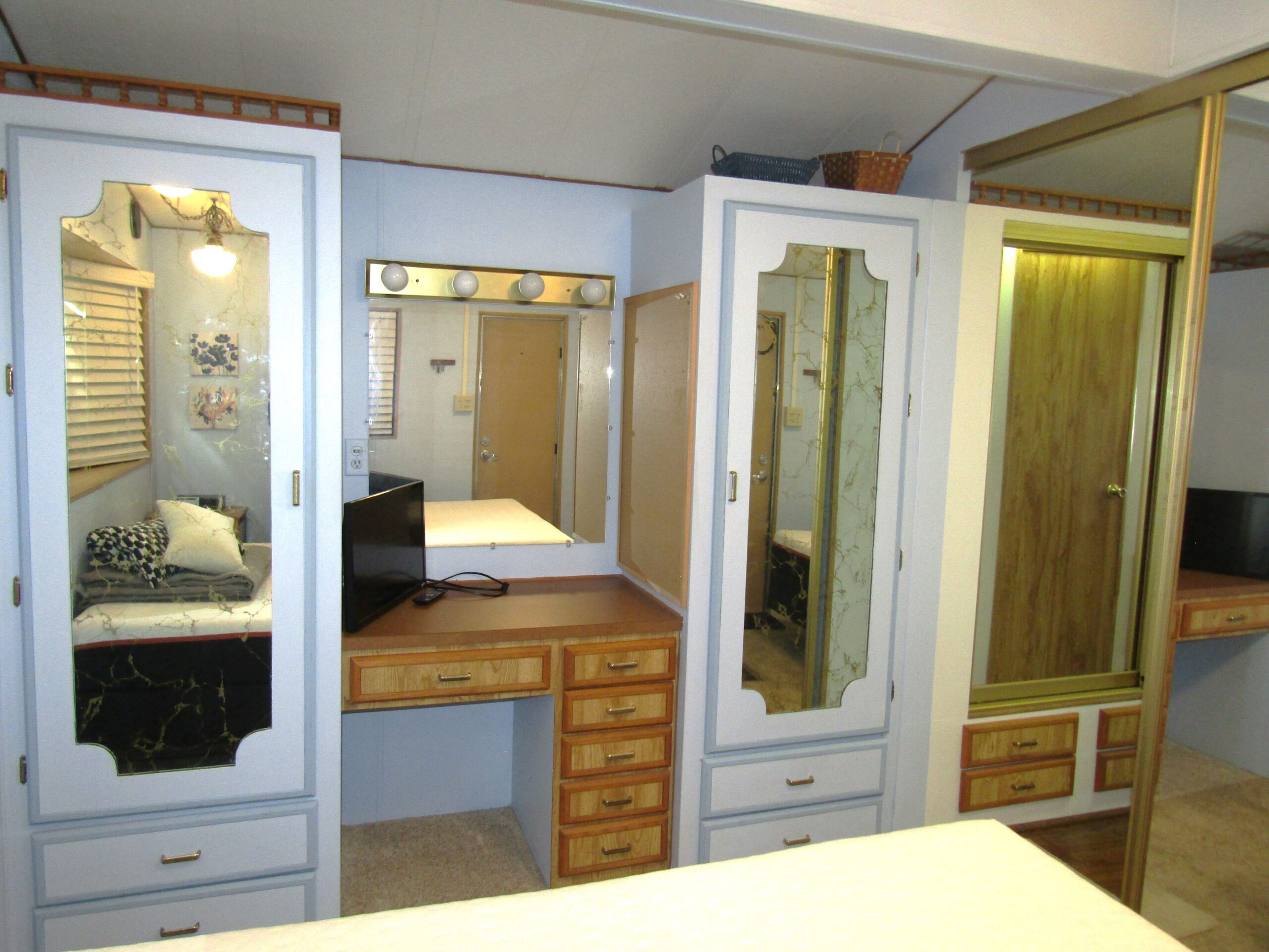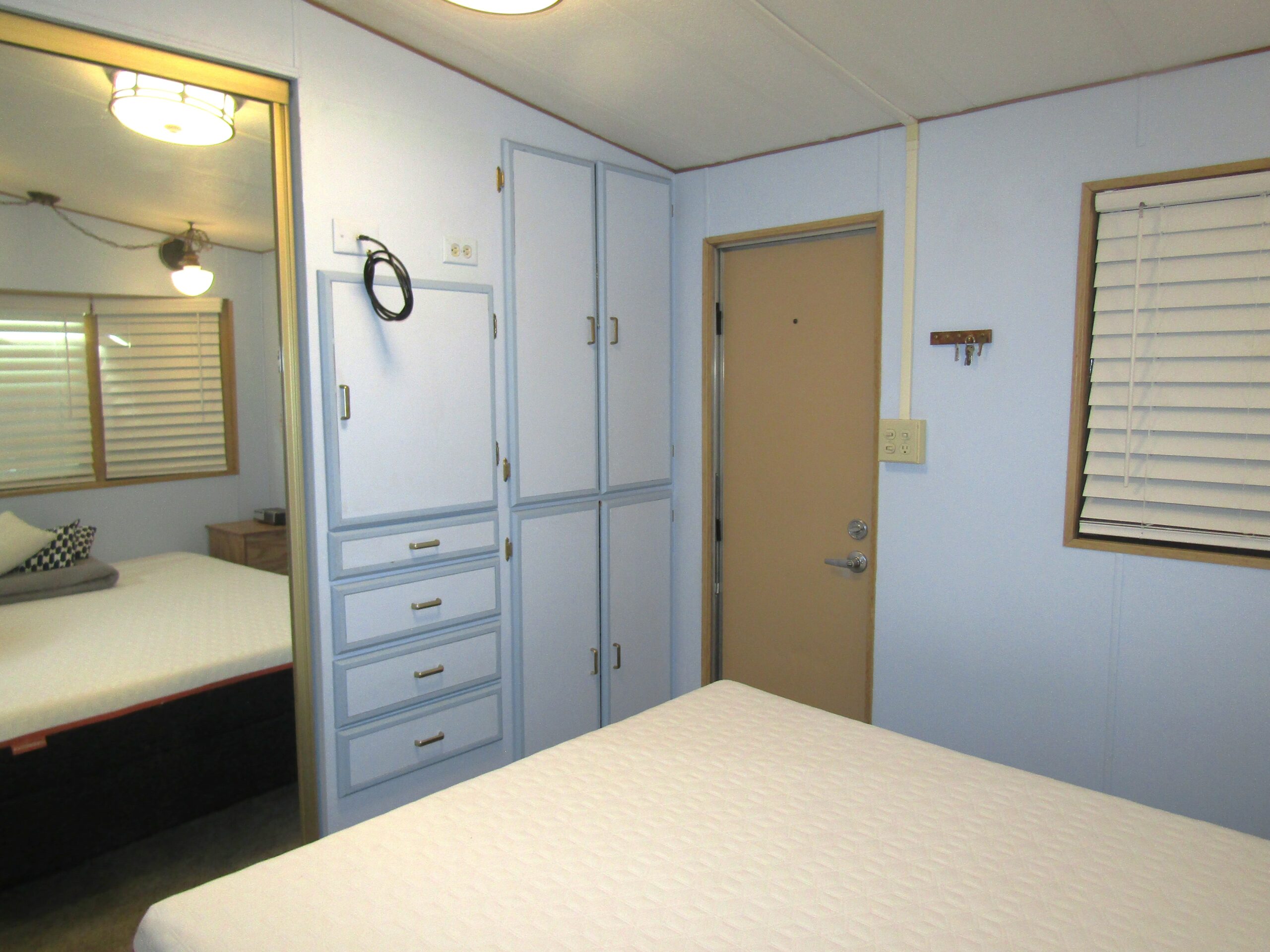 • Carpeted Queen Bedroom w/New Bed, Double Closets, Built-In Dresser/Cabinets/Drawers/Desk Area, Updated Blinds, & Painted Walls & Cabinets