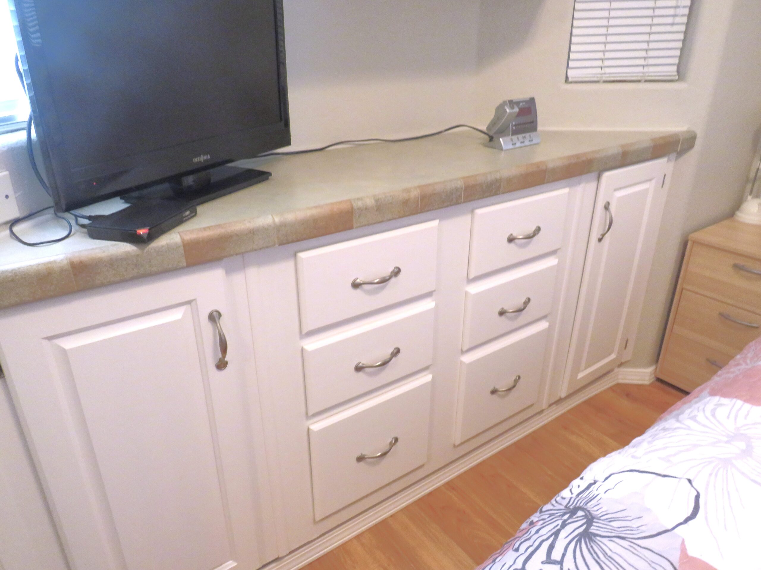 • Queen Lift Bed w/Mirror Closet & Built in Drawers & Upper Cabinets