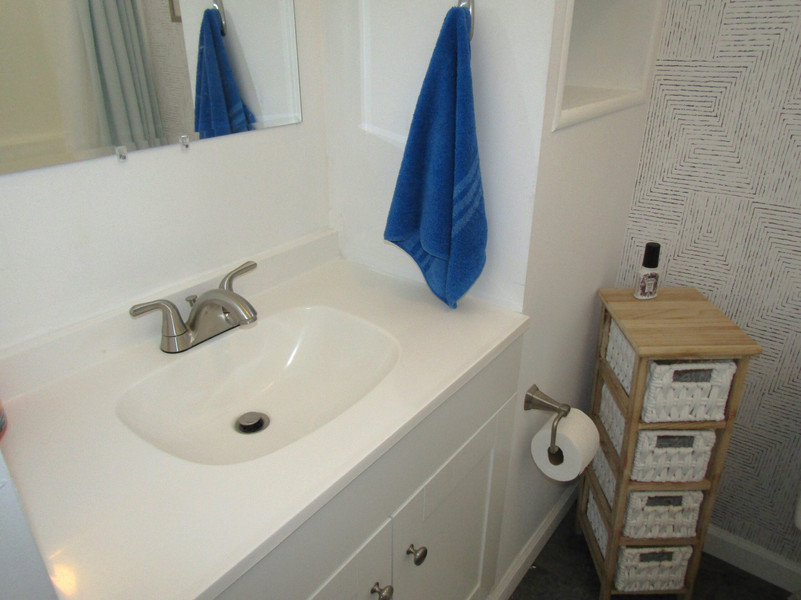 - Bathroom has Shower/Tub Combo & Vanity w/Shelving