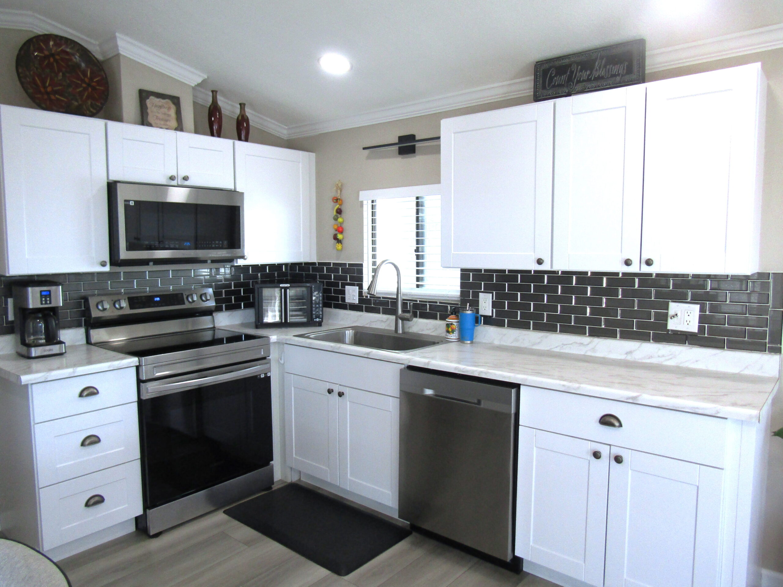 • NEW L-Kitchen w/New Cupboards, New Laminate Countertops, New Tile Backsplash, New SS Dishwasher/Upgraded SS Fridge/Microwave/Stove, New SS Farm Sink/Faucet, & New Interior Paint (2023)