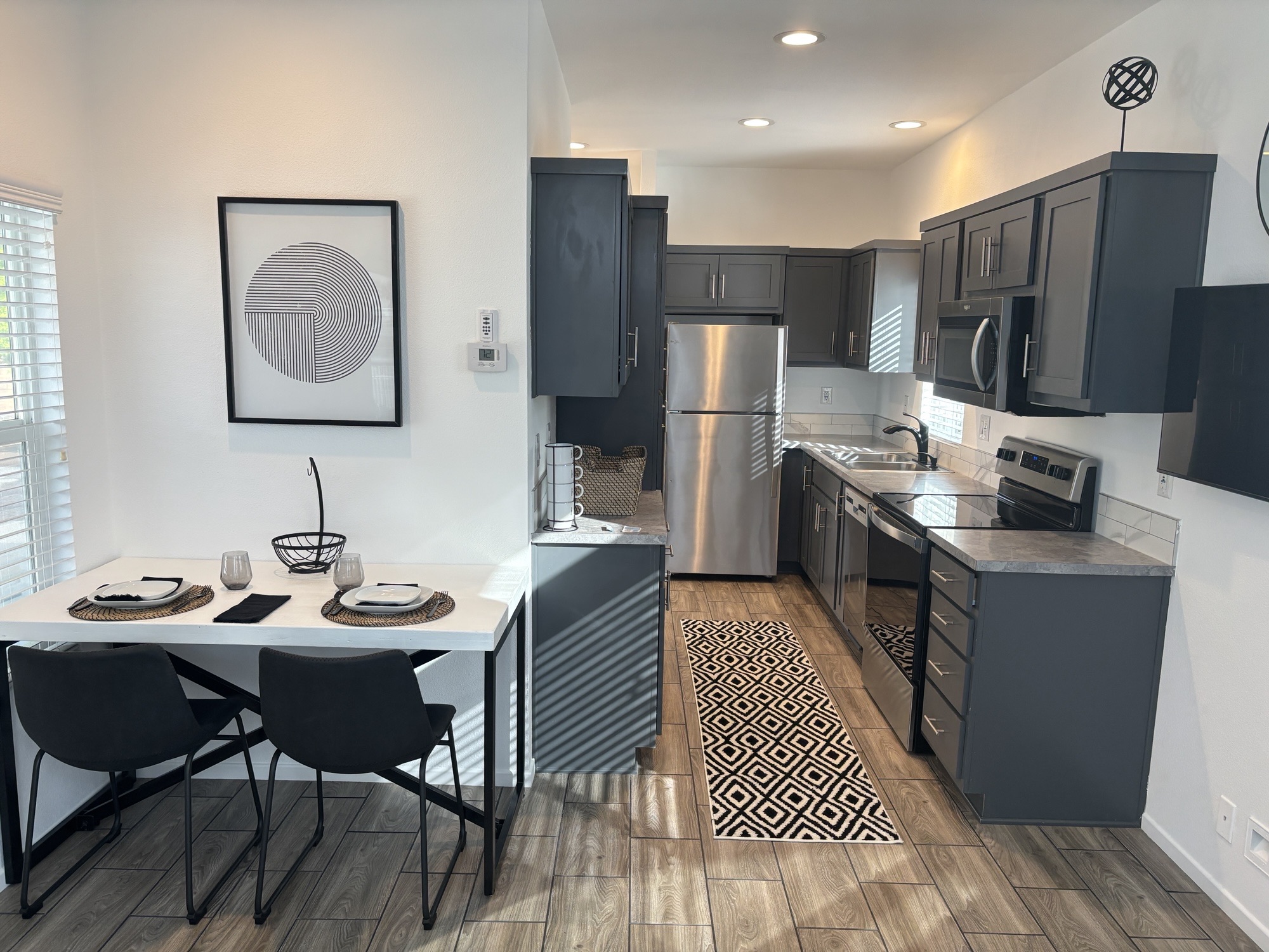 - Wood laminate flooring throughout