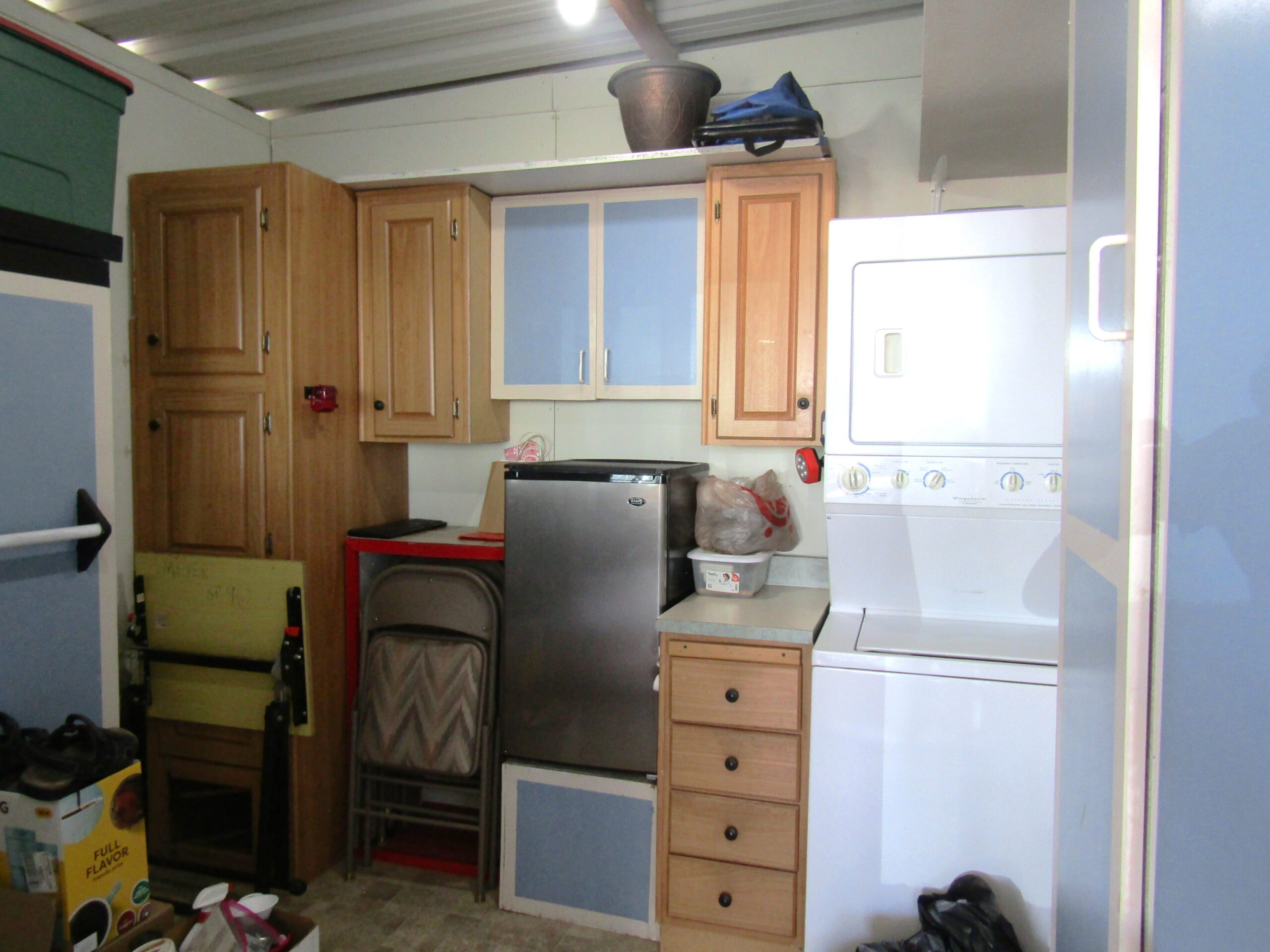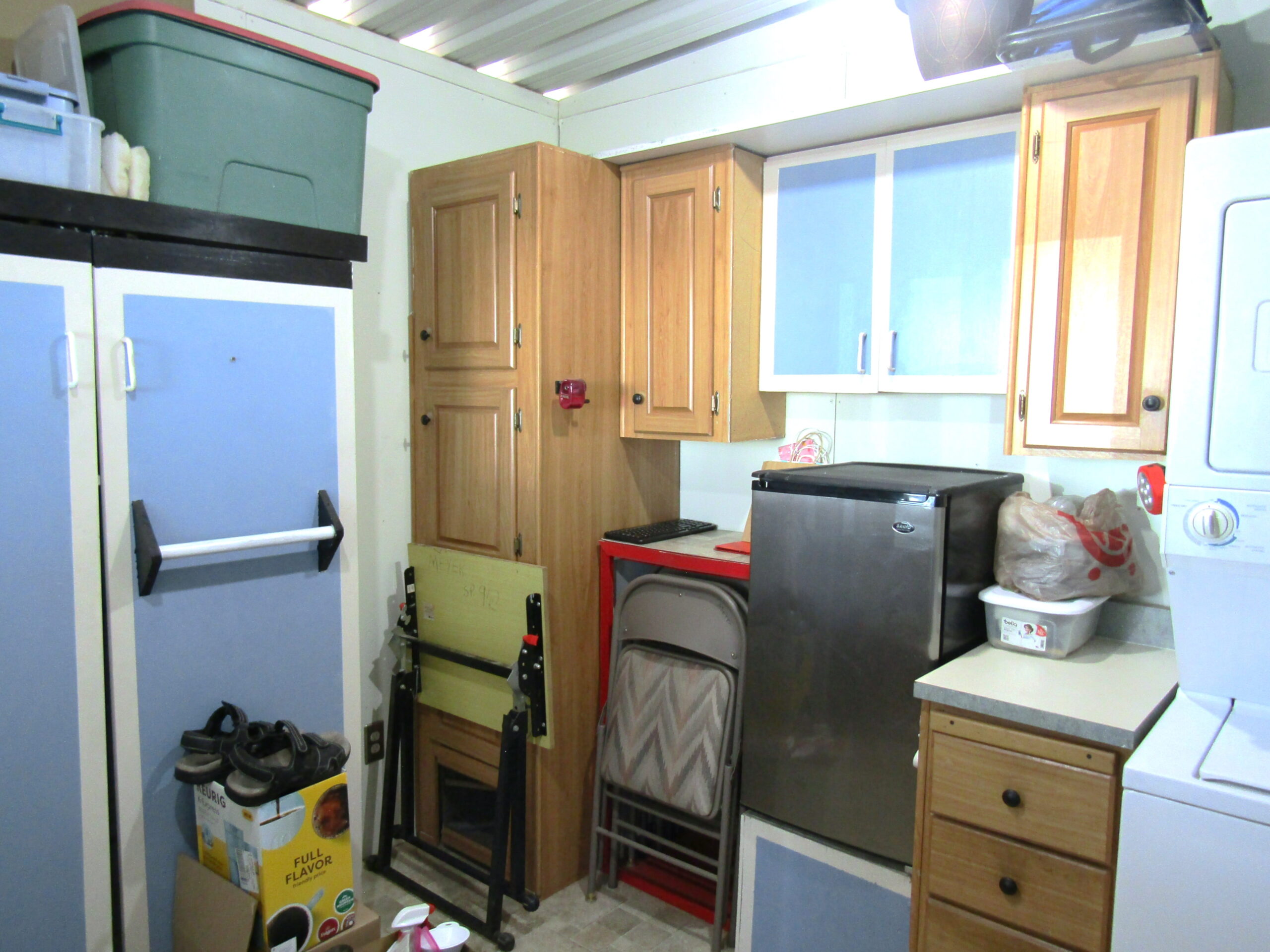 - Unfinished Shed w/Sheetrock, Stackable Laundry, Cupboards & Drawers