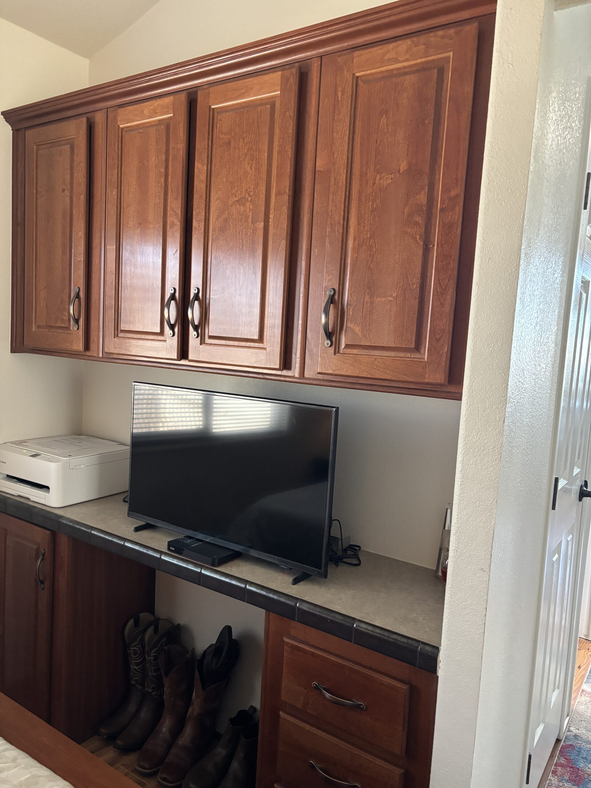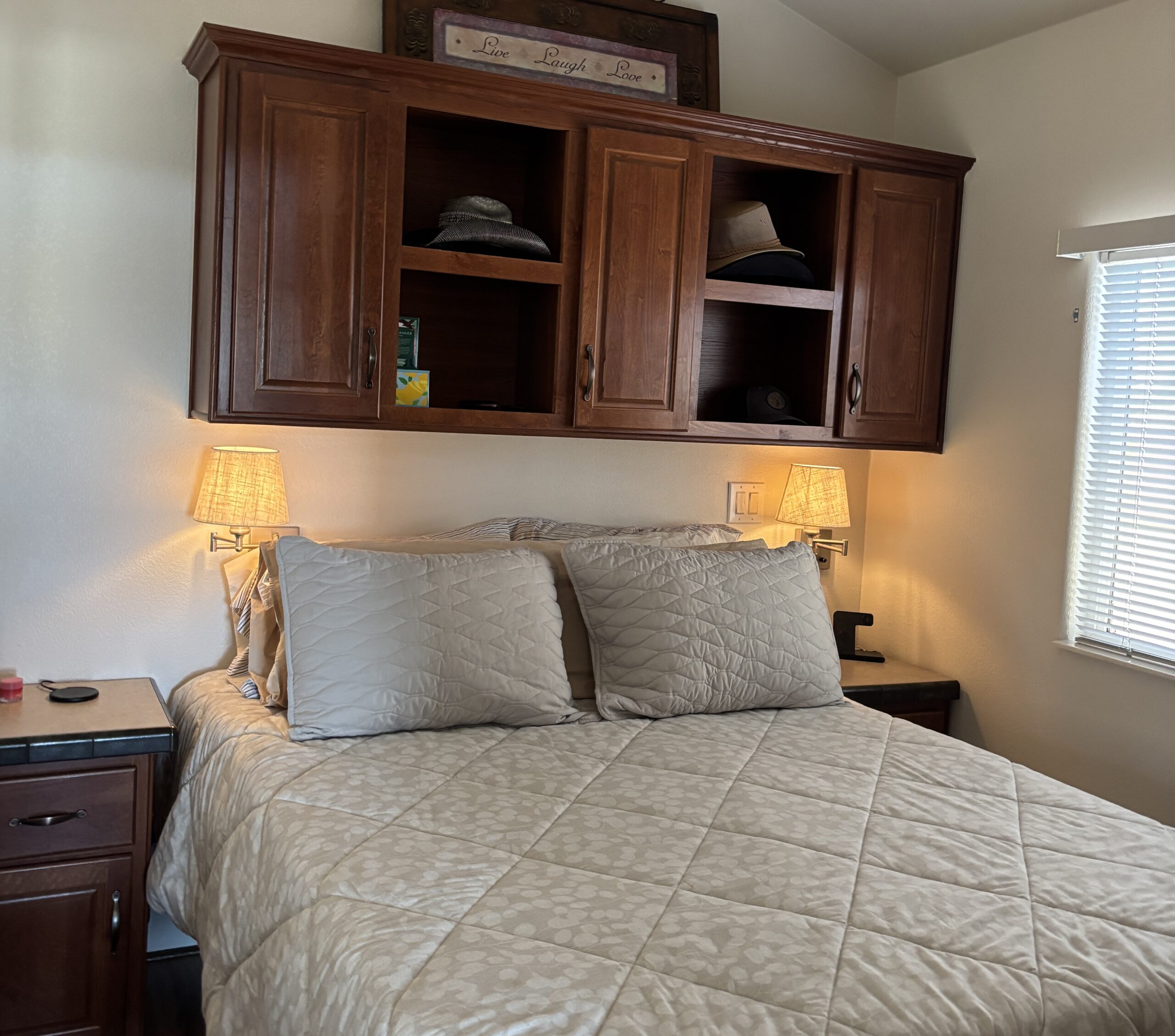 • Queen Bedroom w/Mirrored Closet Doors, Lift-n-Store Bed, Built-In Vanity, Built-In Desk, Built-In Side Tables