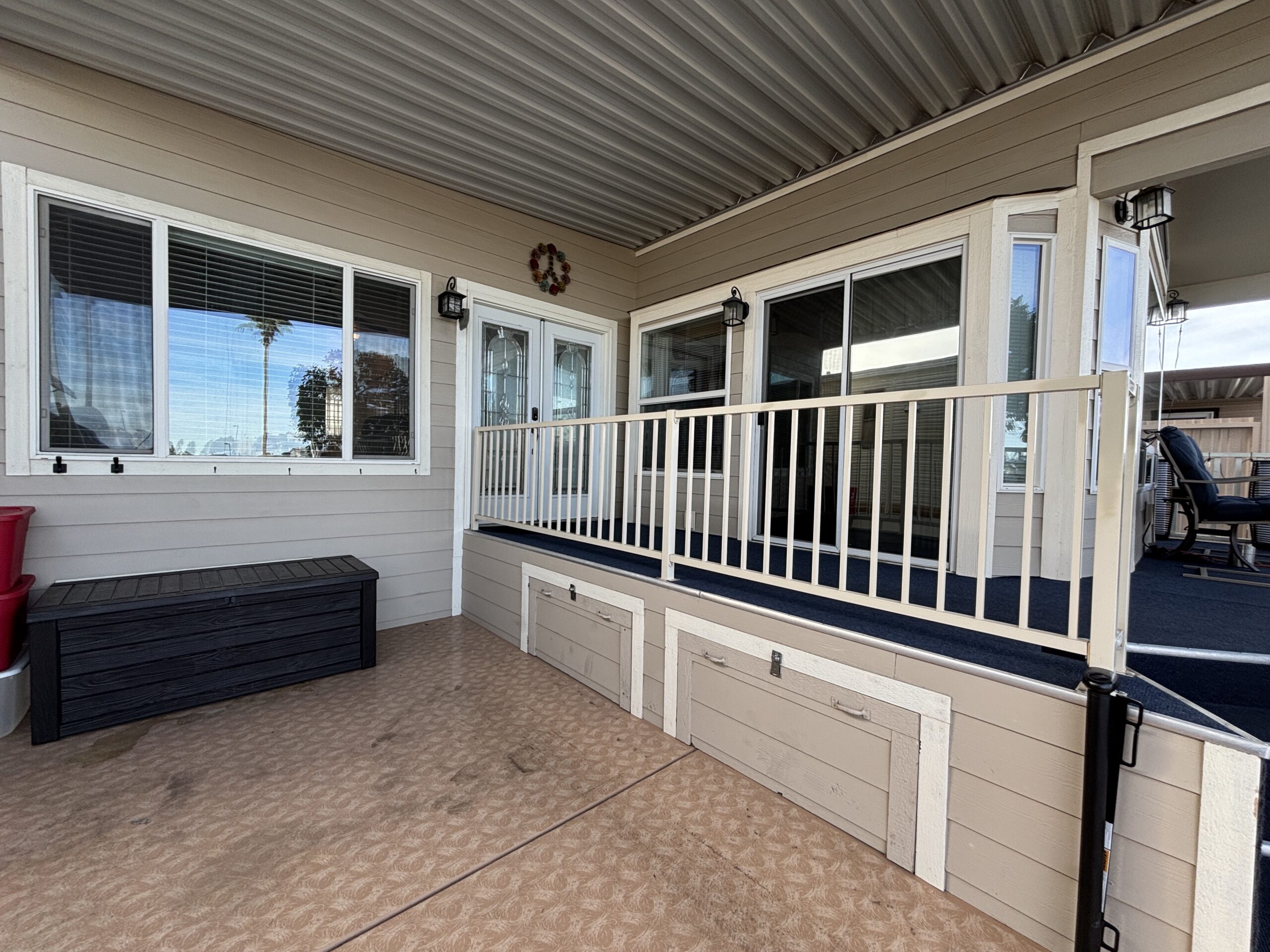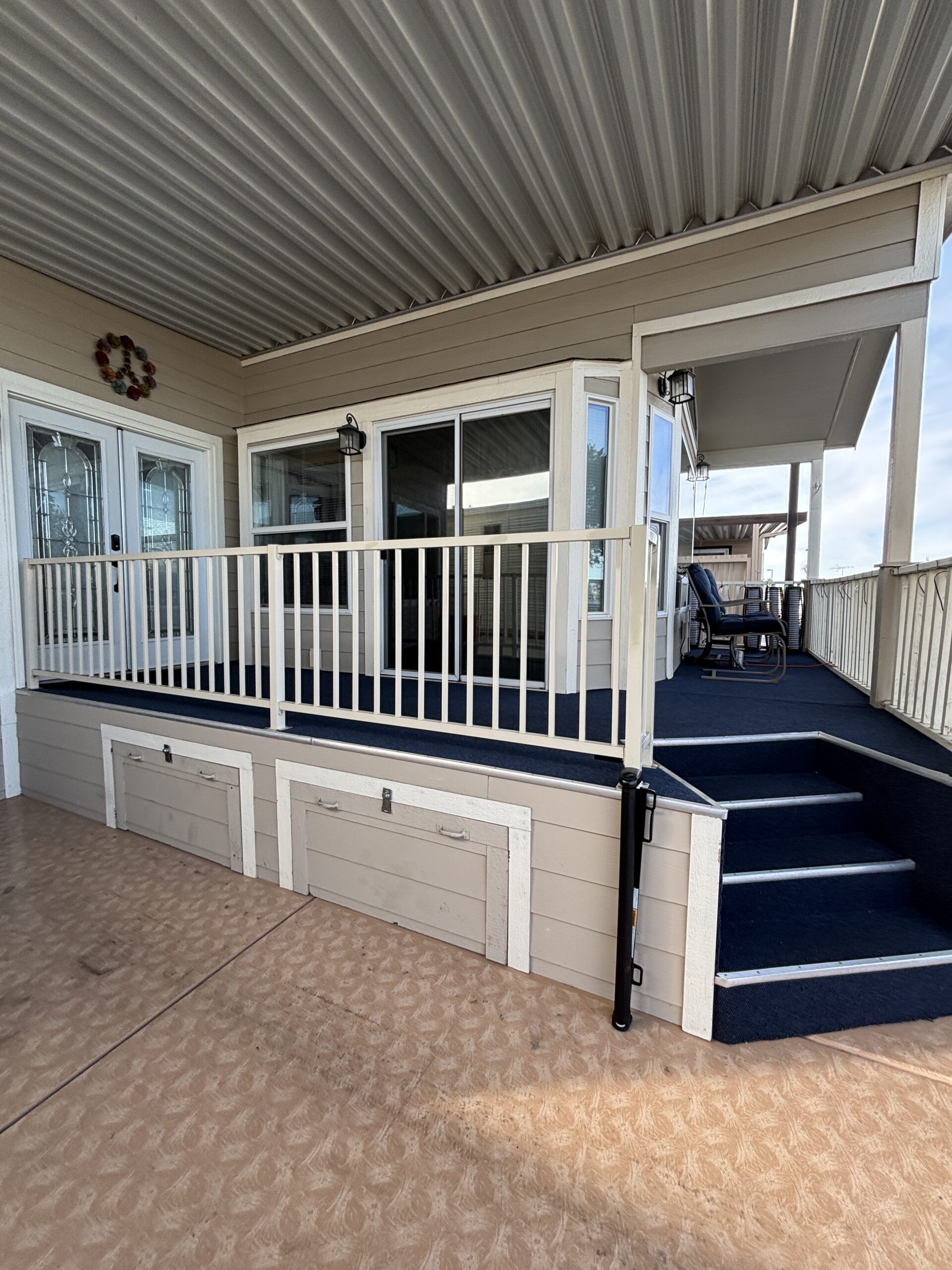 • Carpeted Side Deck & Metal Railing w/Under Storage & Drawers