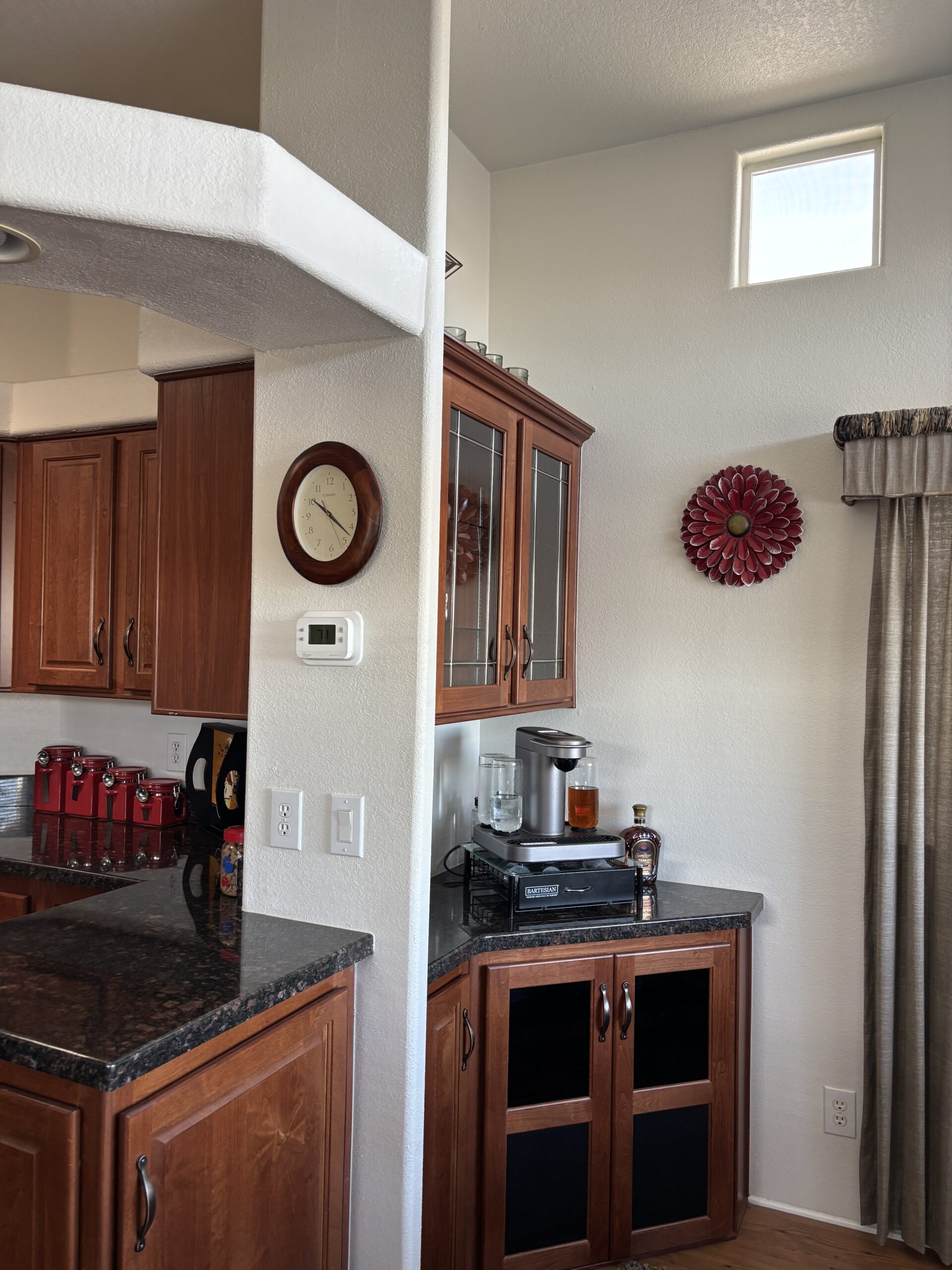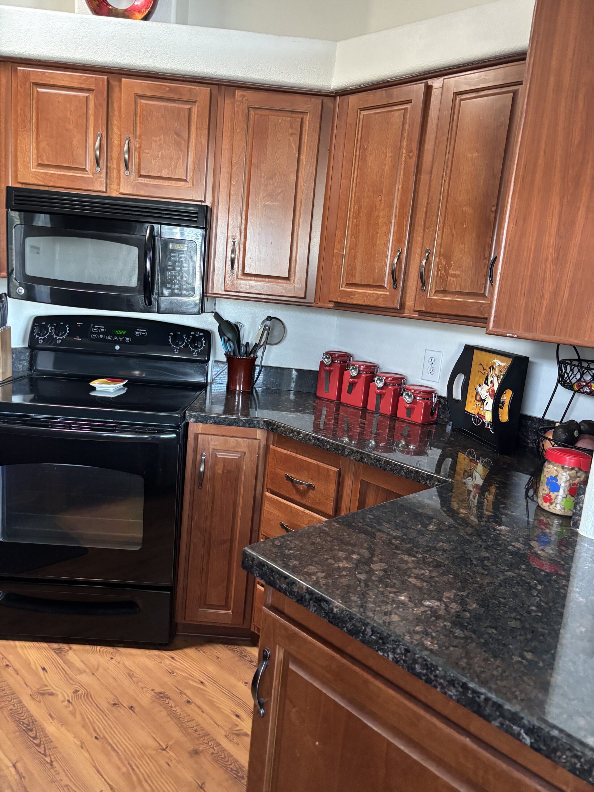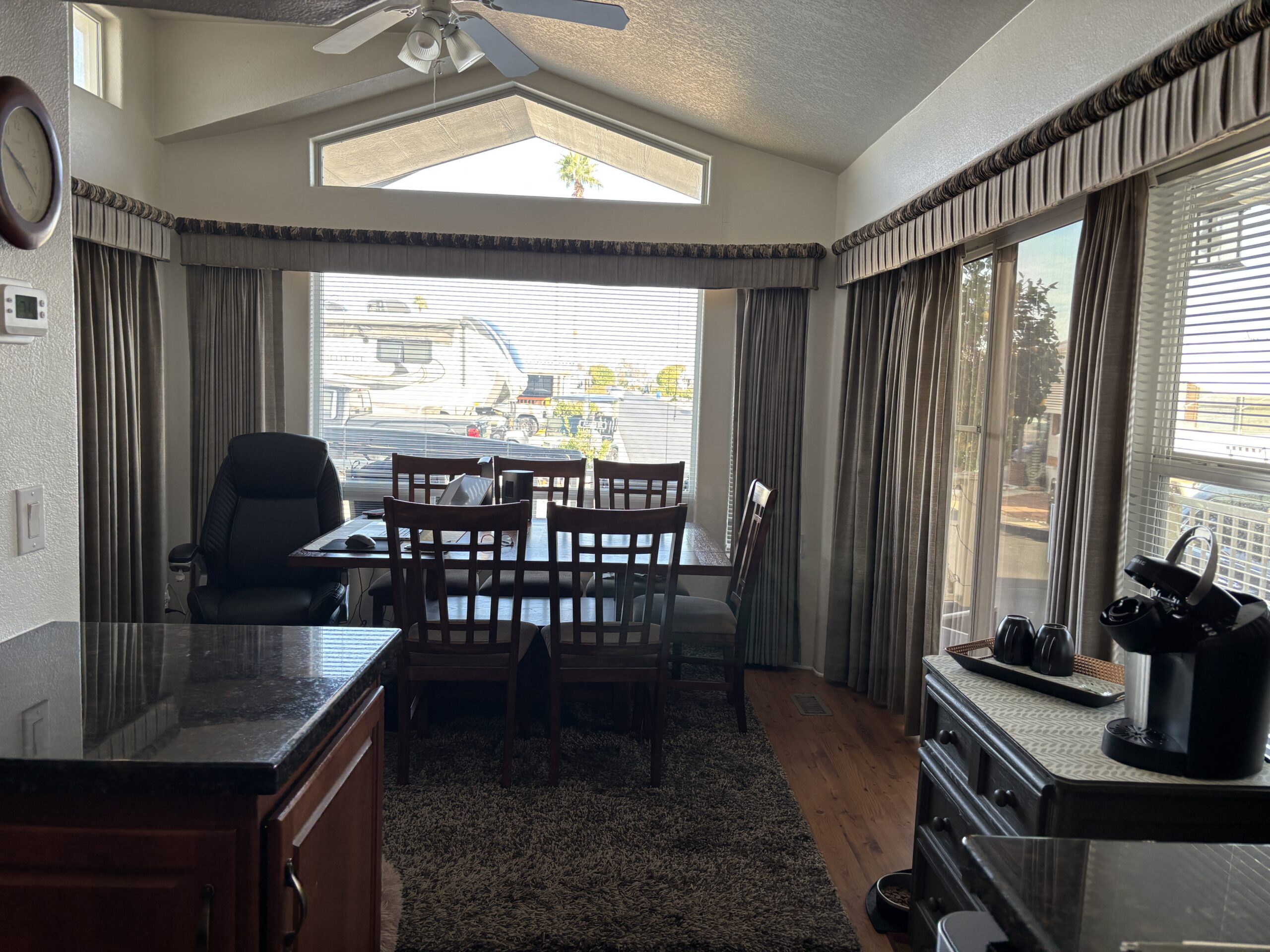 • Full Front Kitchen w/ Skylights, Stainless Steel Appliances, Built-In Microwave, Glass-Top Stove, Dishwasher, Granite Counters, Garbage Disposal (2025), RO Water System, & Pantry