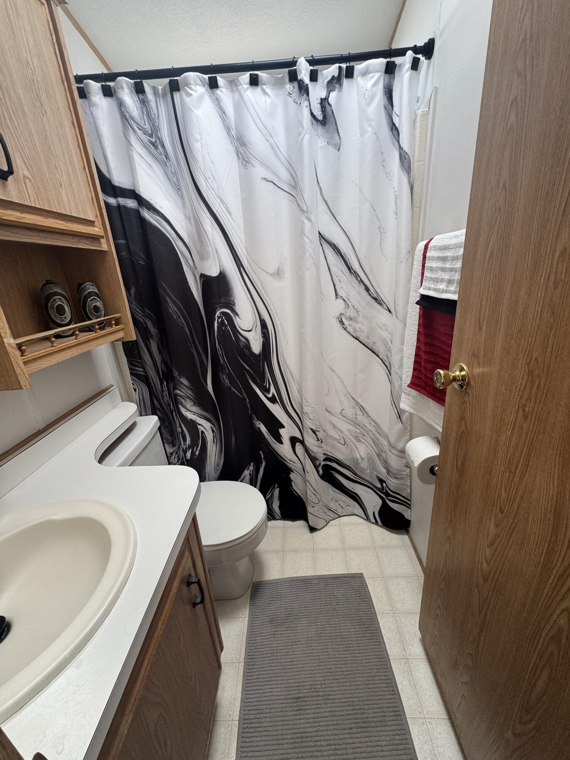 • Bathroom w/Shower & Tub Combo, Linen Cabinet, & Skylight