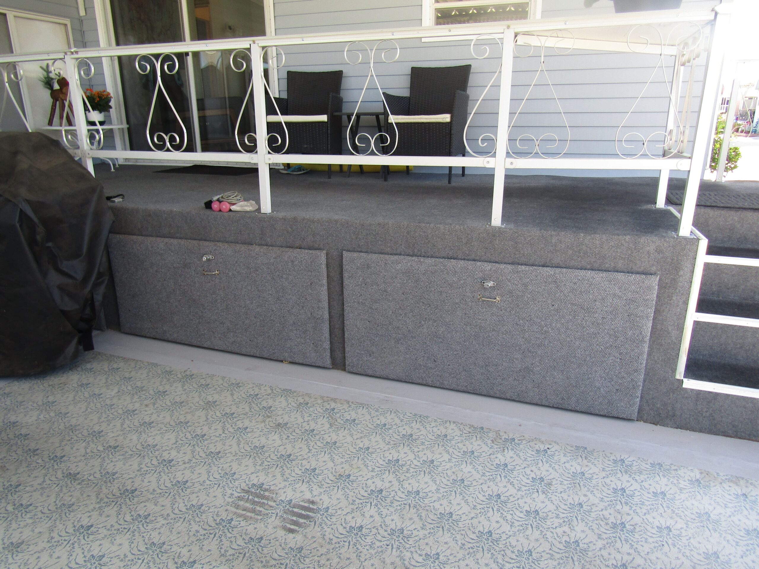 - Carpeted Raised Side Deck w/Storage & 2 Sets of Stairs
