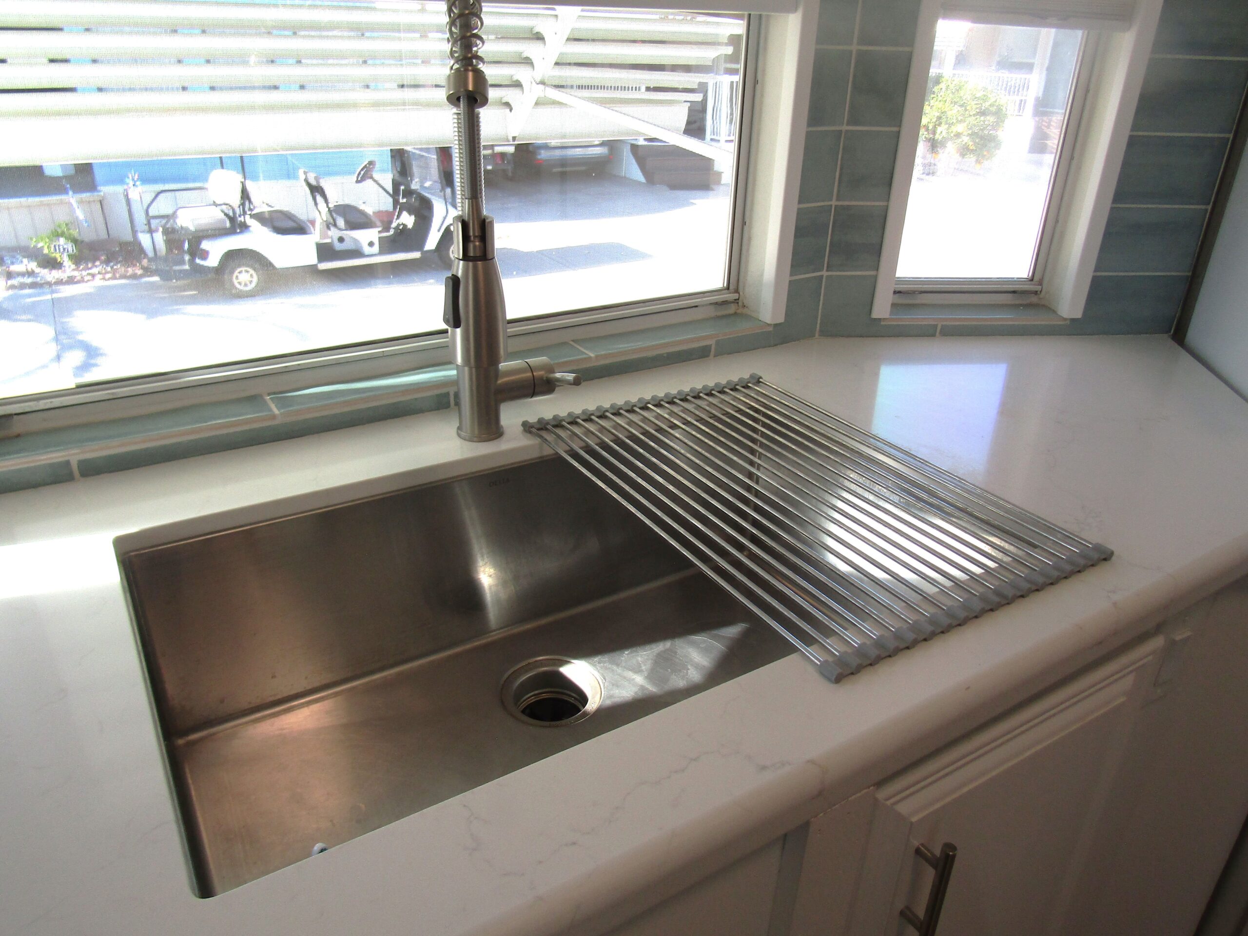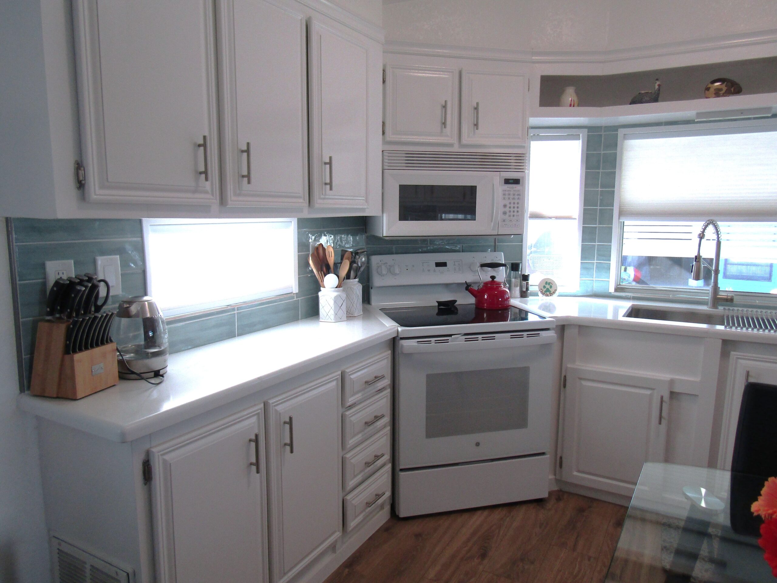 - Full Front Kitchen w/Newer Quartz Countertops/Large Farm Sink/Faucet/Glass-Top Stove/Tile Backsplash/Painted Cabinets/Garbage Disposal(2023)