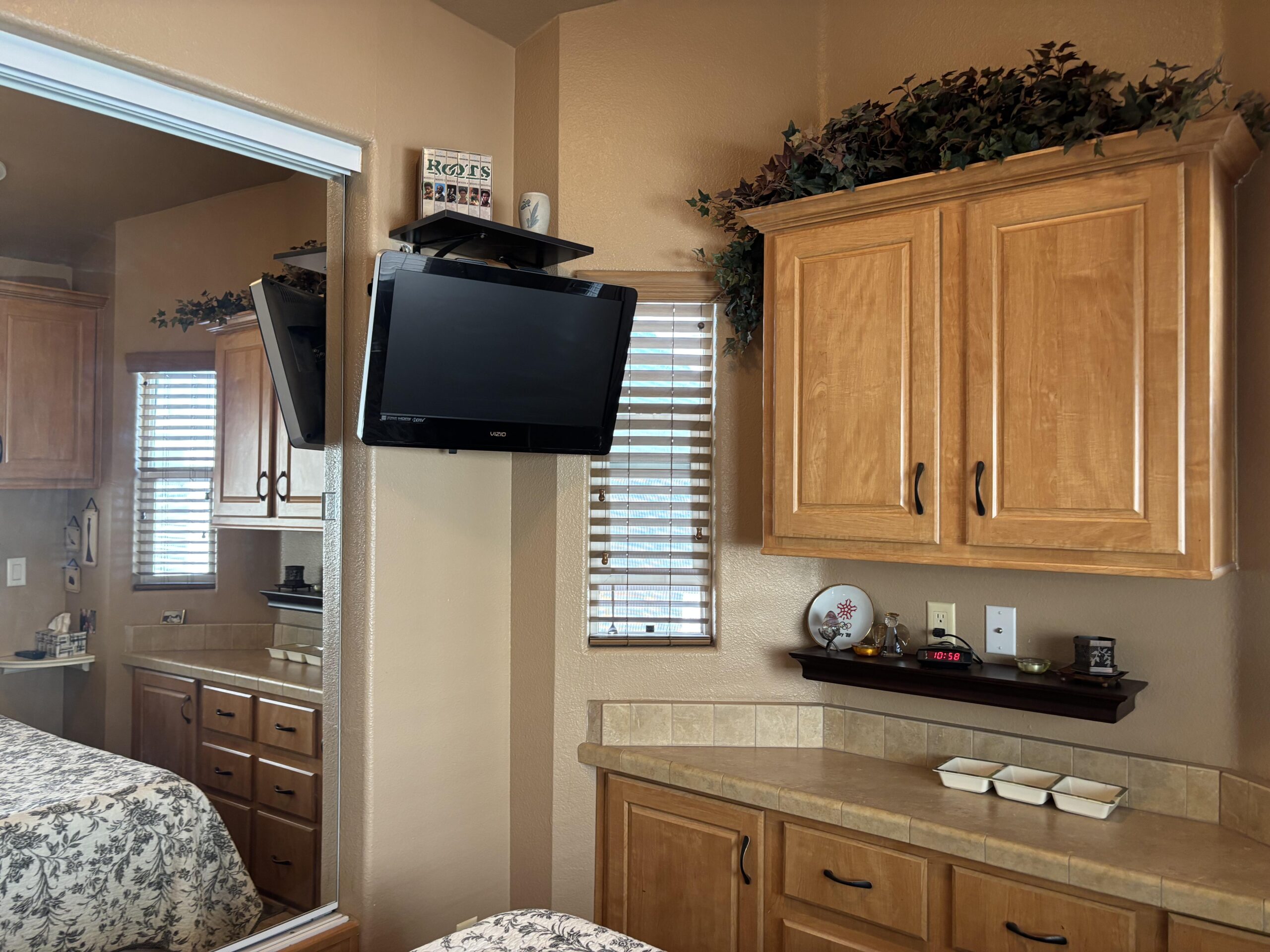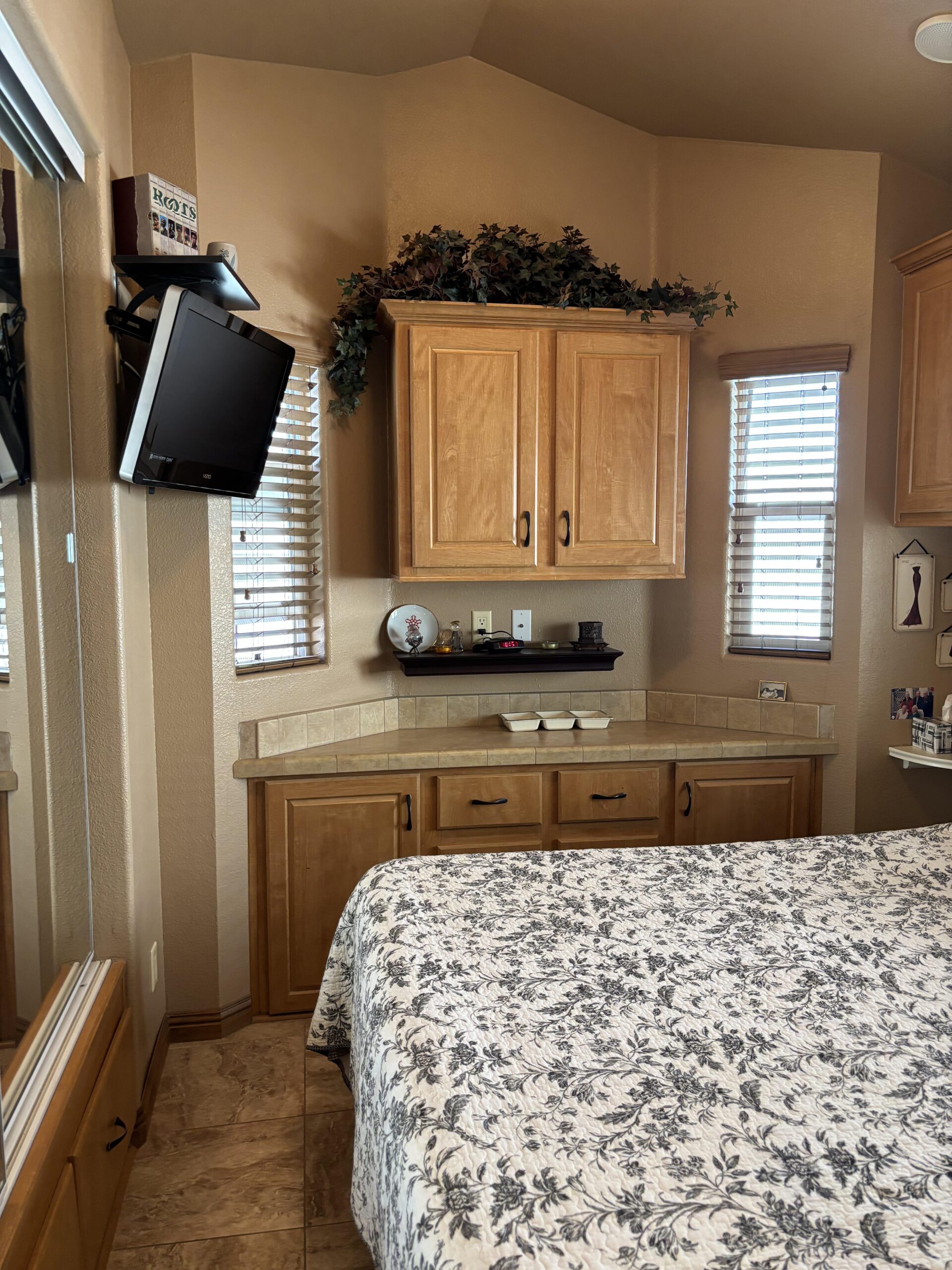 - Queen Bedroom w/Mirrored Closet, Under Built-In Dresser, Drawers, & Cabinets