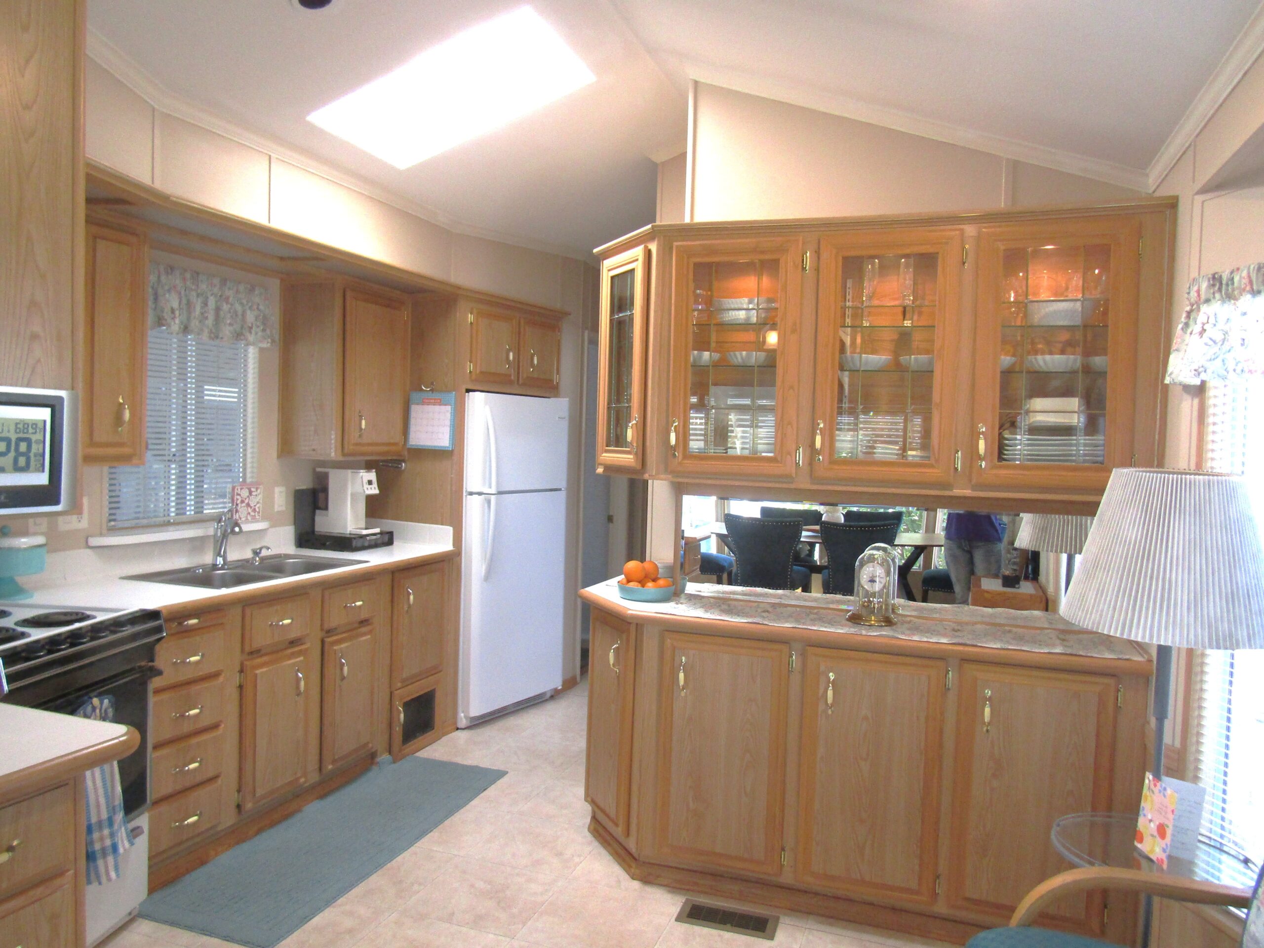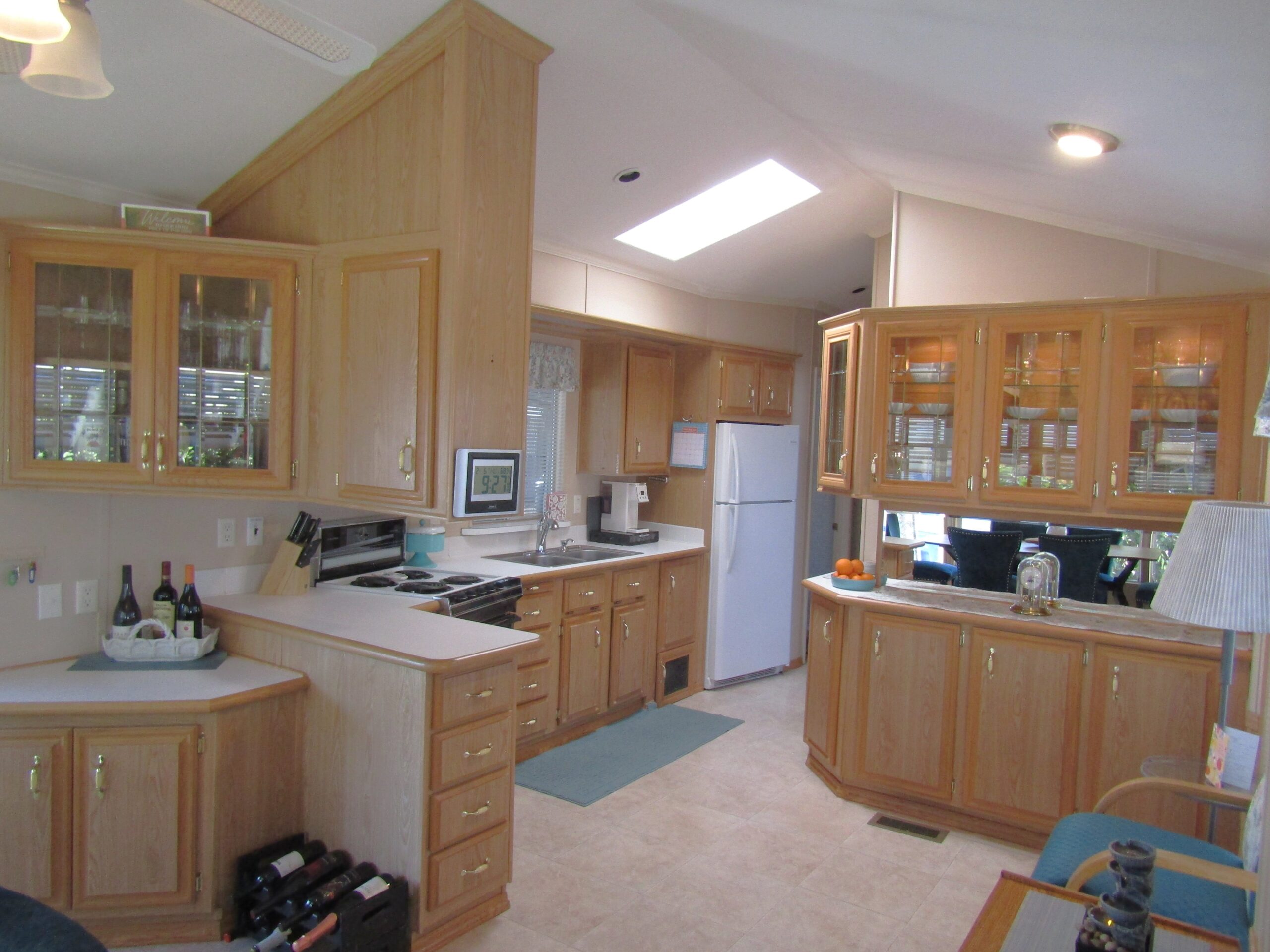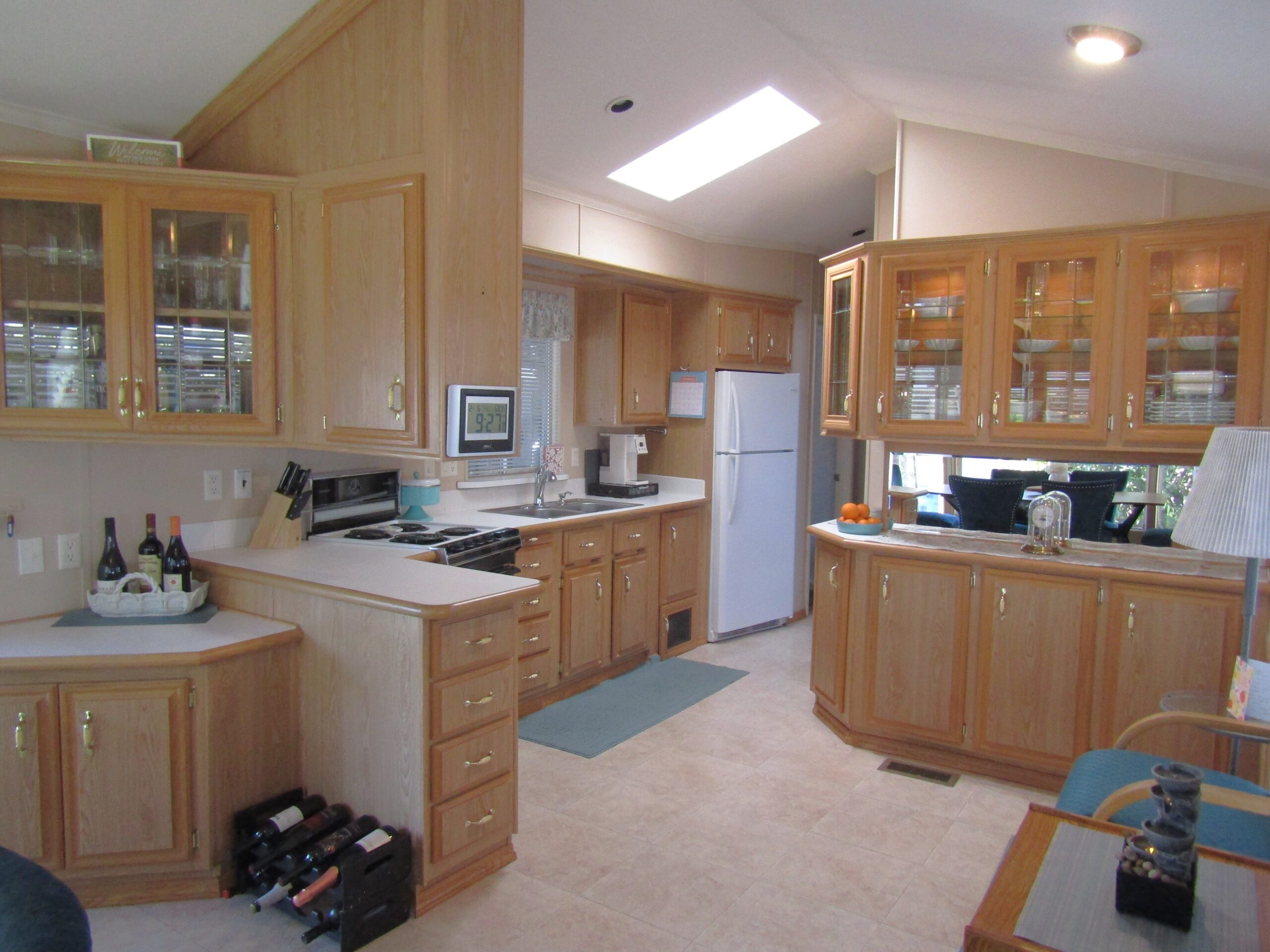 - L-Shape Side Kitchen w/Wrap Around Cabinets, New Microwave & Faucet, Newer Fridge, Skylight & Laminate Click Tile Floor