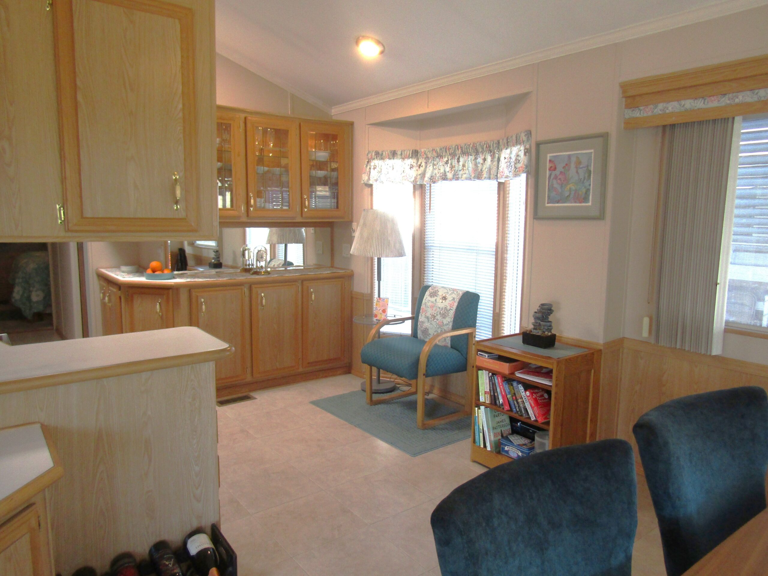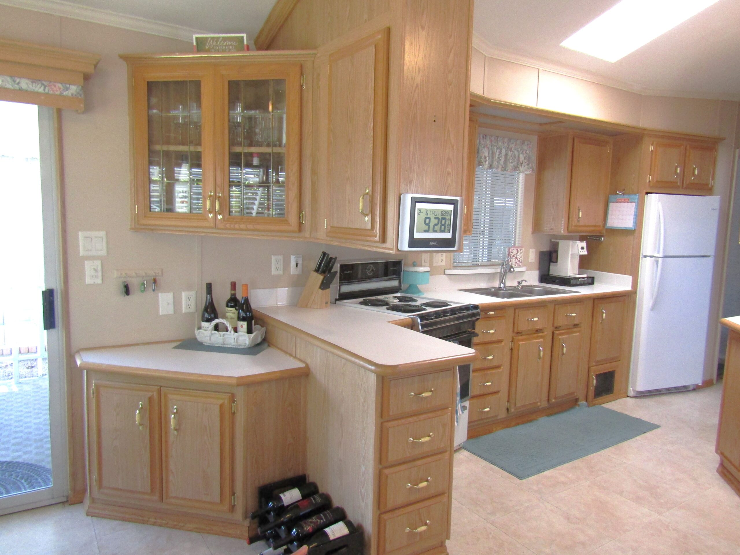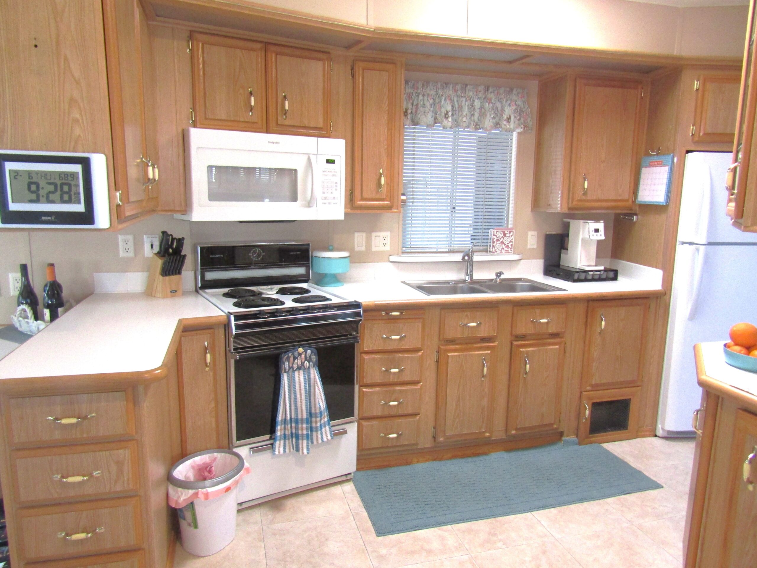 - L-Shape Side Kitchen w/Wrap Around Cabinets, New Microwave & Faucet, Newer Fridge, Skylight & Laminate Click Tile Floor