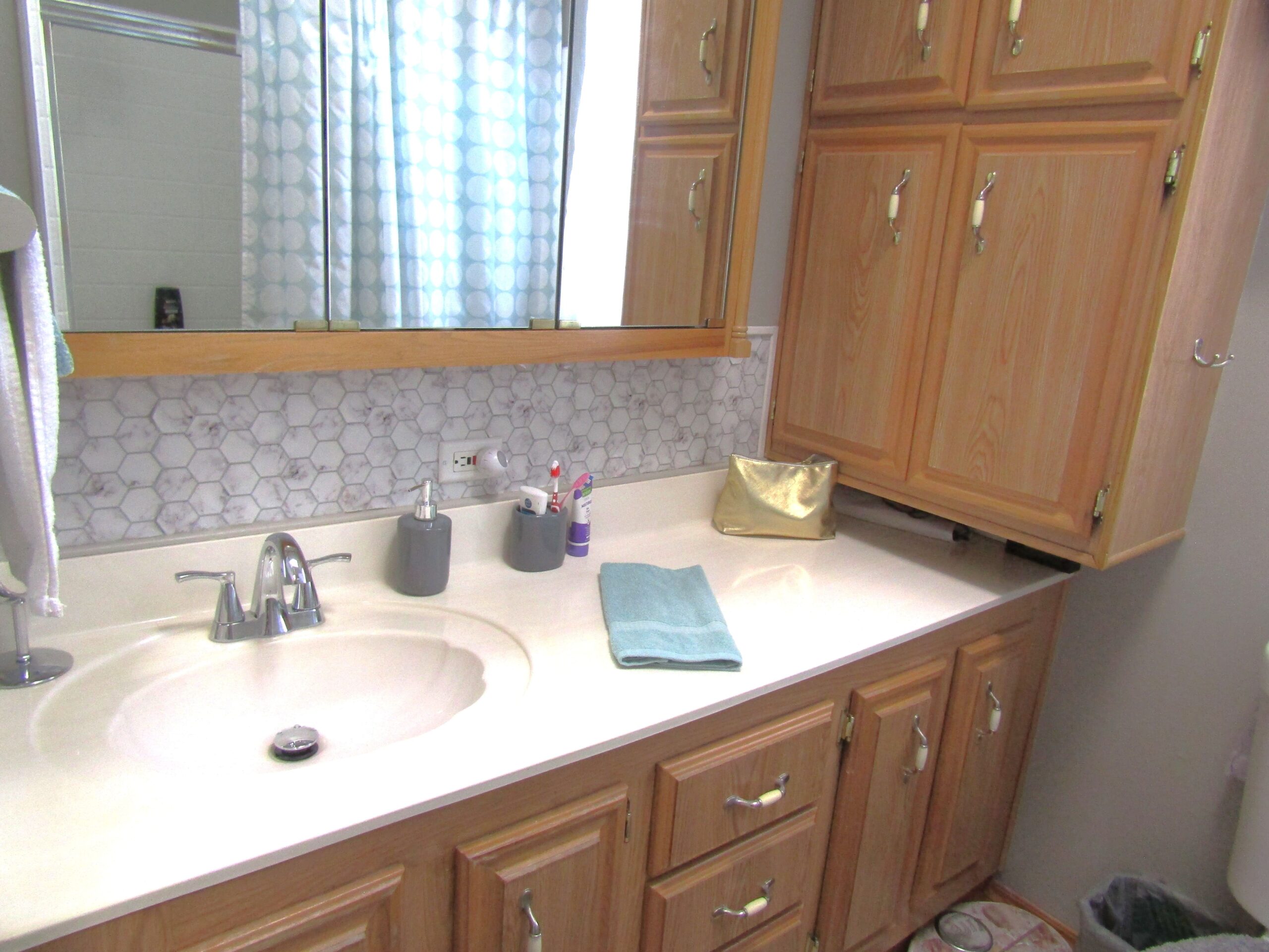 - Bathroom has Large Vanity, Shower/Tub Combo, & Extra Cupboards, & New Faucet