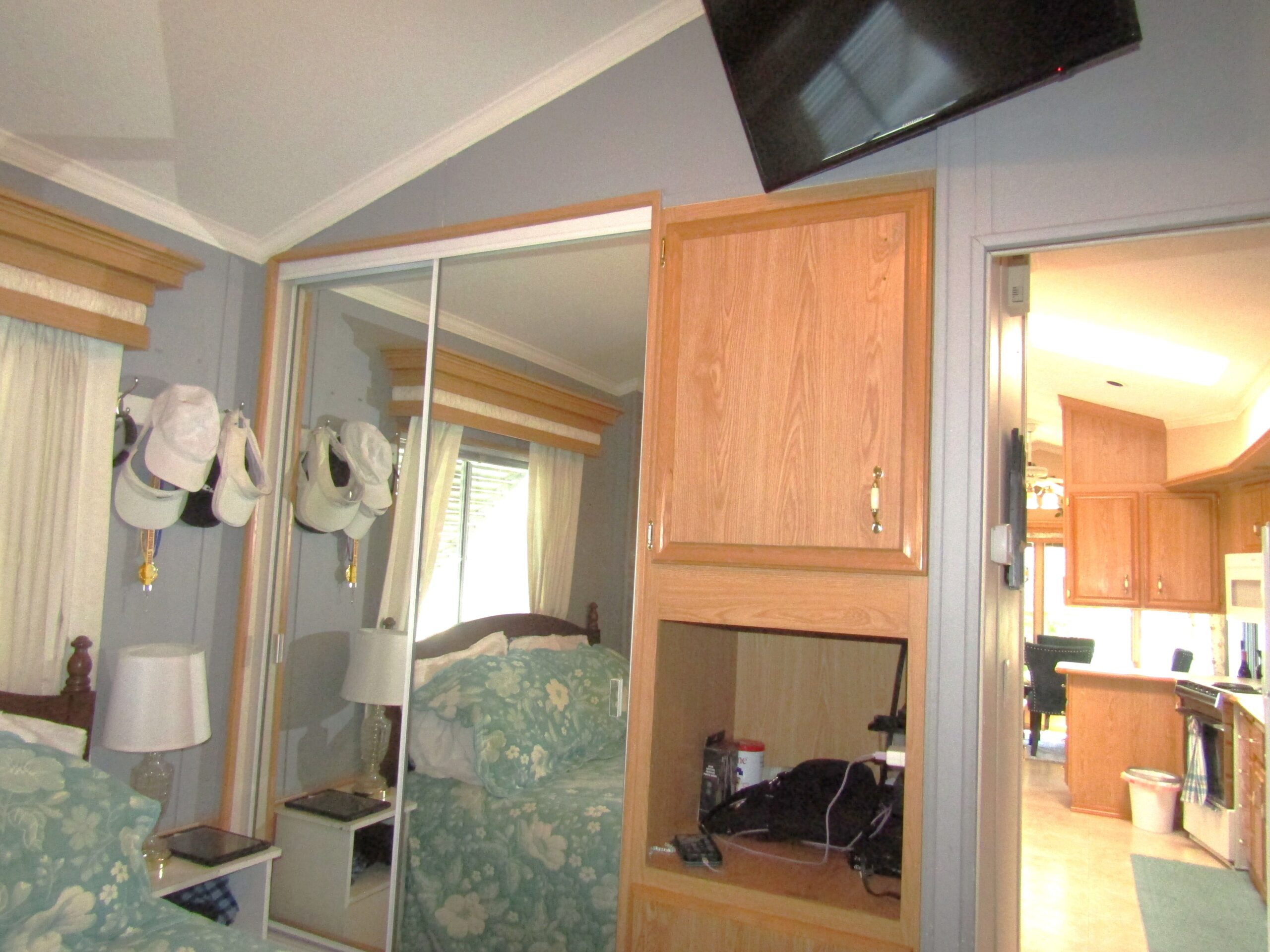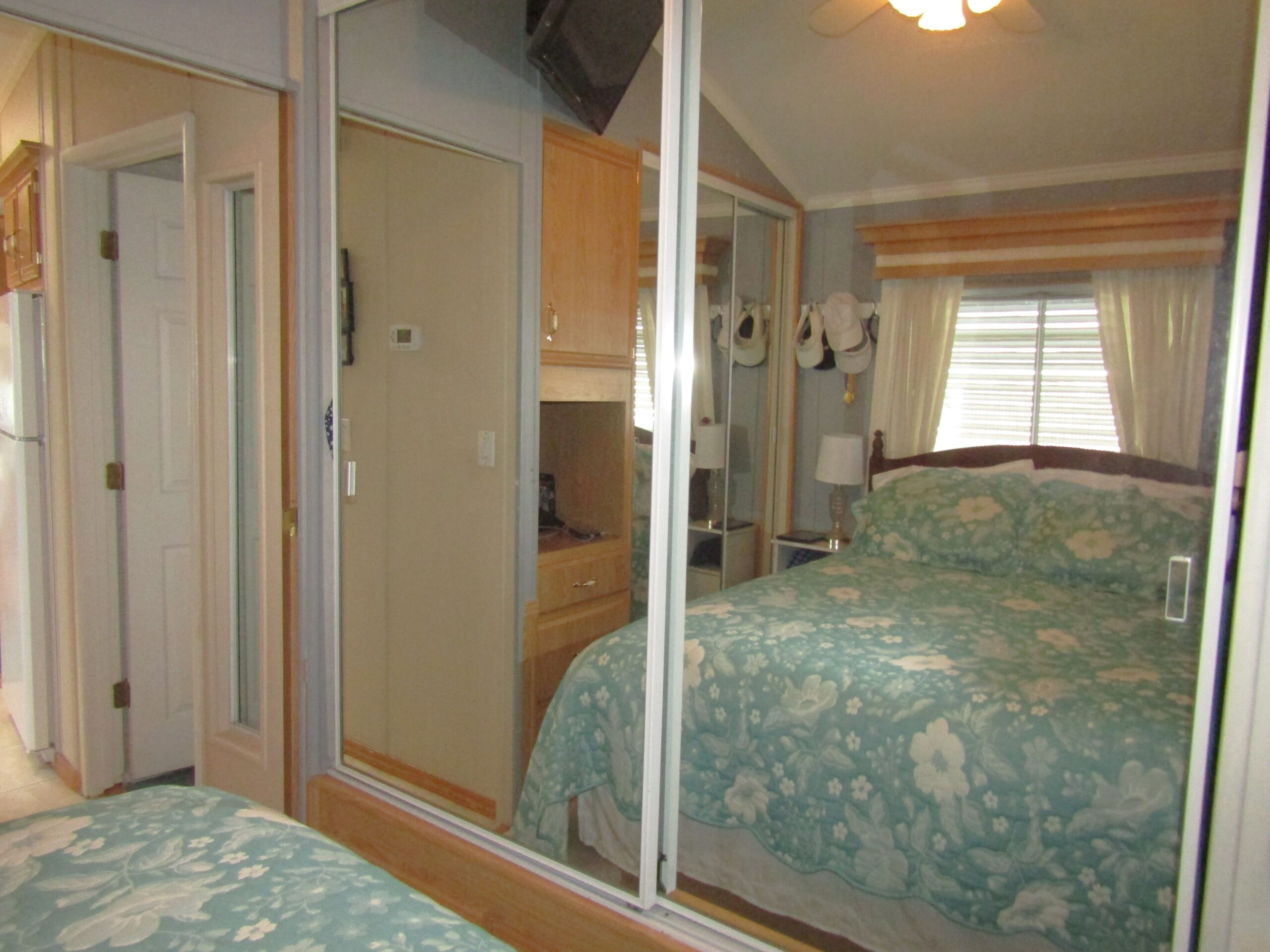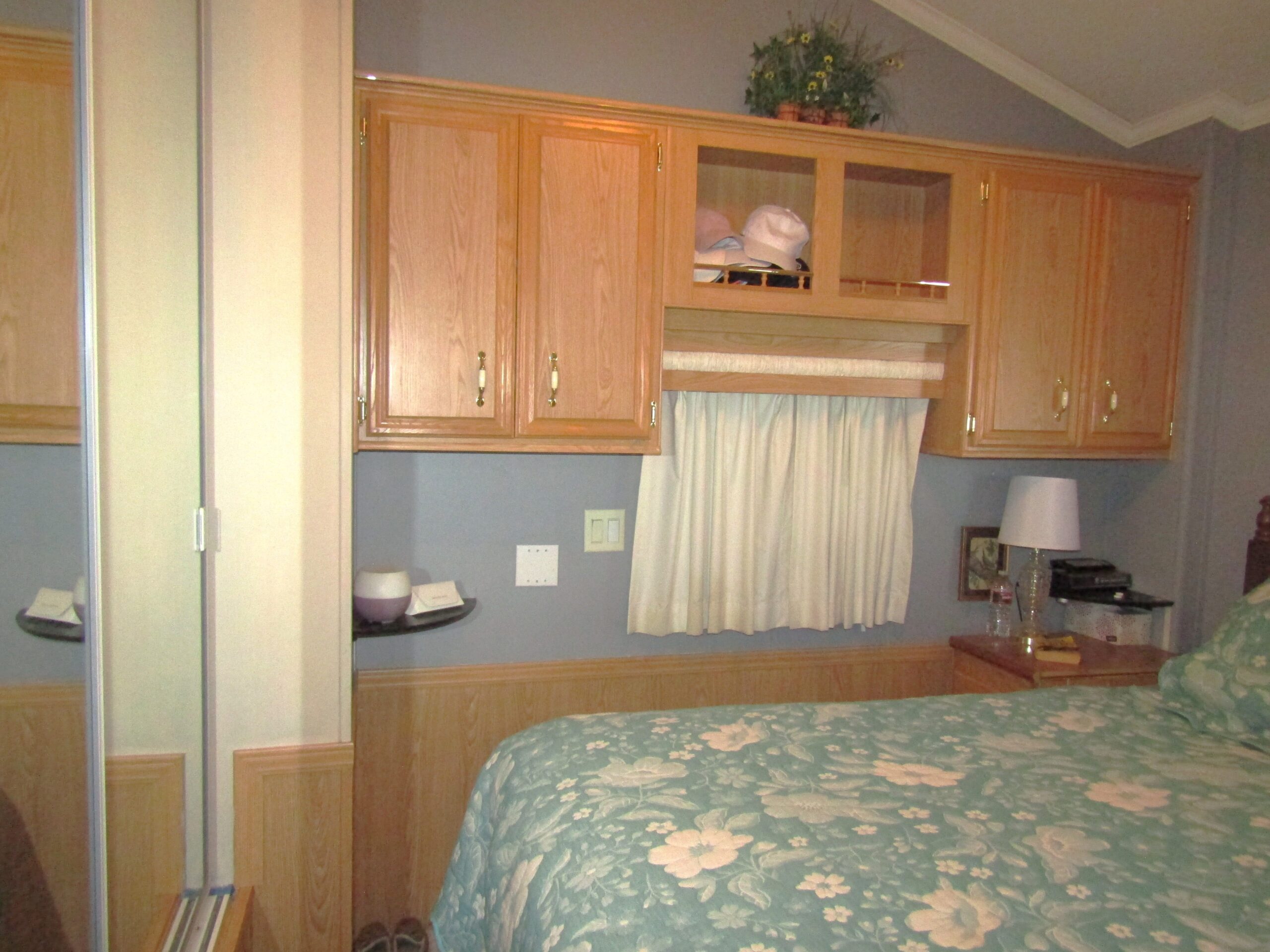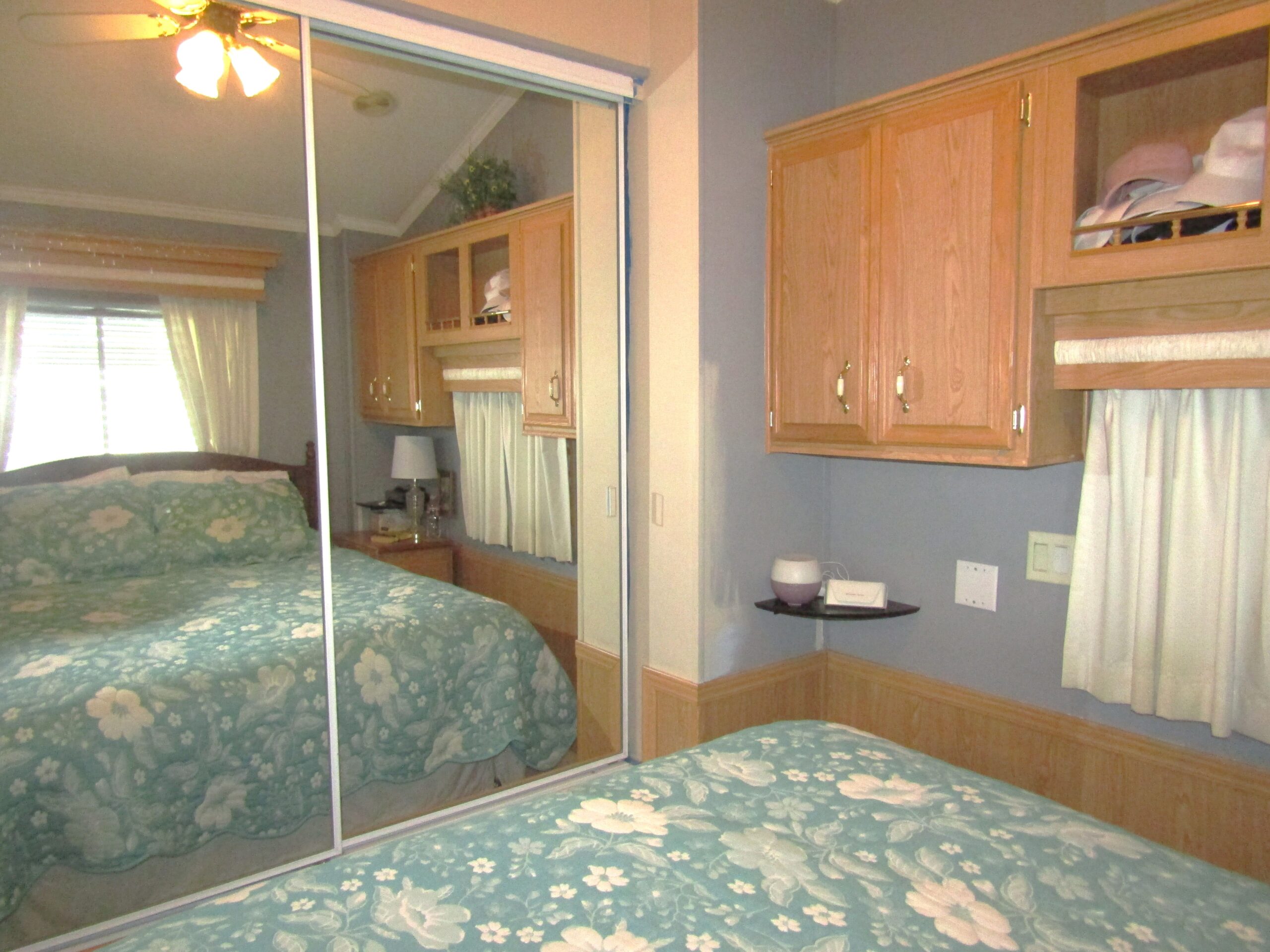 - Carpeted Queen Size Bedroom w/Double Mirrored Closets, Built-In Dresser, & Upper Cabinets