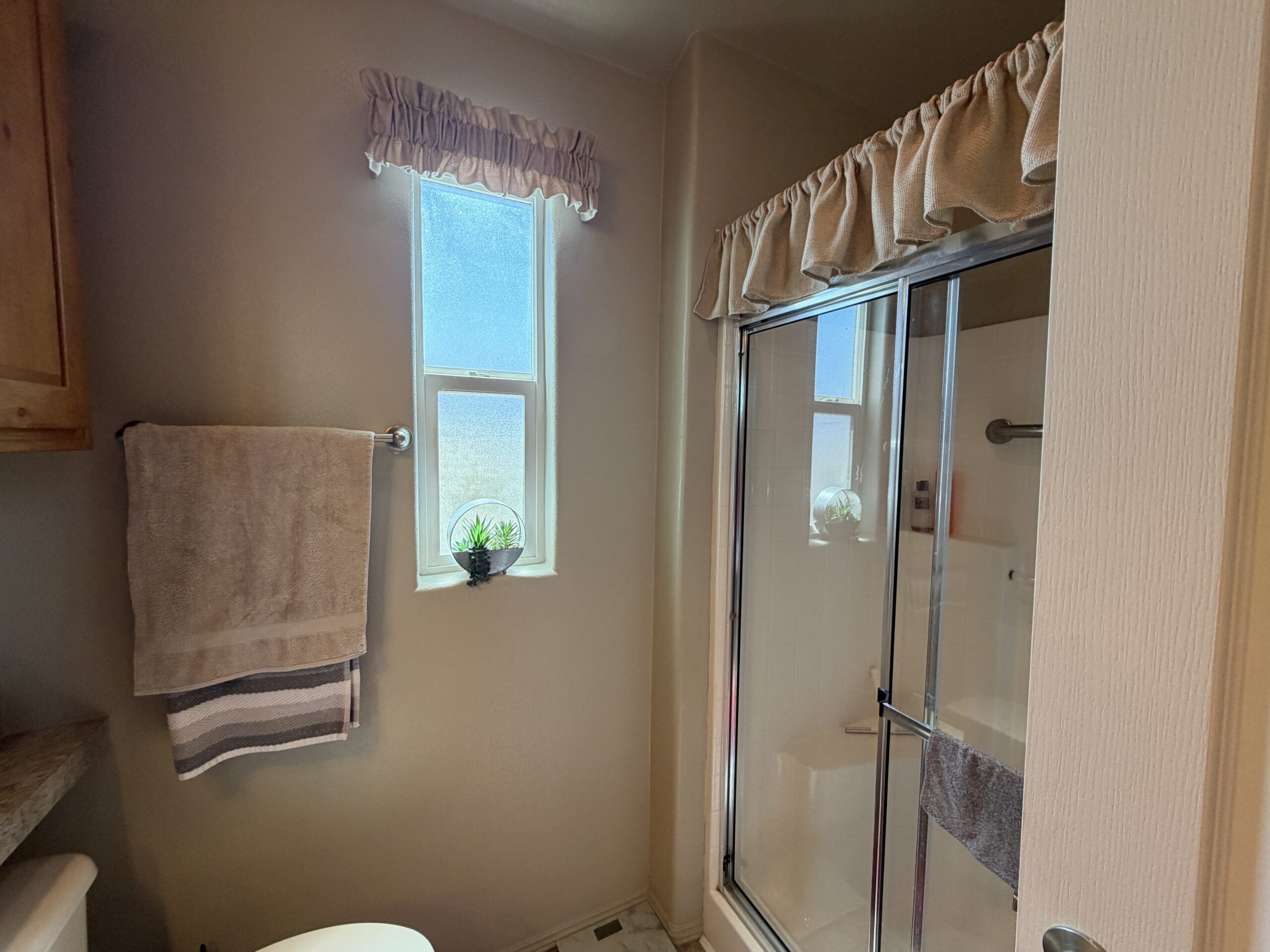 - Bathroom w/Glass Enclosure Step-In Shower, & Linen Cabinet