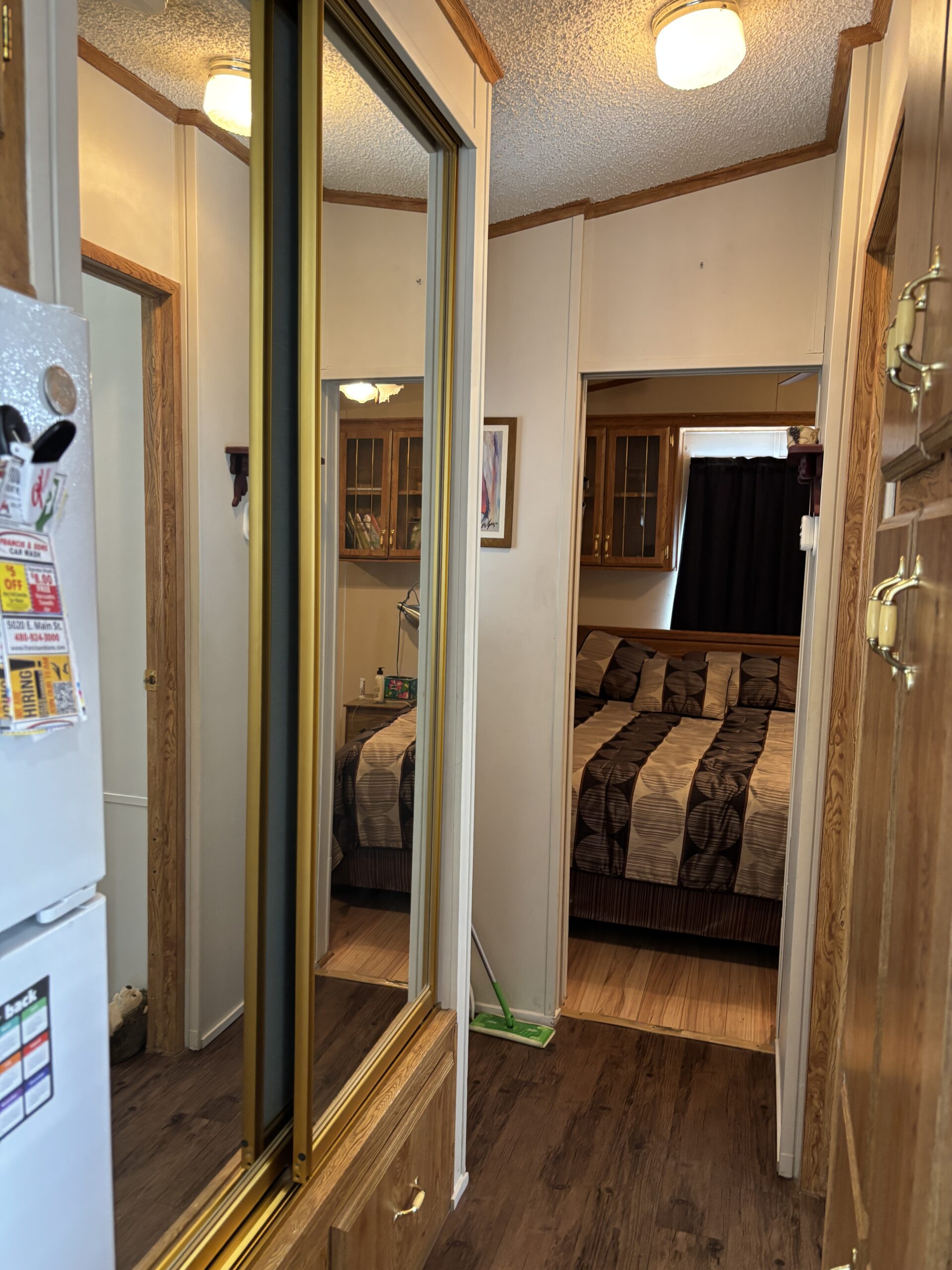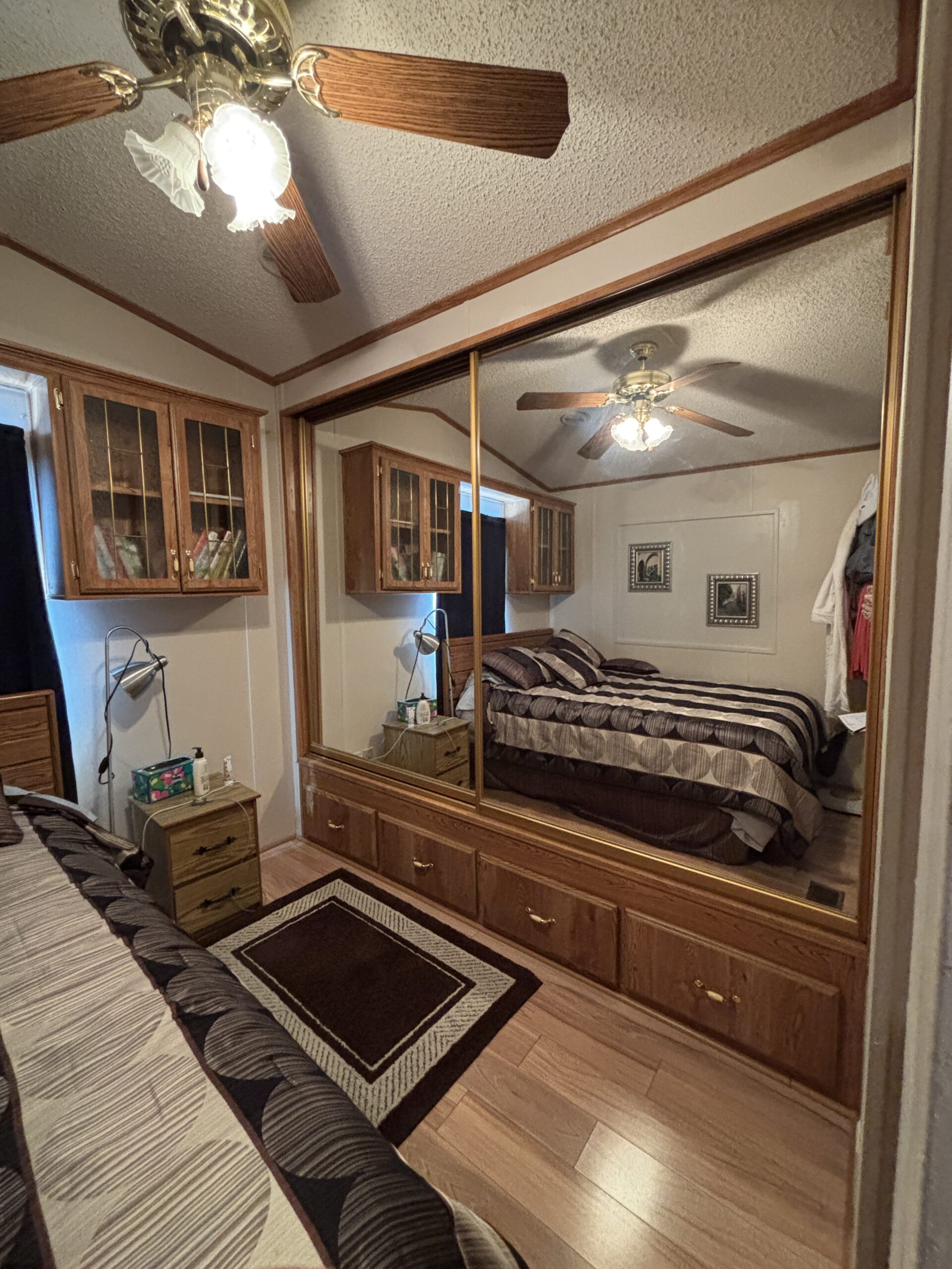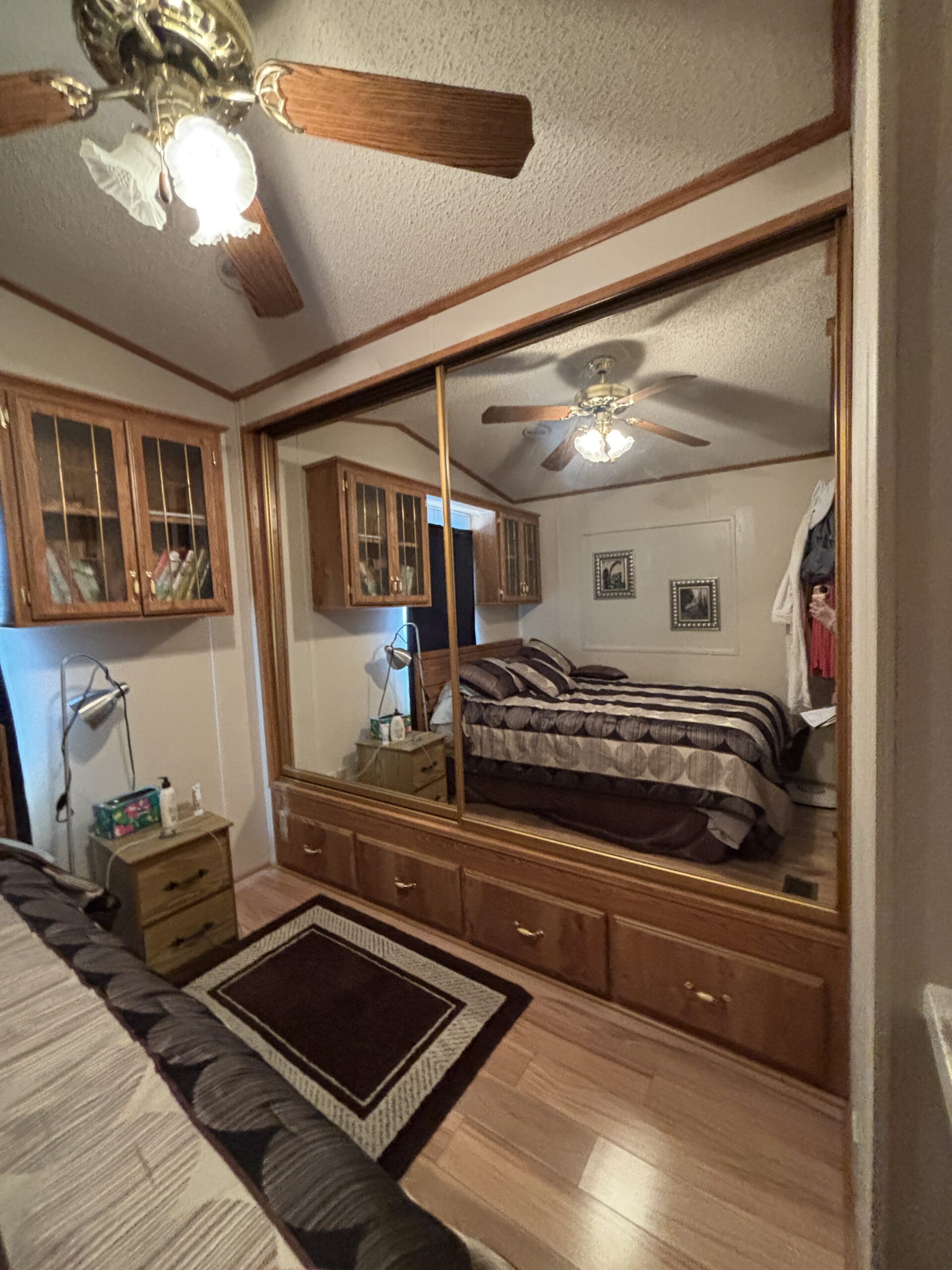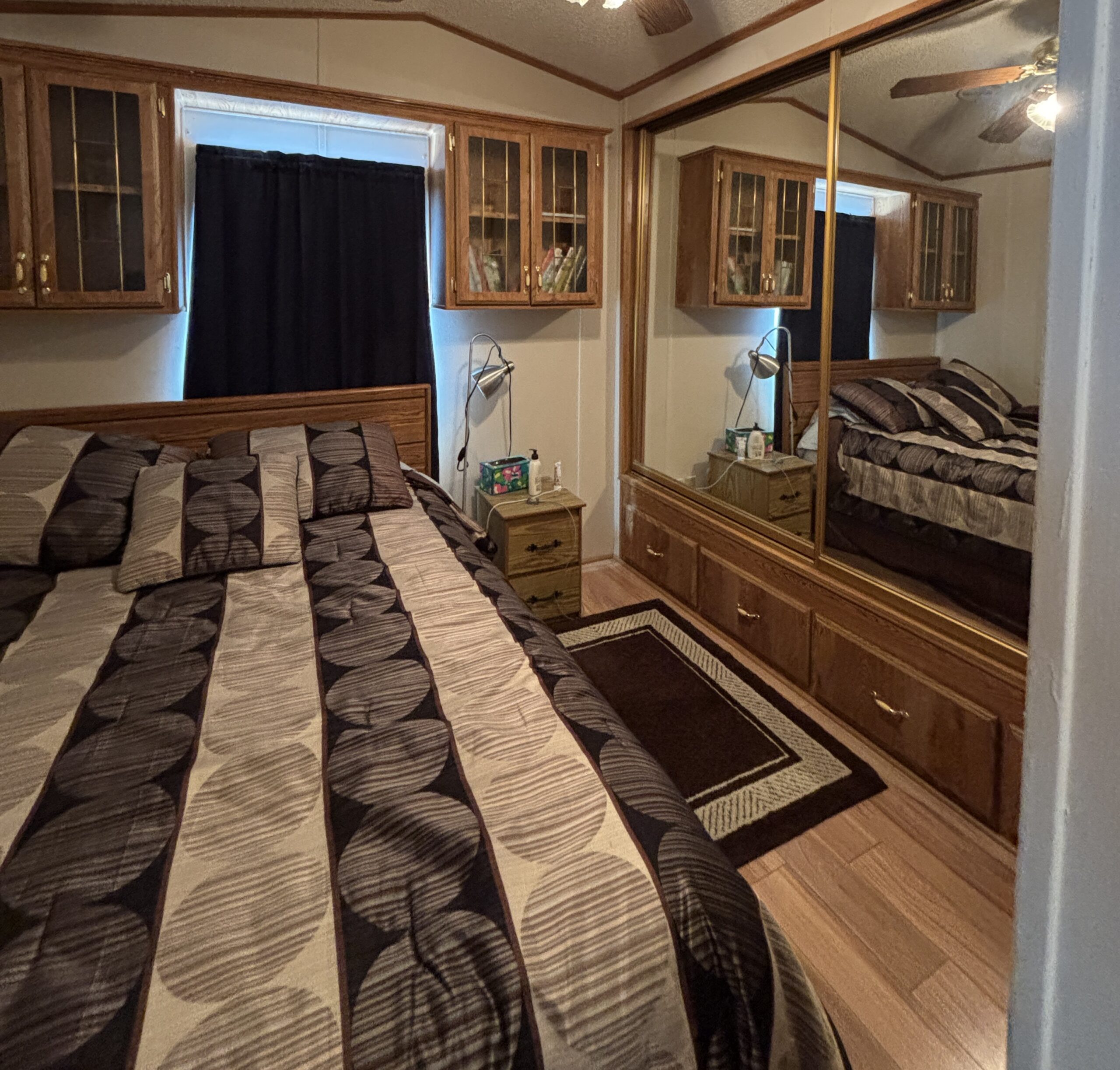 - Queen Bedroom w/Mirrored Closest Doors, Built-In Dresser, & Upper Storage Cabinets