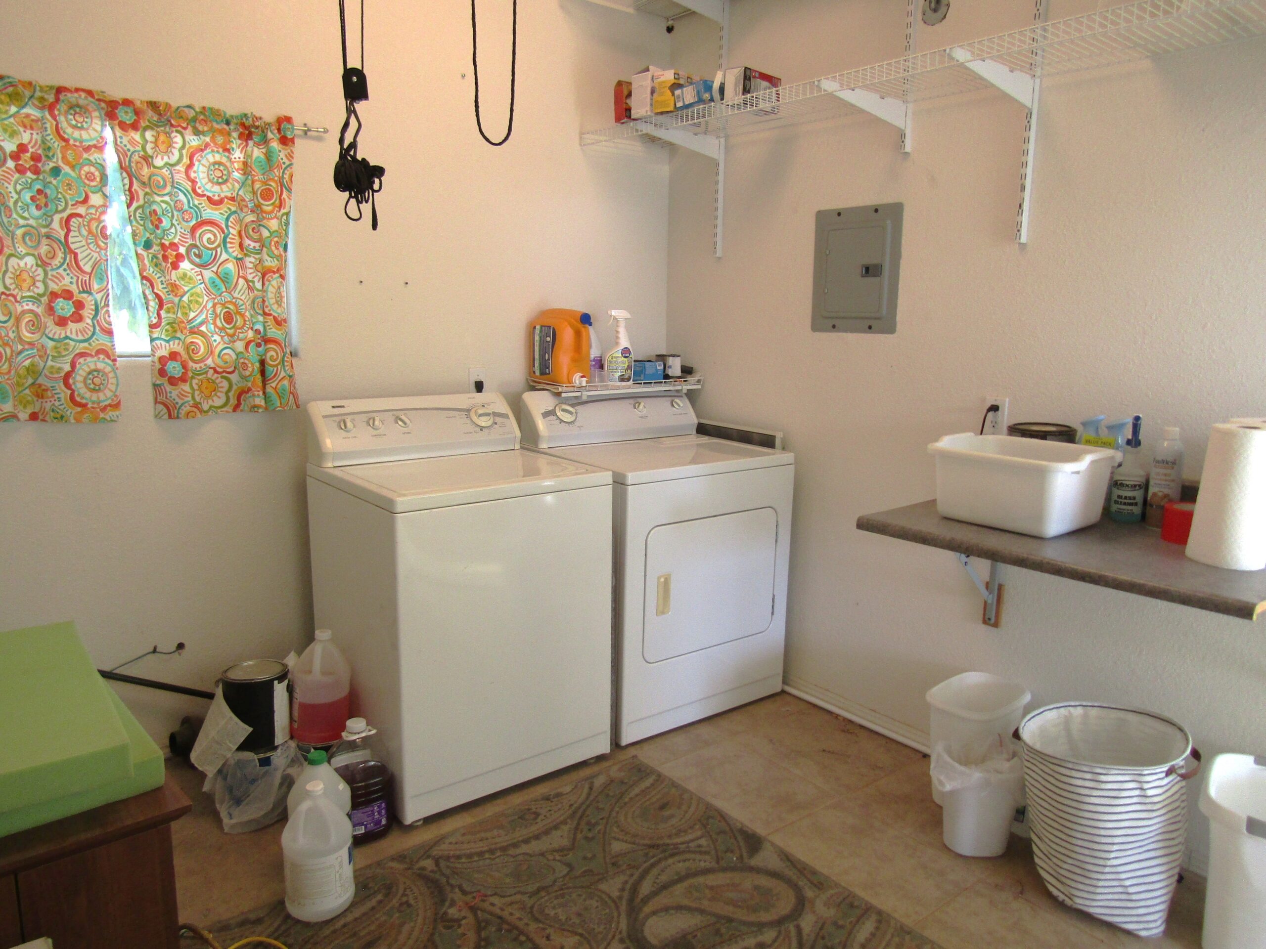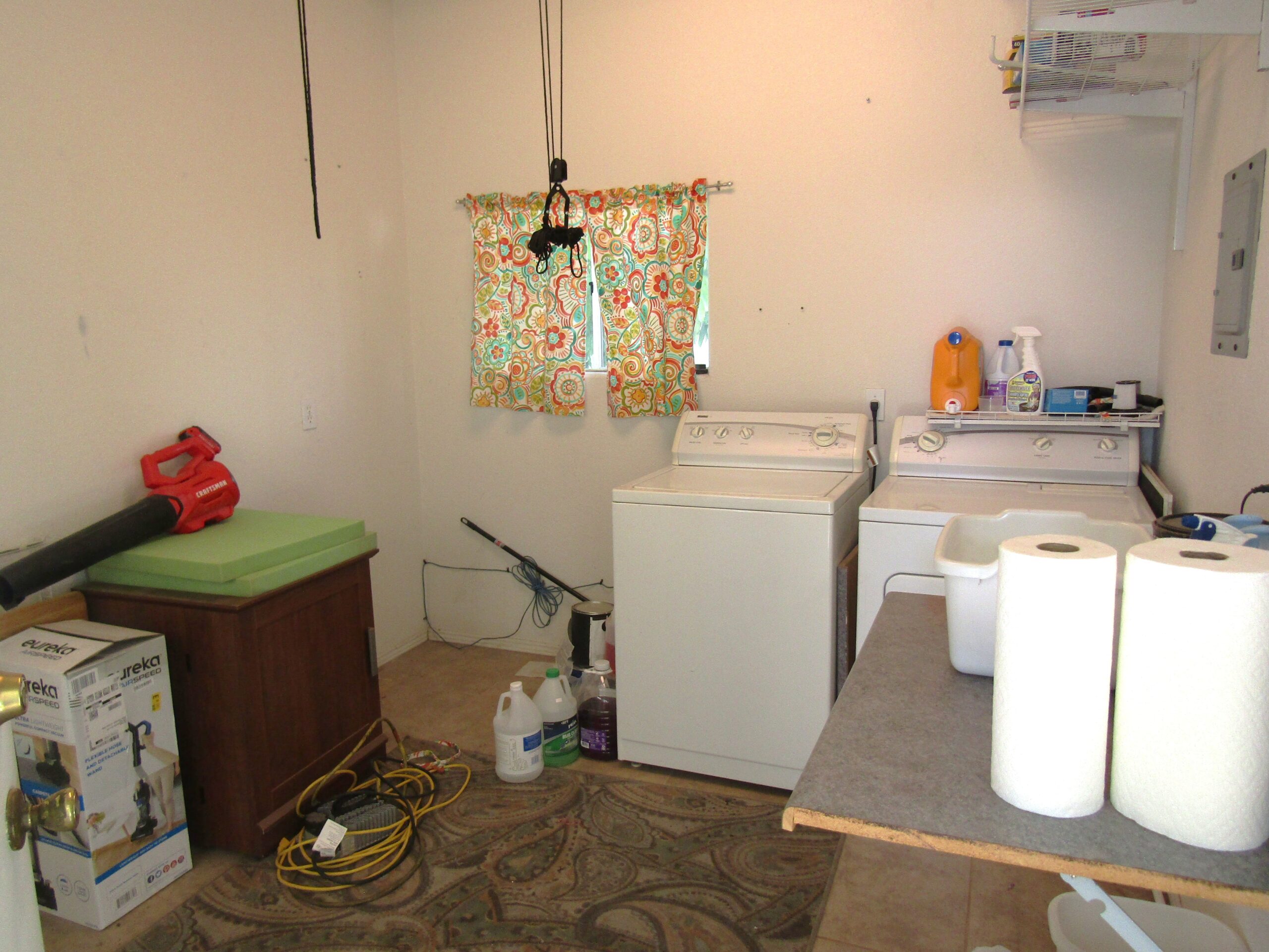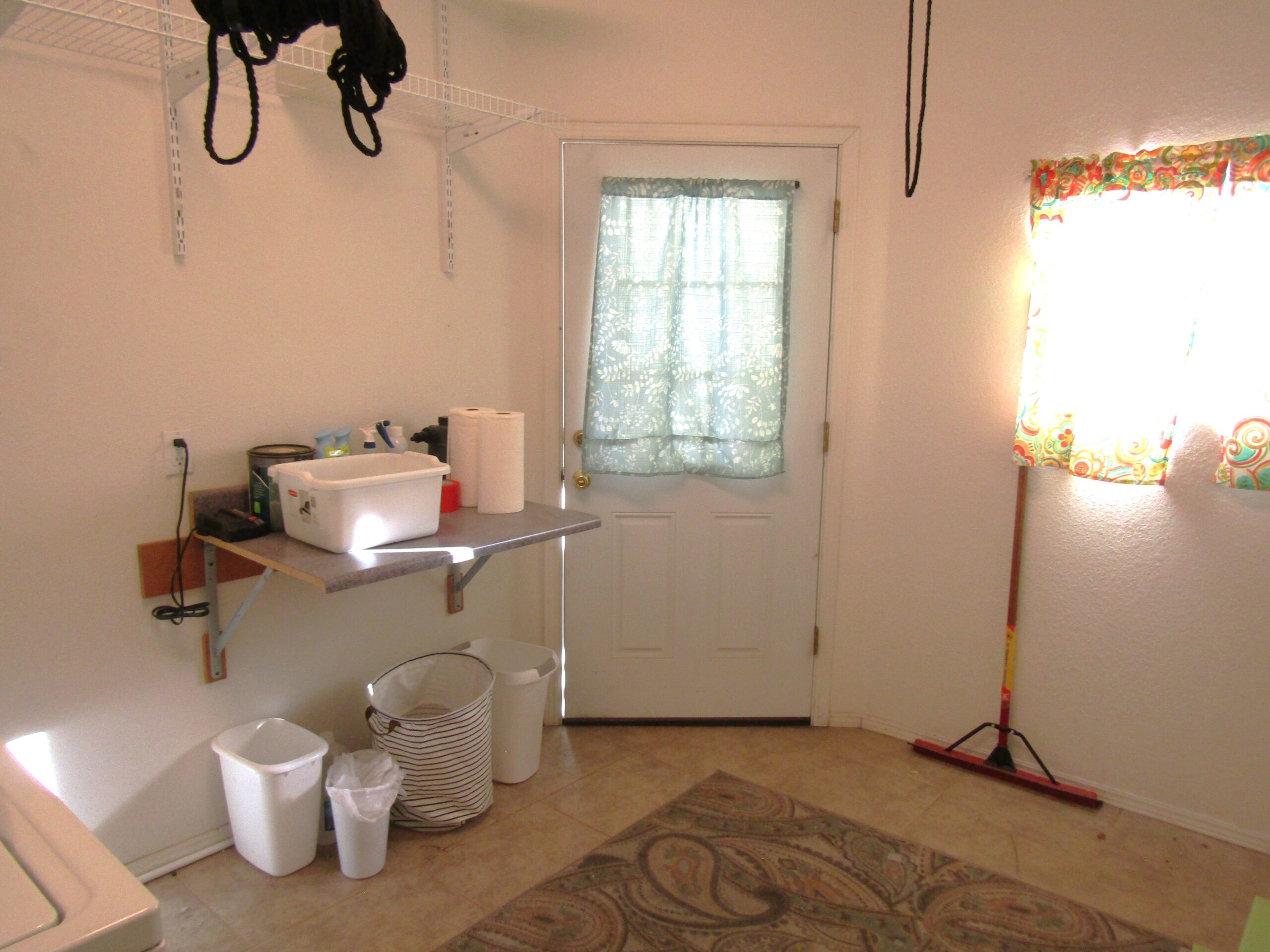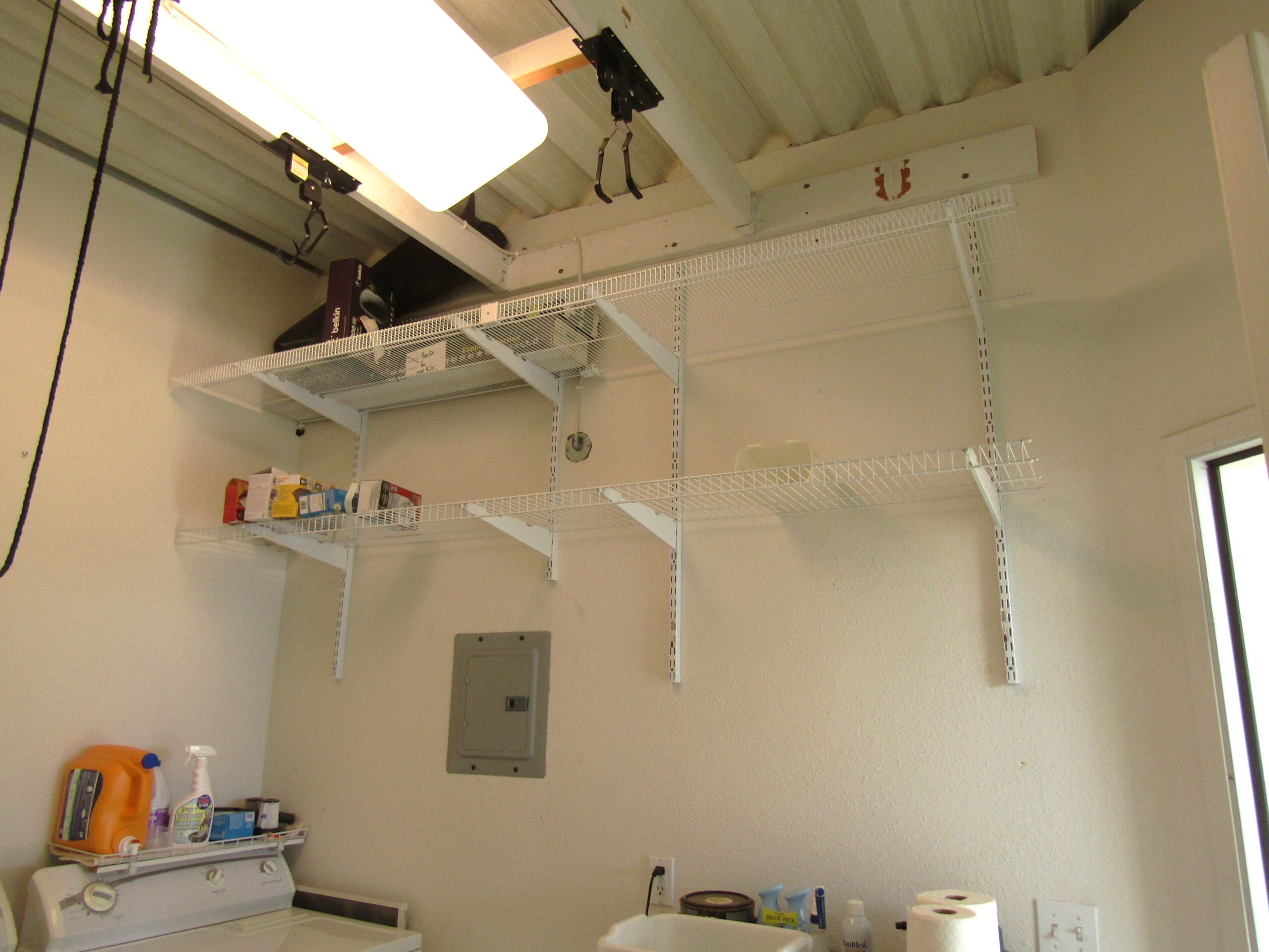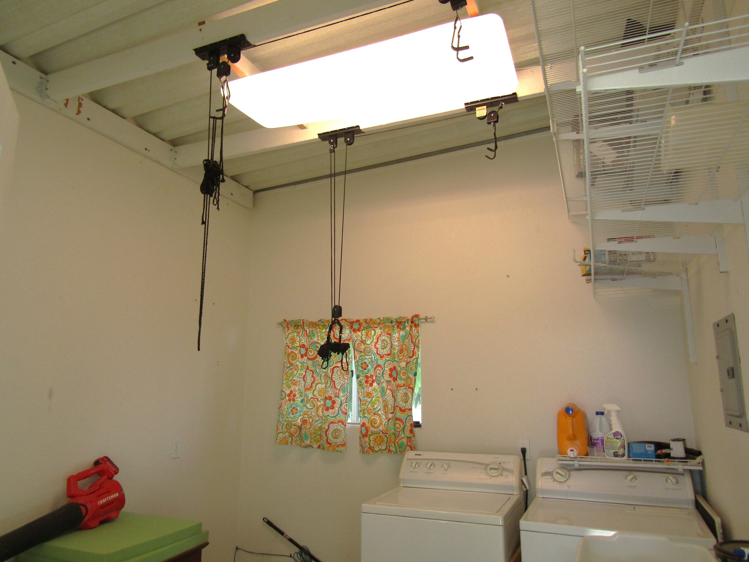 - Finished Shed w/Full-Size Laundry w/Counter, Shelving, & Hanging Bike Pulleys