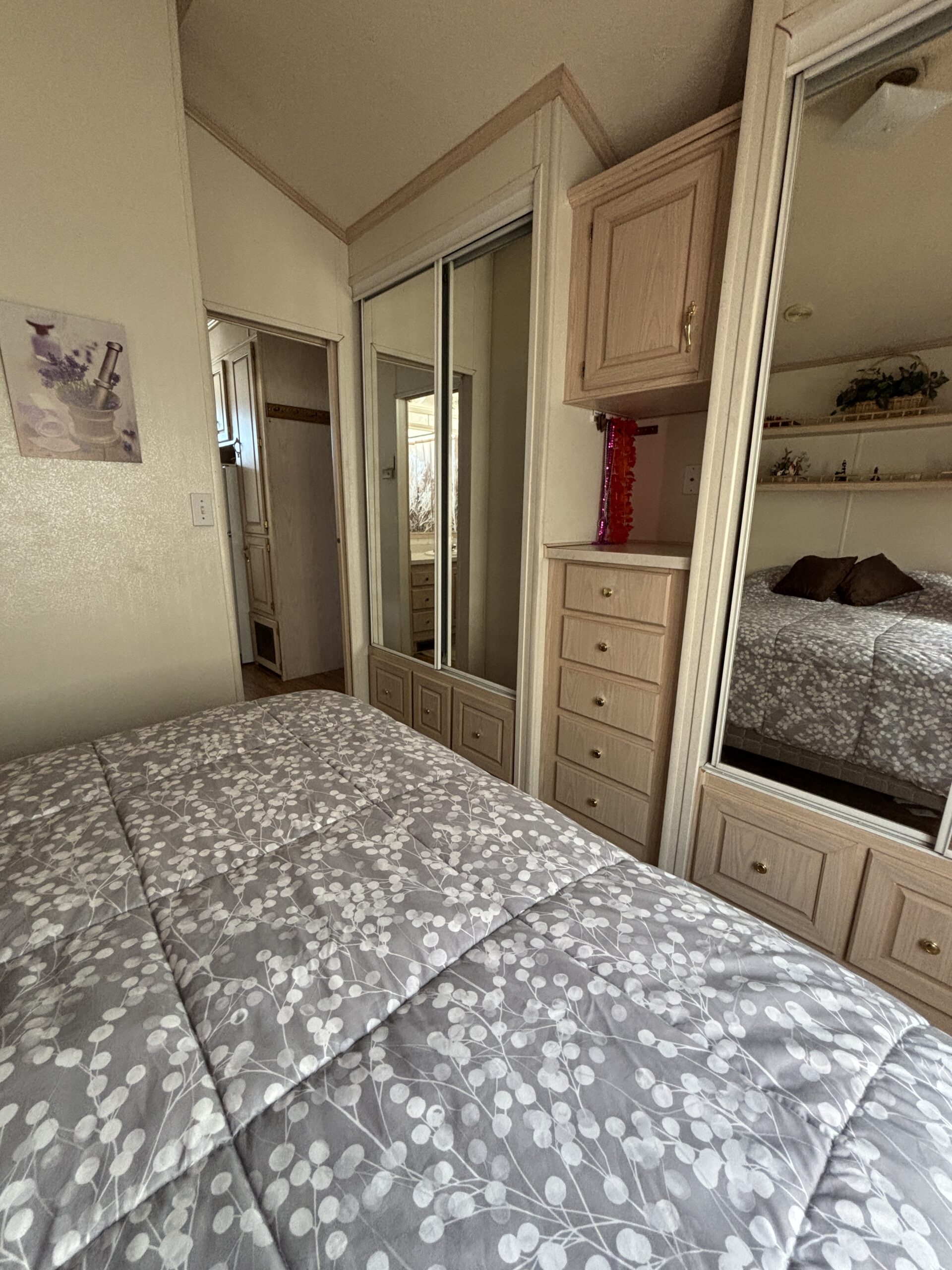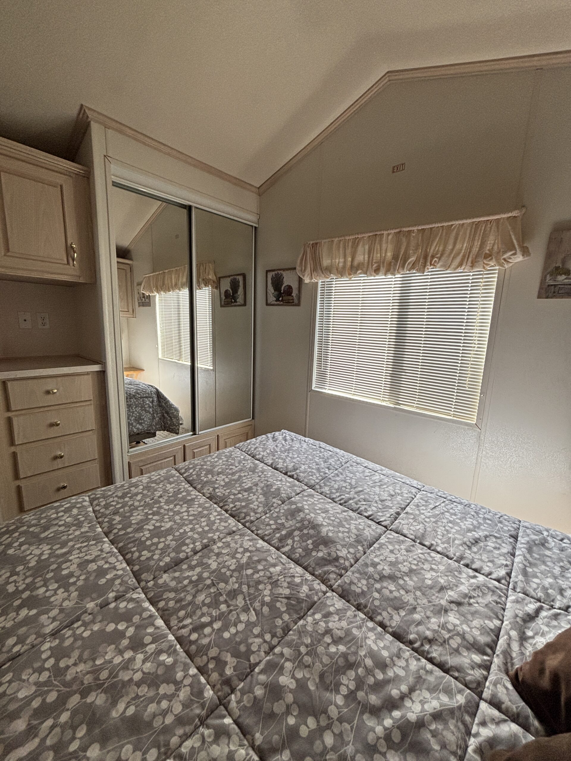 • King Bedroom w/Mirrored His and Hers Closet Doors, Built-In Dresser, & Built-In Upper Cabinets