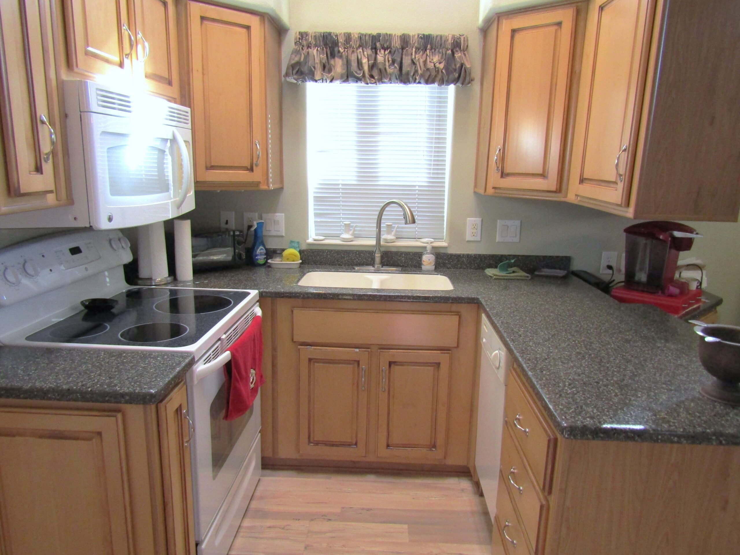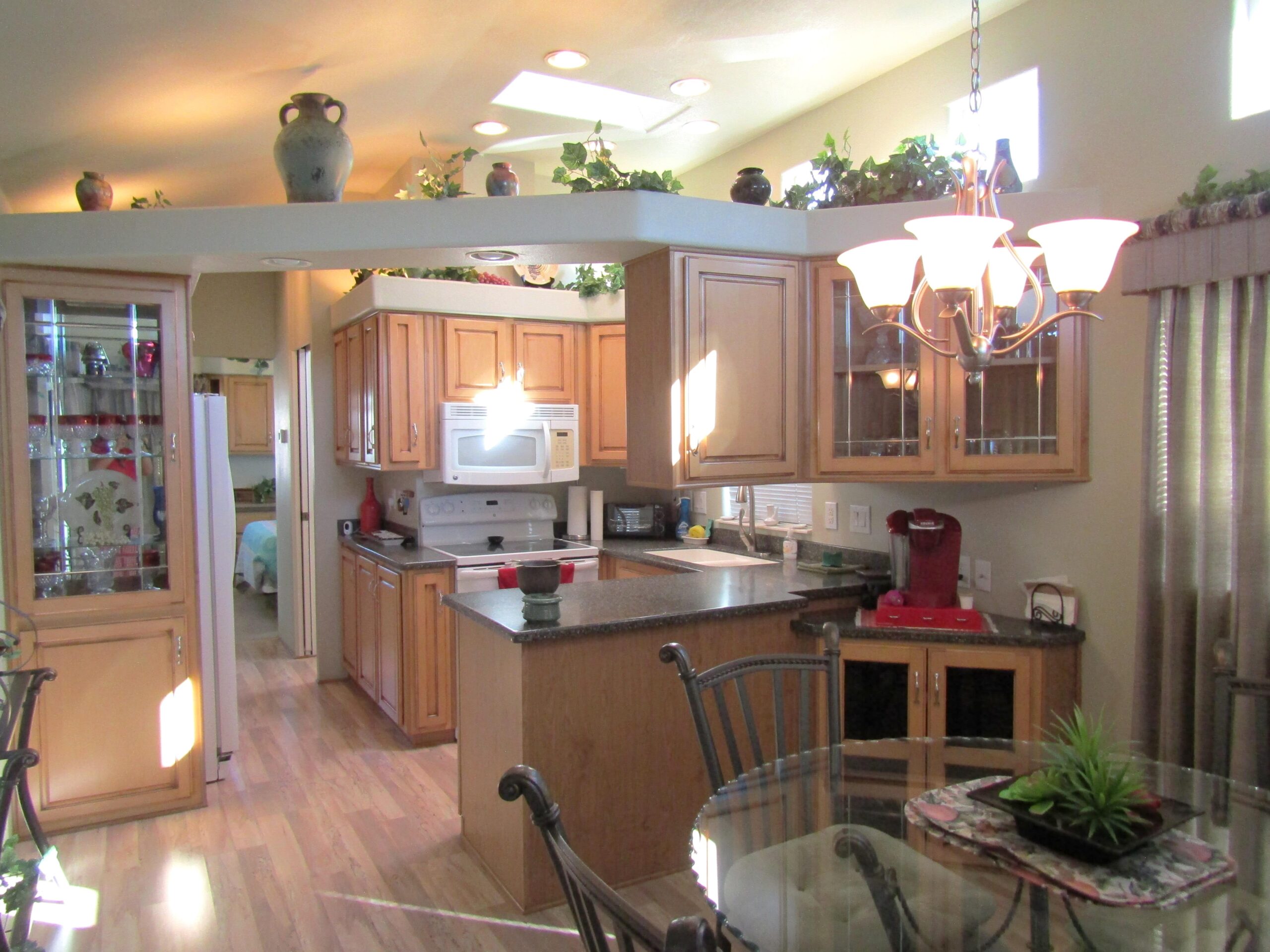 - U-Shape Kitchen w/Carousel Wrap Around Cabinets, Matching White Appliances, Dishwasher, Glass-Top Stove, Upper Shelving, & Extra Cabinets, Newer Fridge, & Skylight
