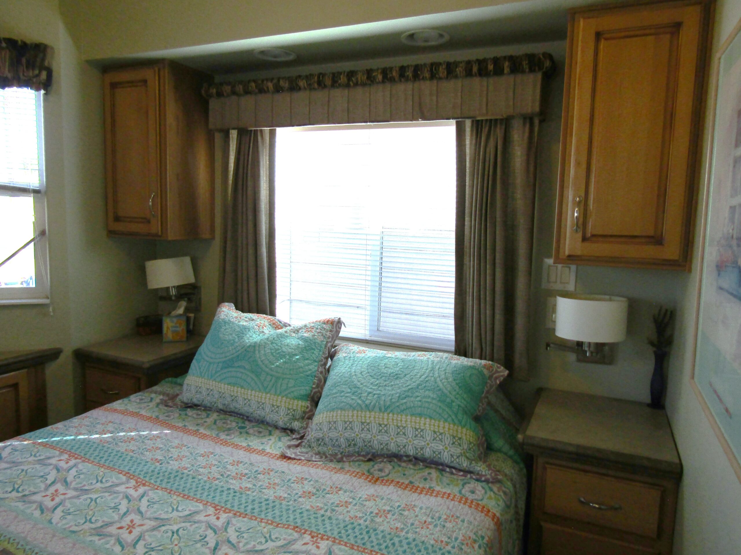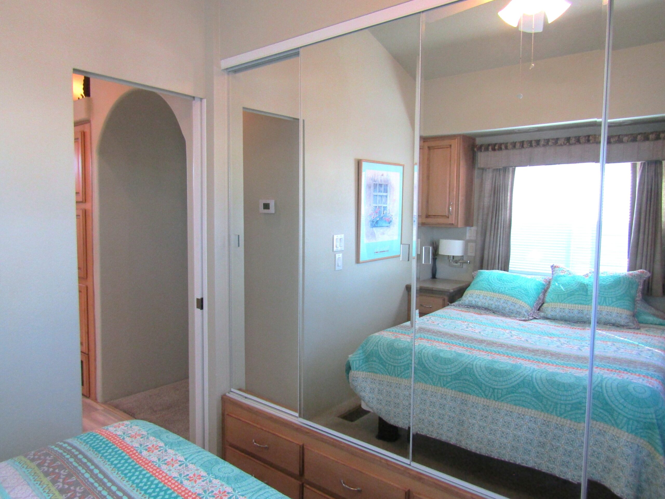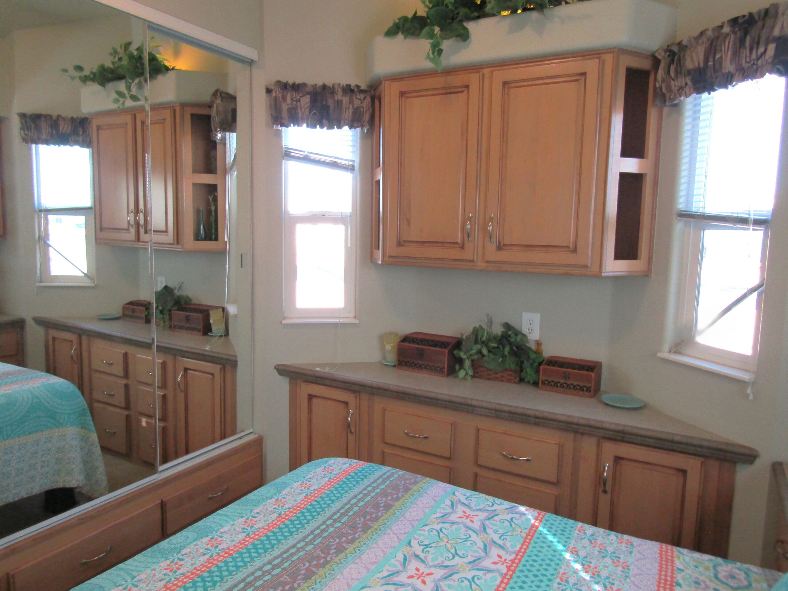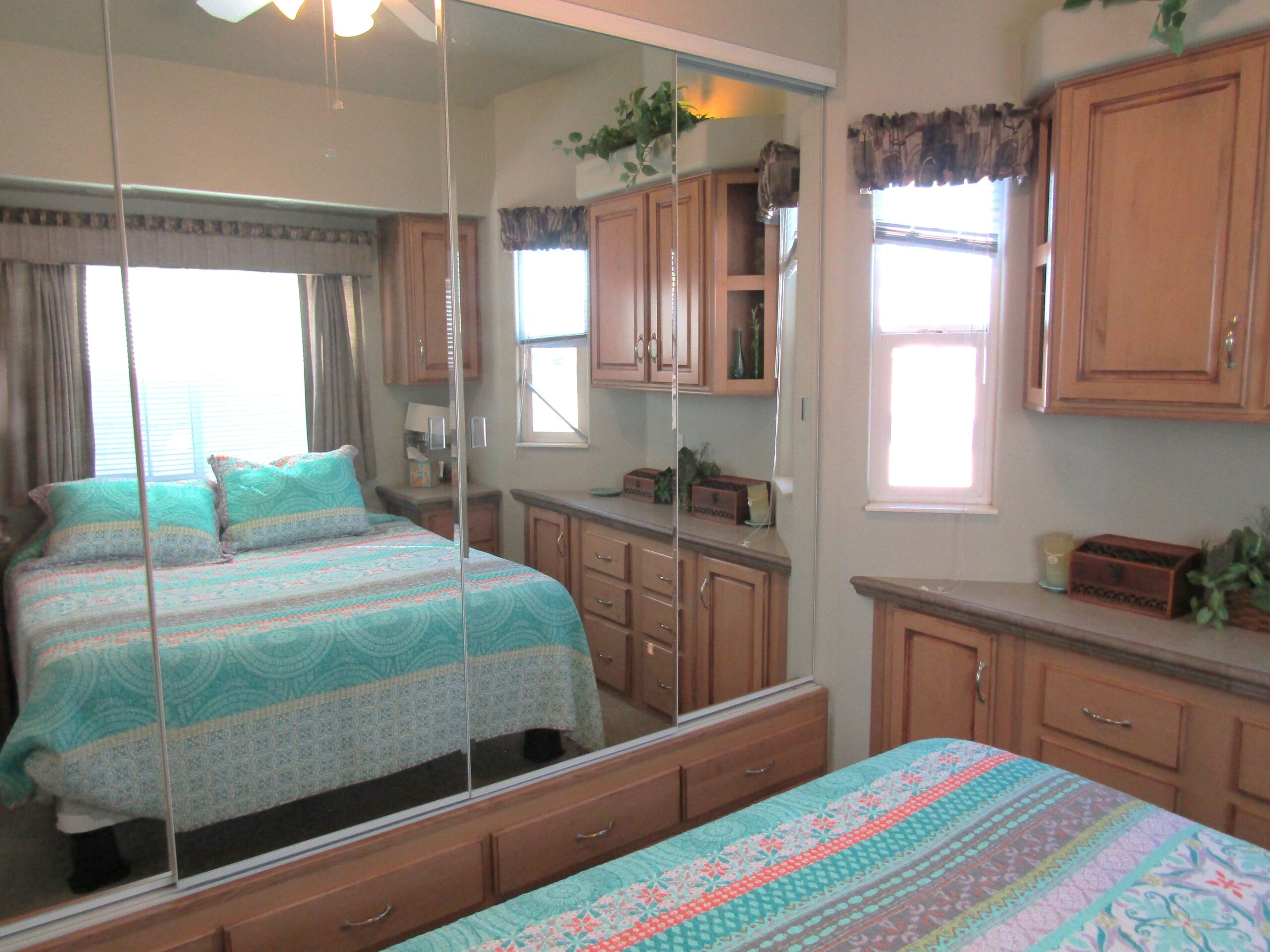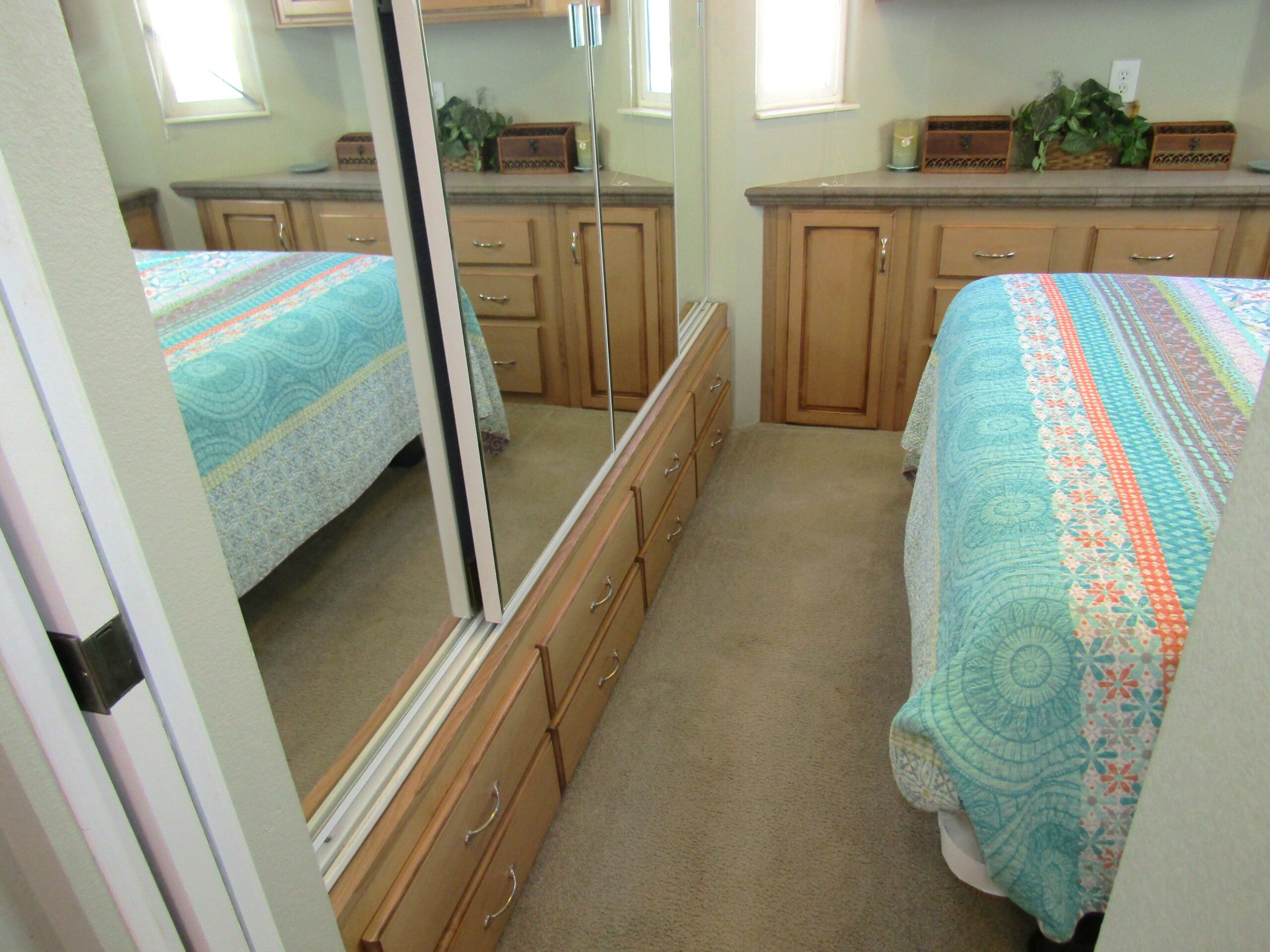 - Carpeted Queen Bedroom w/Double Full Mirrored Closet, Built-In Dresser/Cabinets/Drawers