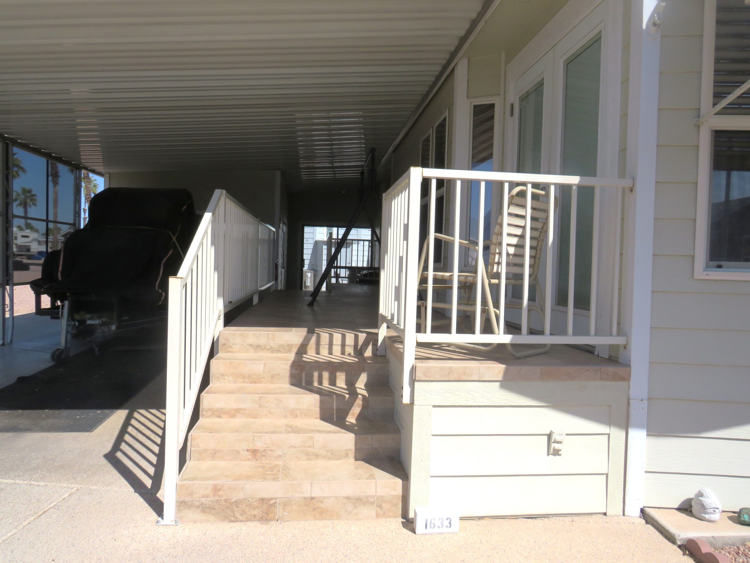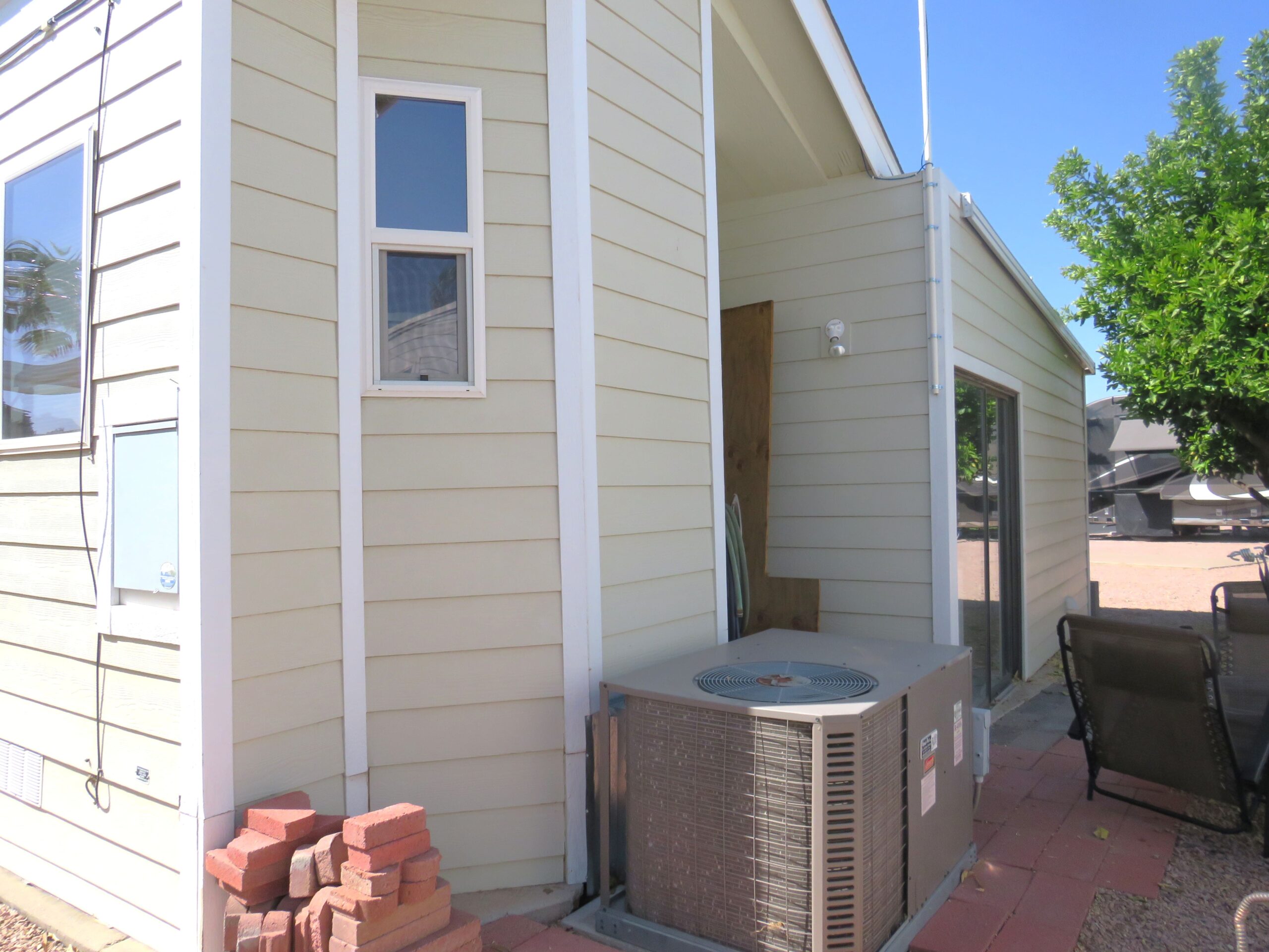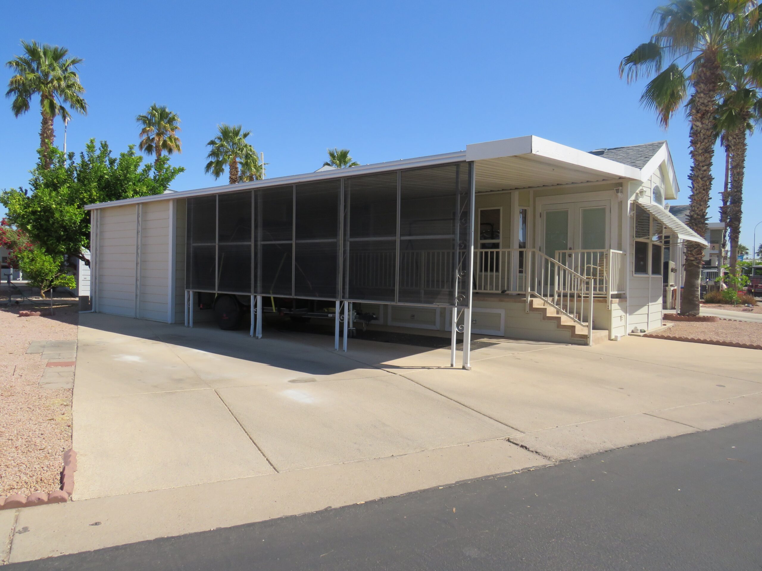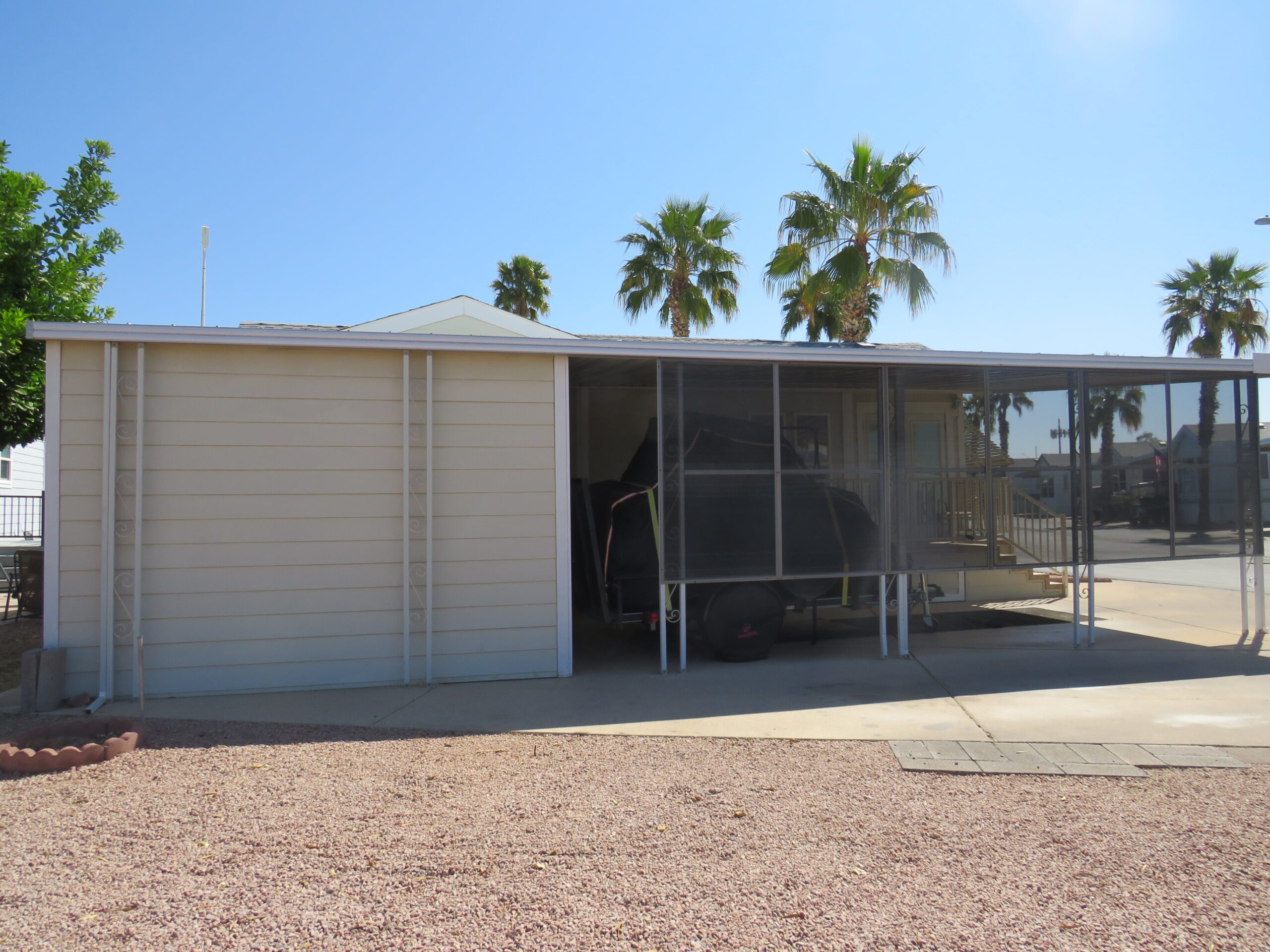 - Large Patio/Driveway (Room to Park 3 Vehicles), Back Enclosed Sliding Door, Privacy Screens in Front & Sides, Patio Fridge & Freezer, Internet Modem