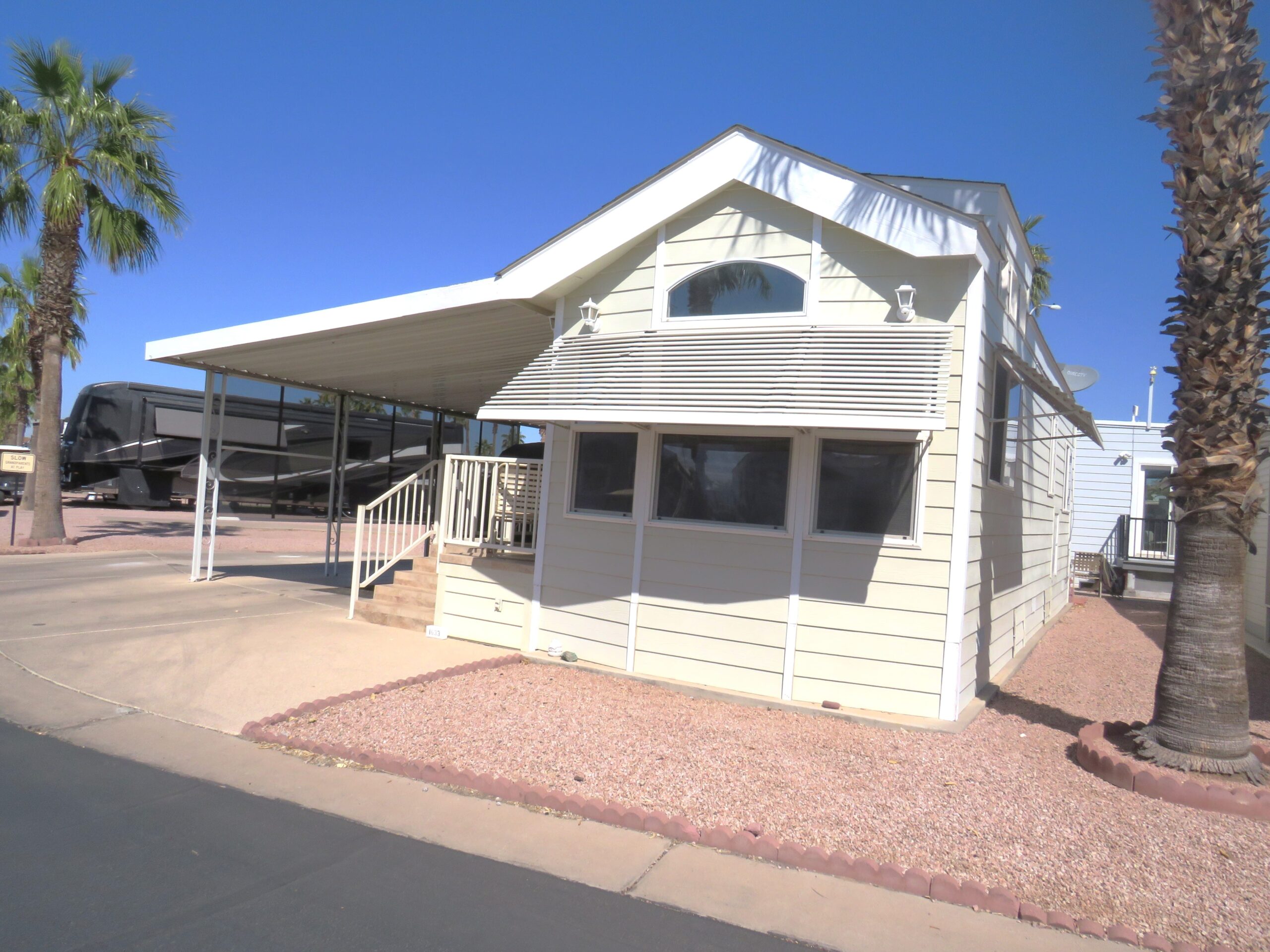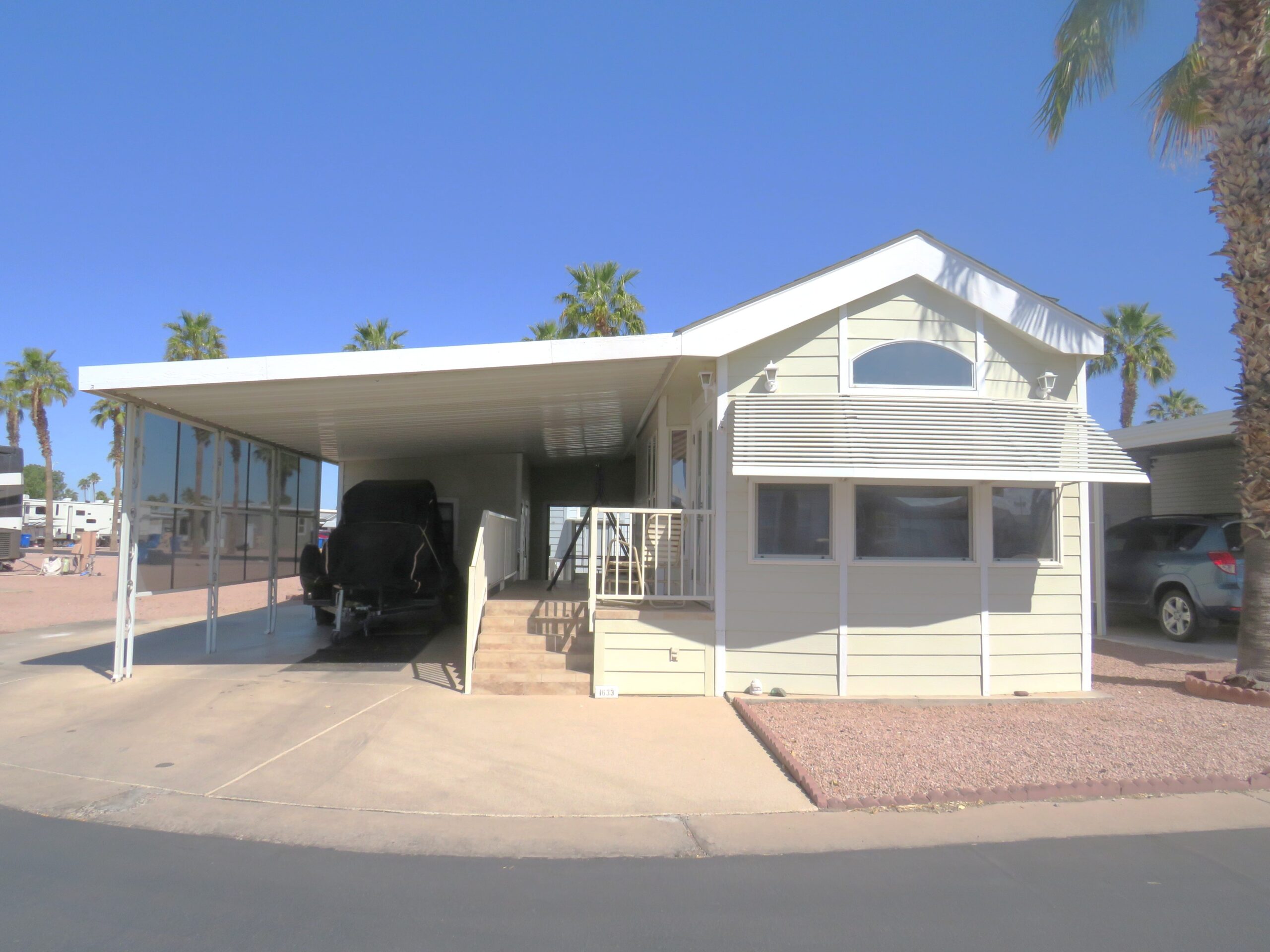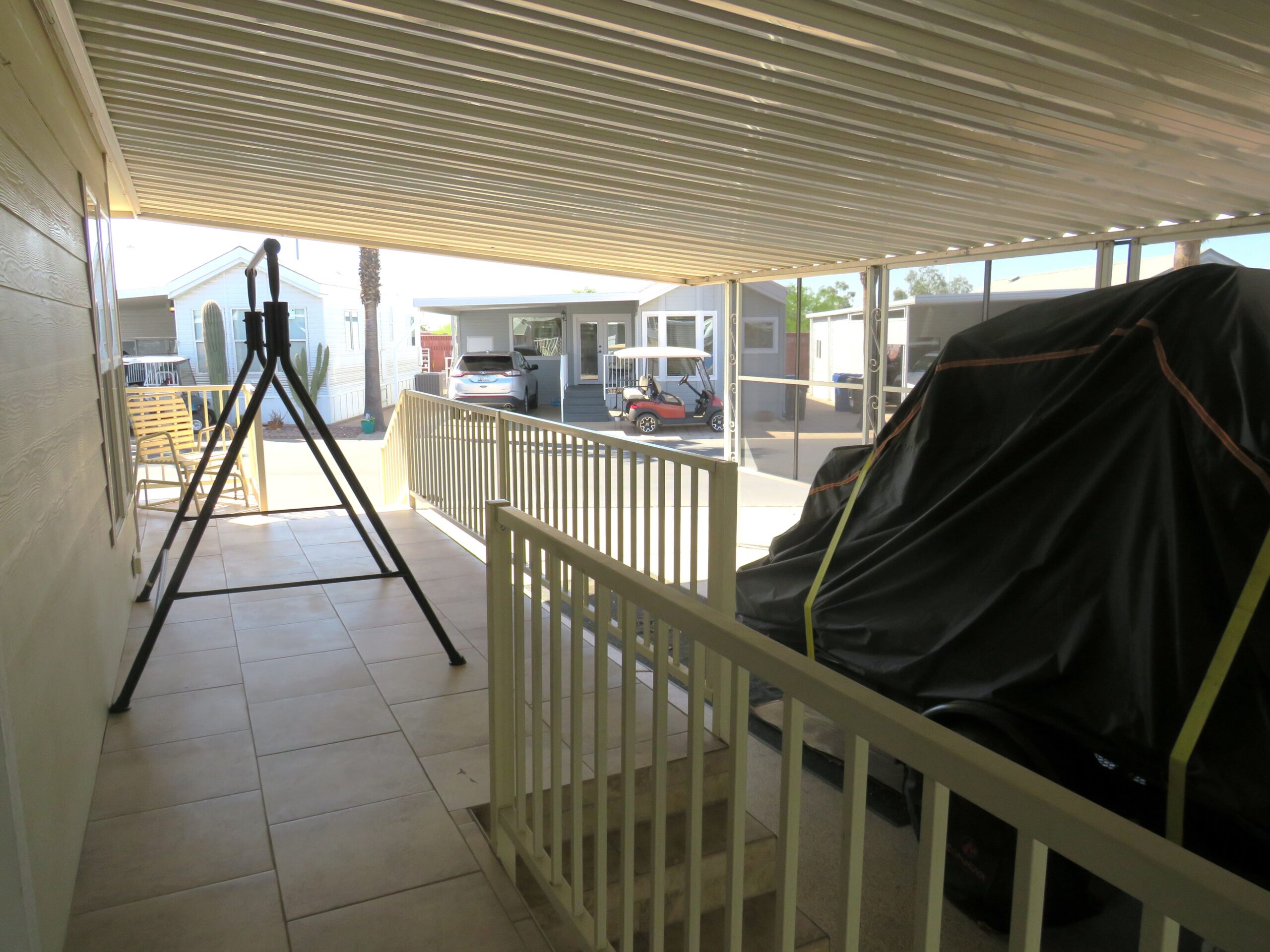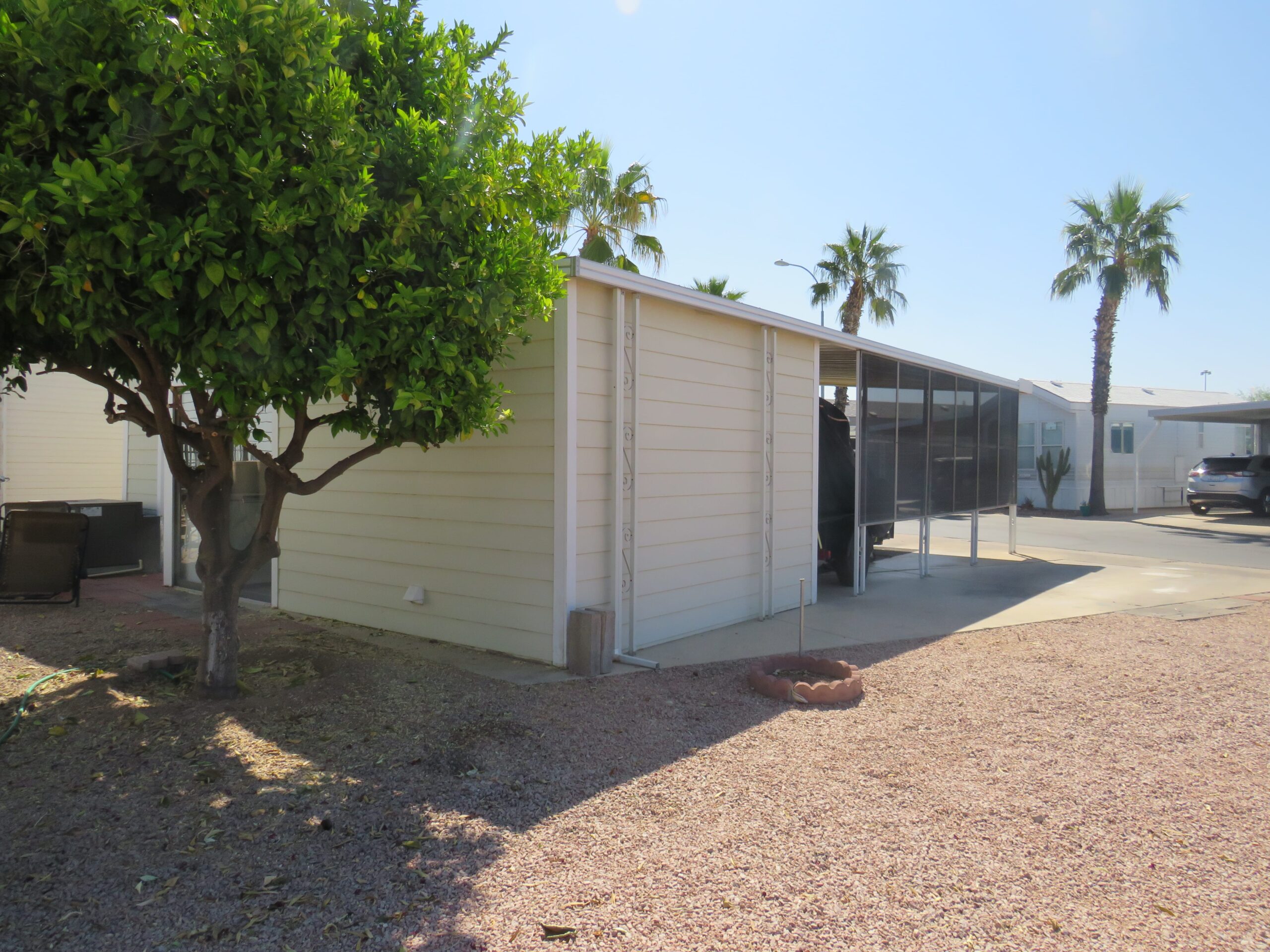 - Large Patio/Driveway (Room to Park 3 Vehicles), Back Enclosed Sliding Door, Privacy Screens in Front & Sides, Patio Fridge & Freezer, Internet Modem