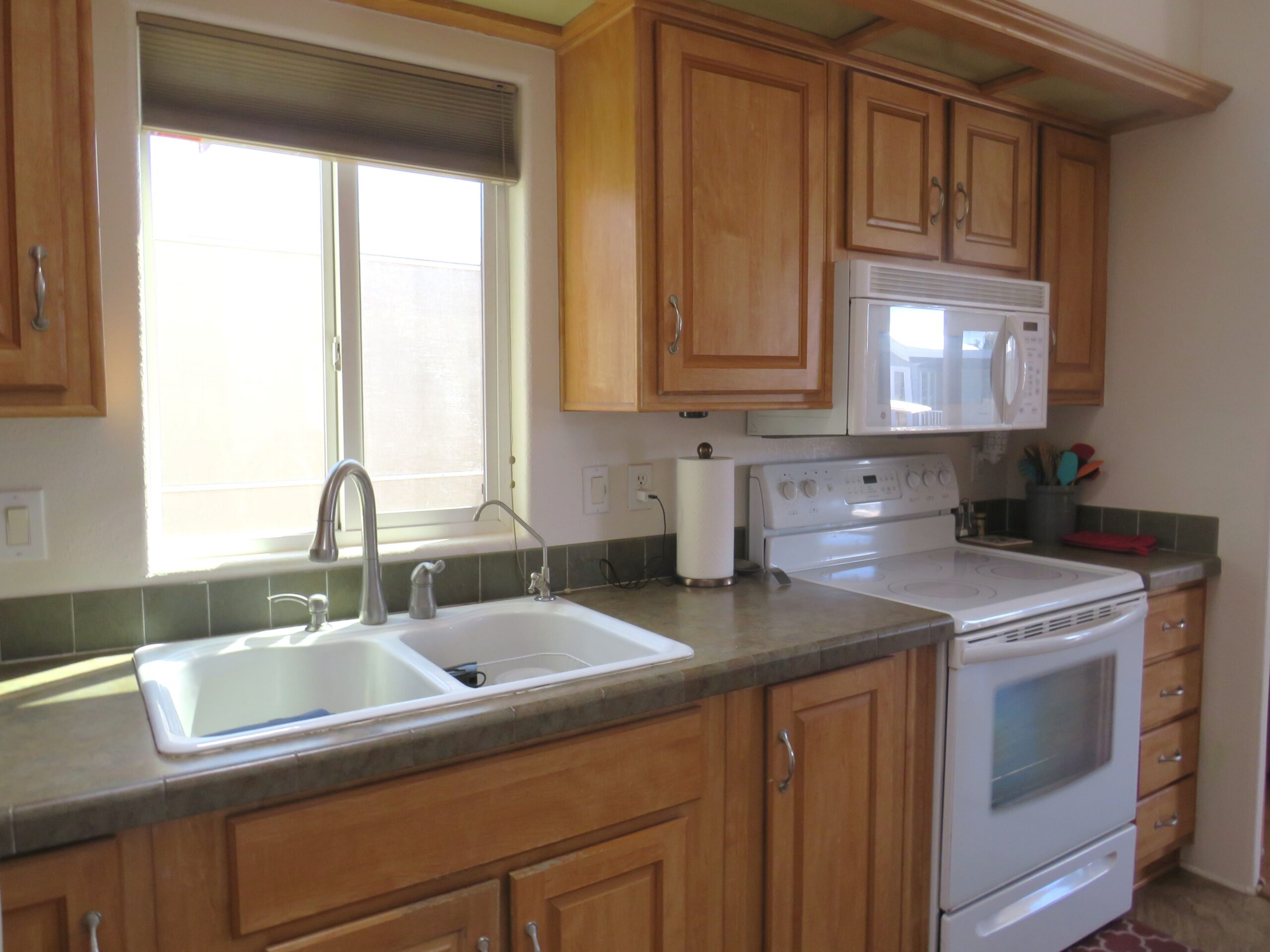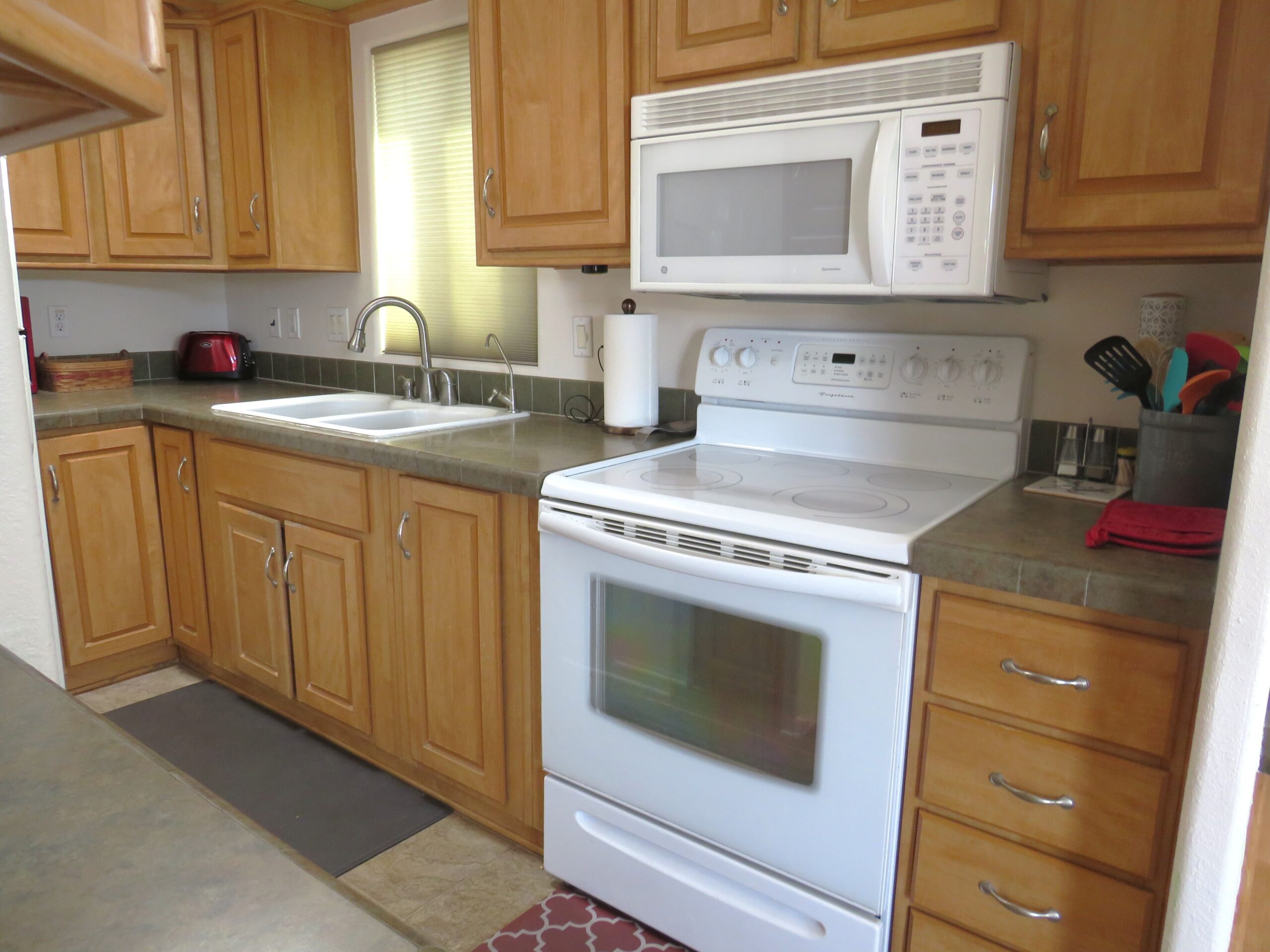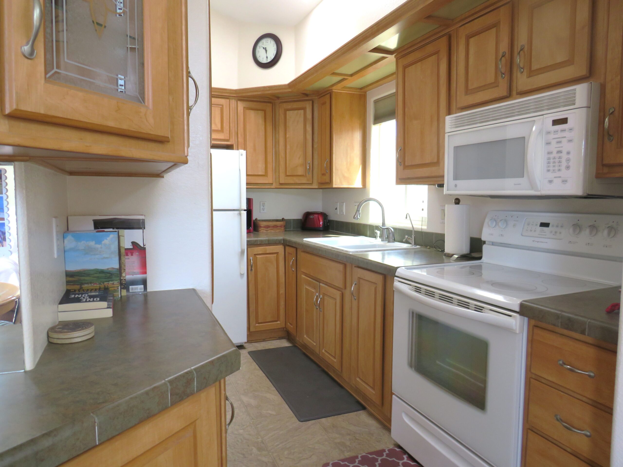 - Carousel Wrap Around Kitchen w/Updated Faucet, Newer Glass-Top Stove, All Matching White Appliances, & Skylight