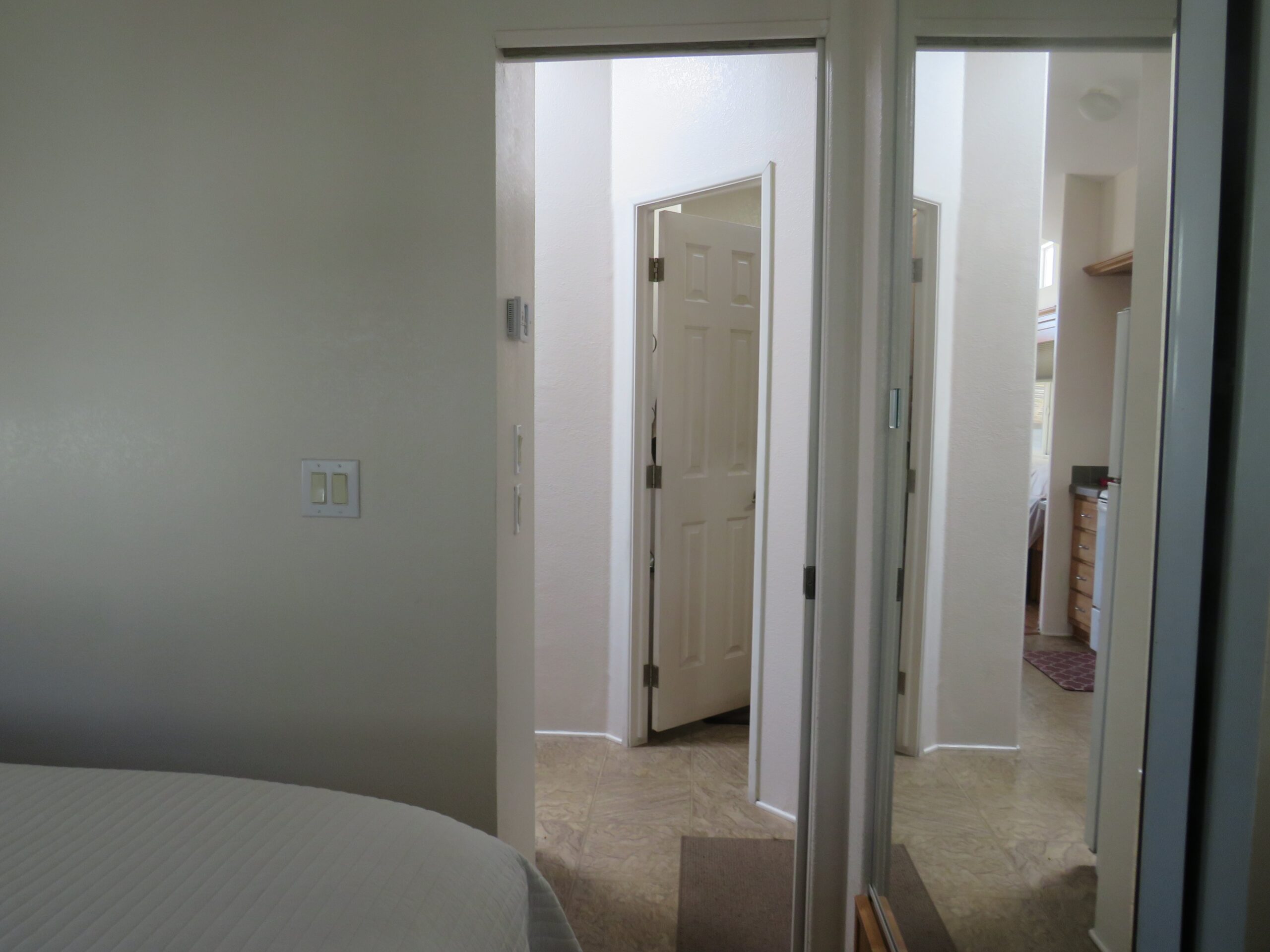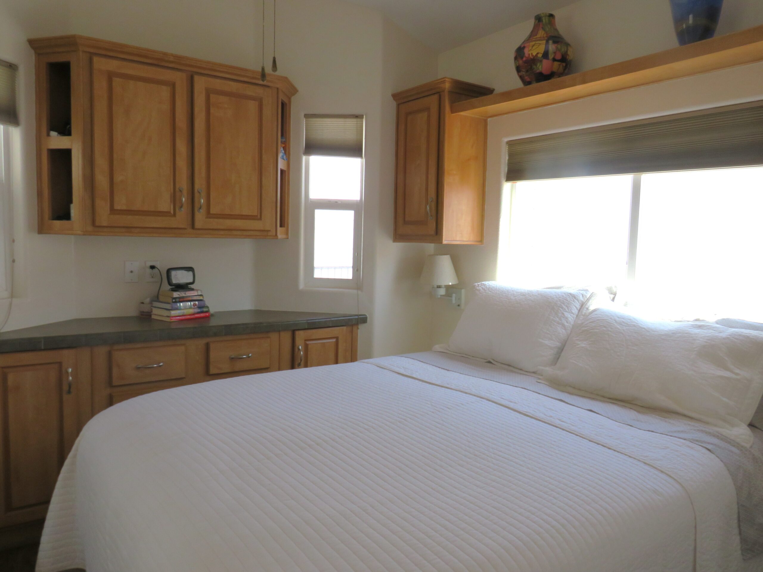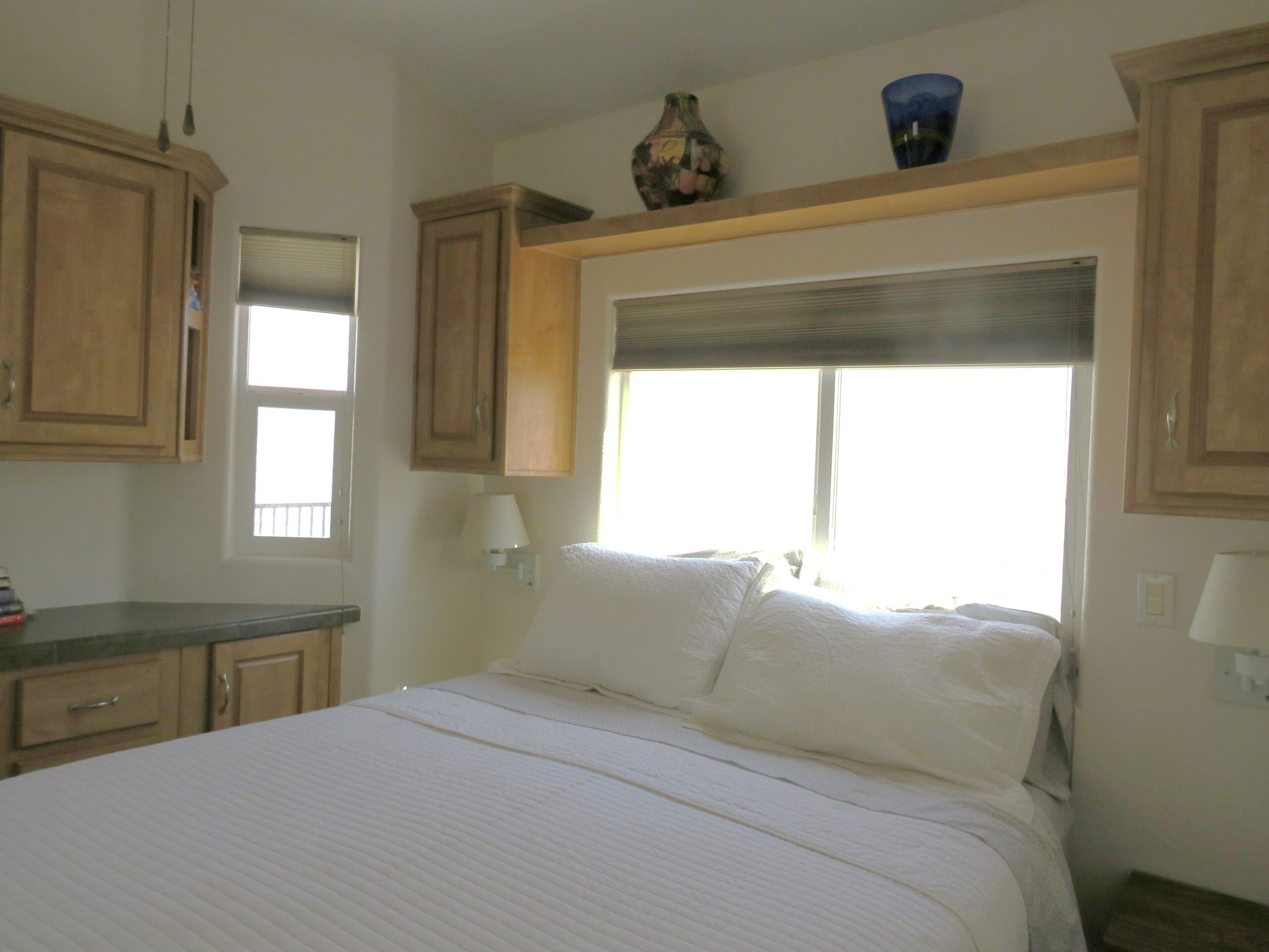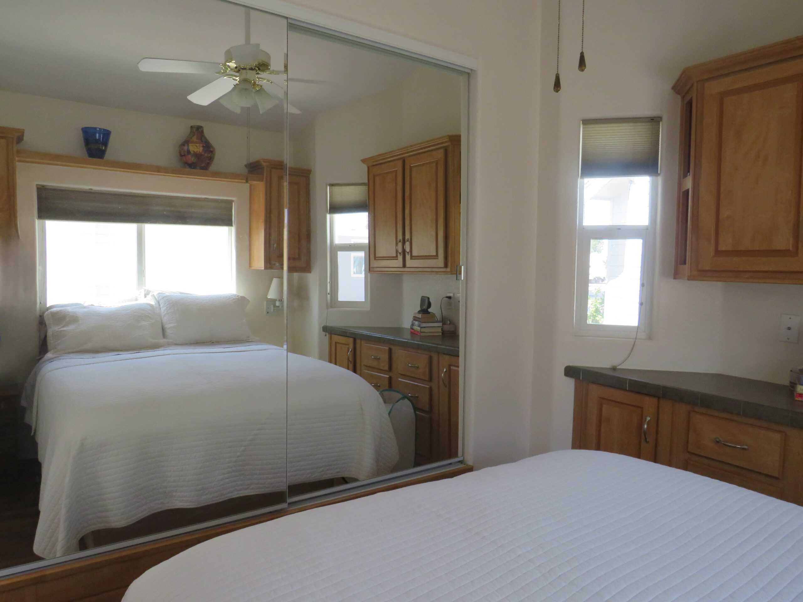 - King Bedroom w/Queen Bed, Large Mirrored Closet, Built-In Dresser, & Upper Cabinets