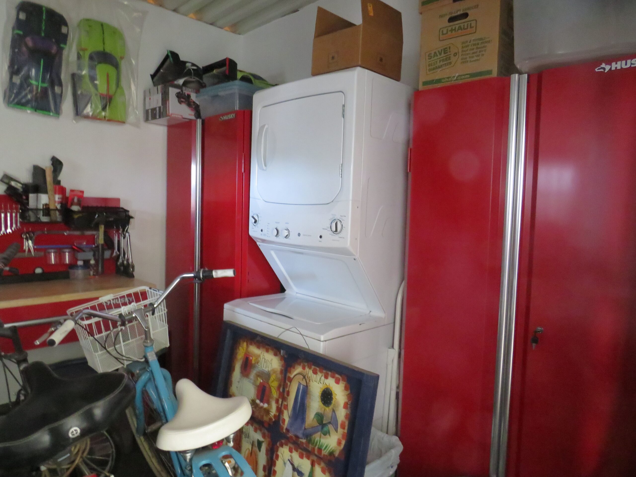 - Finished Shed w/Stackable Laundry, Work Shop/Bench