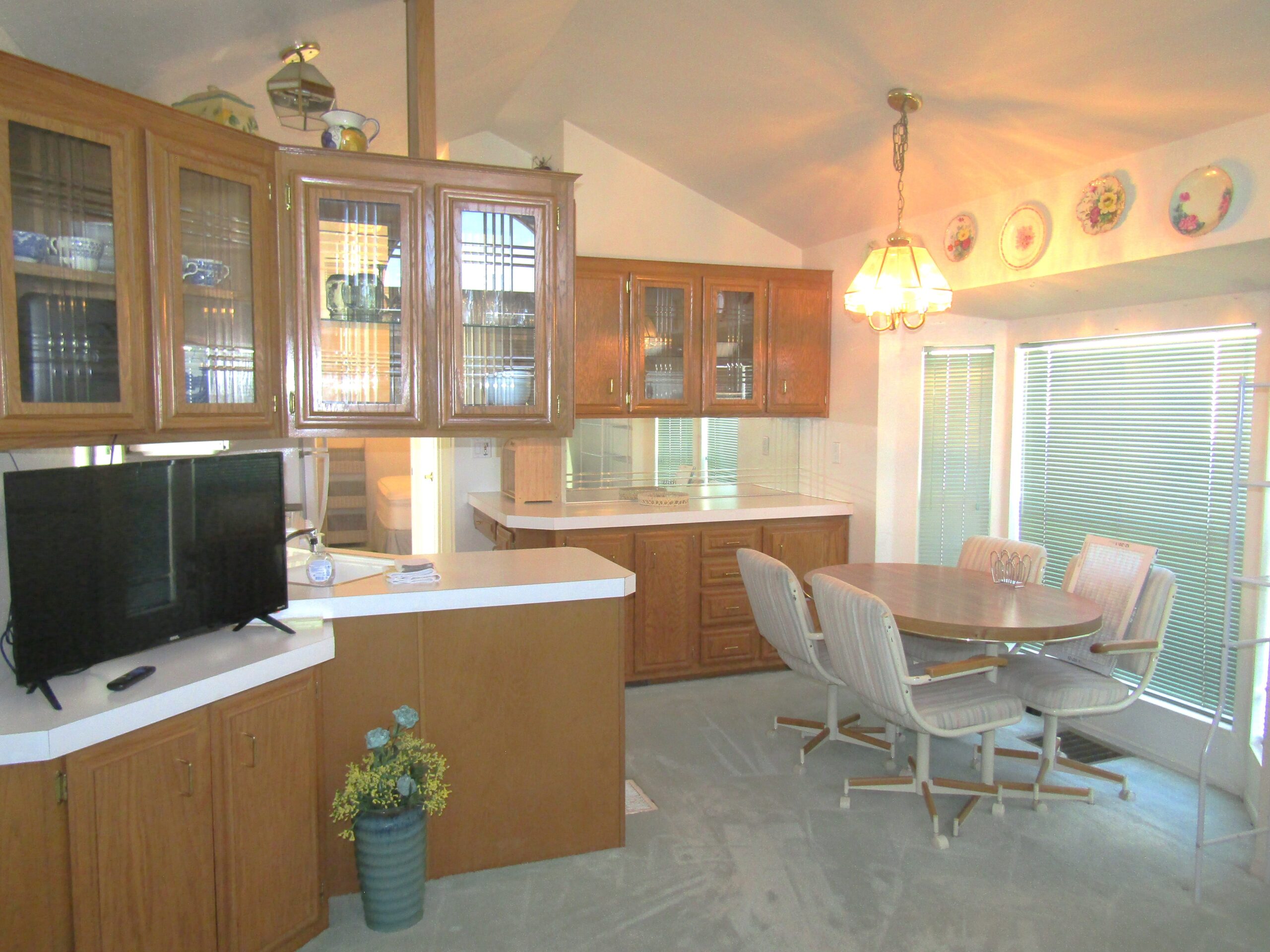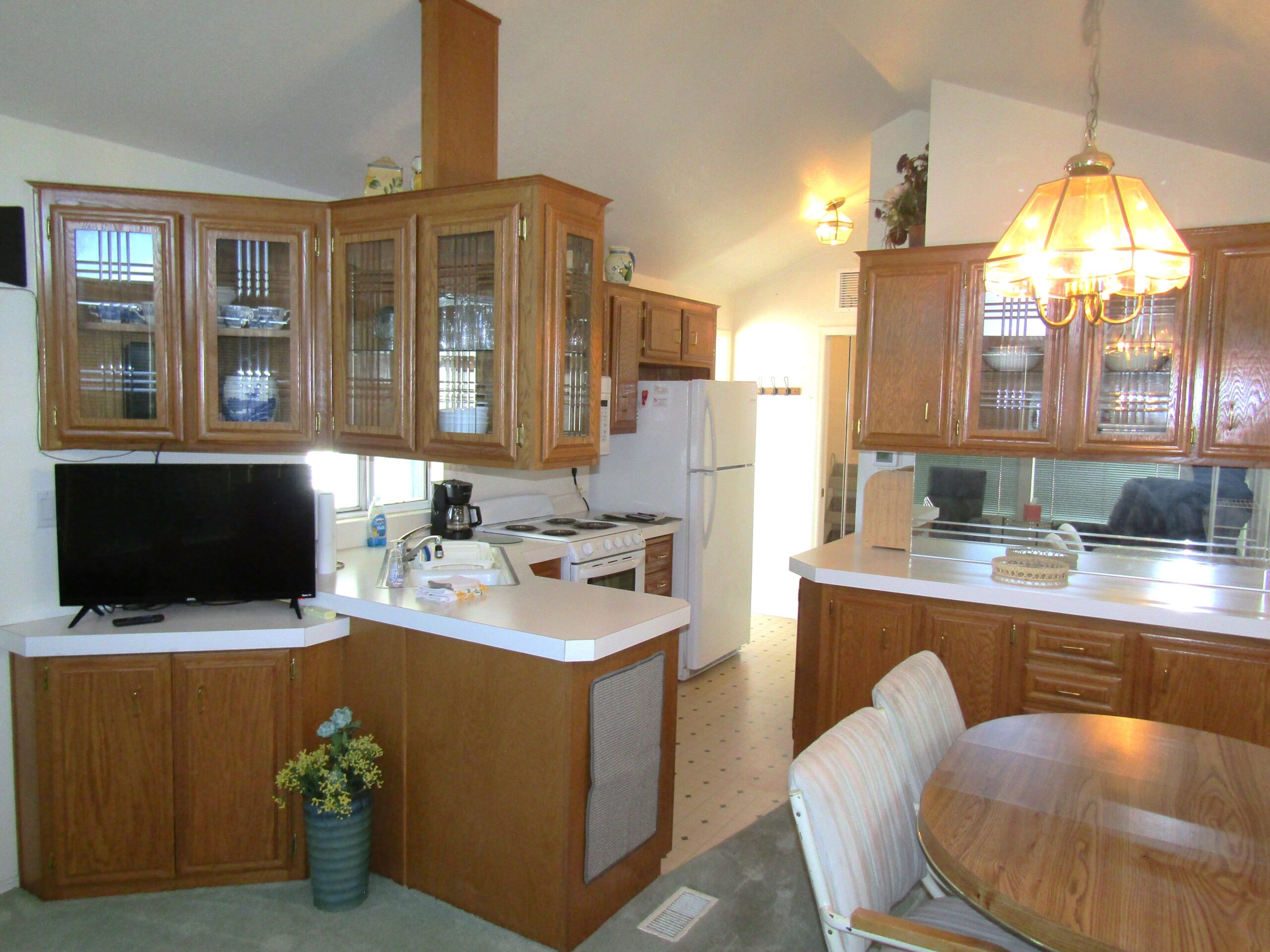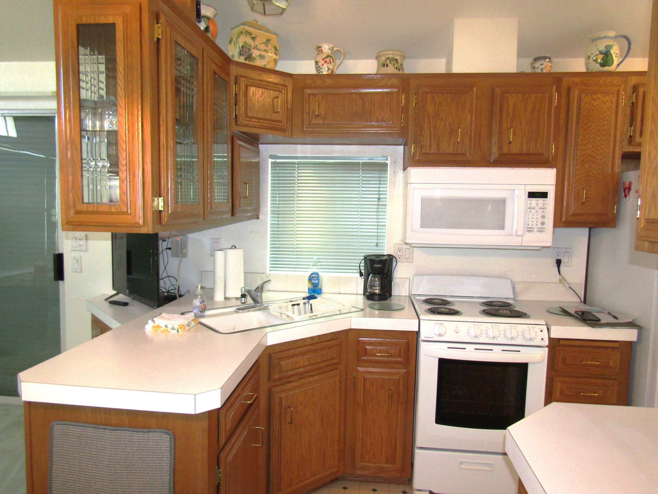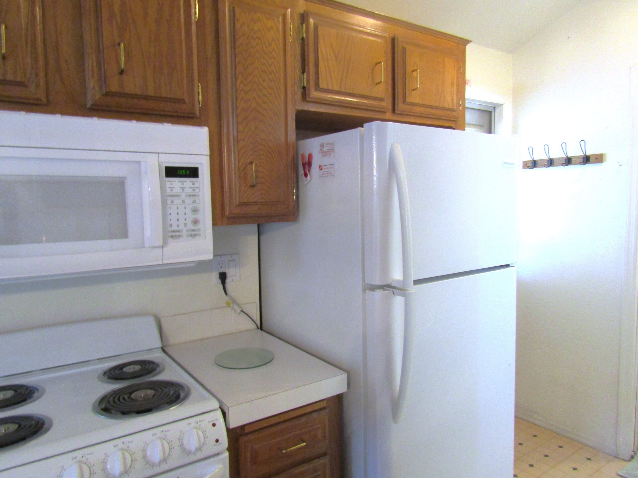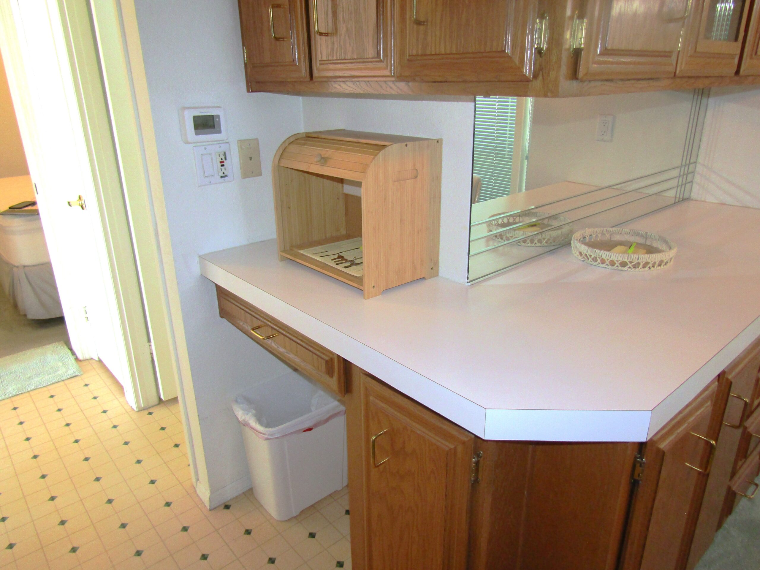 - Kitchen w/Real Oak Carousel Cabinets, Vinyl Flooring, Disposal, Newer White Appliances