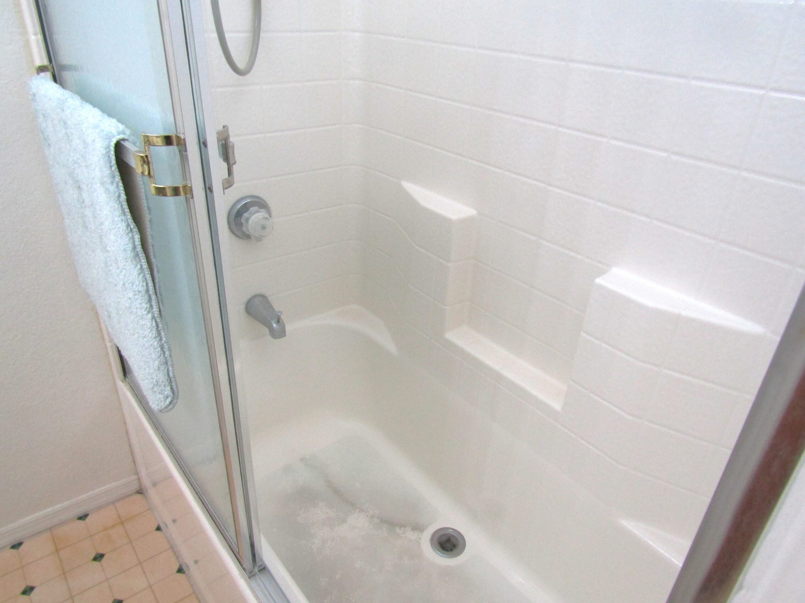 - Bathroom w/Large Mirrored Medicine Cabinet, Vinyl Floor, & Shower/Tub Combo