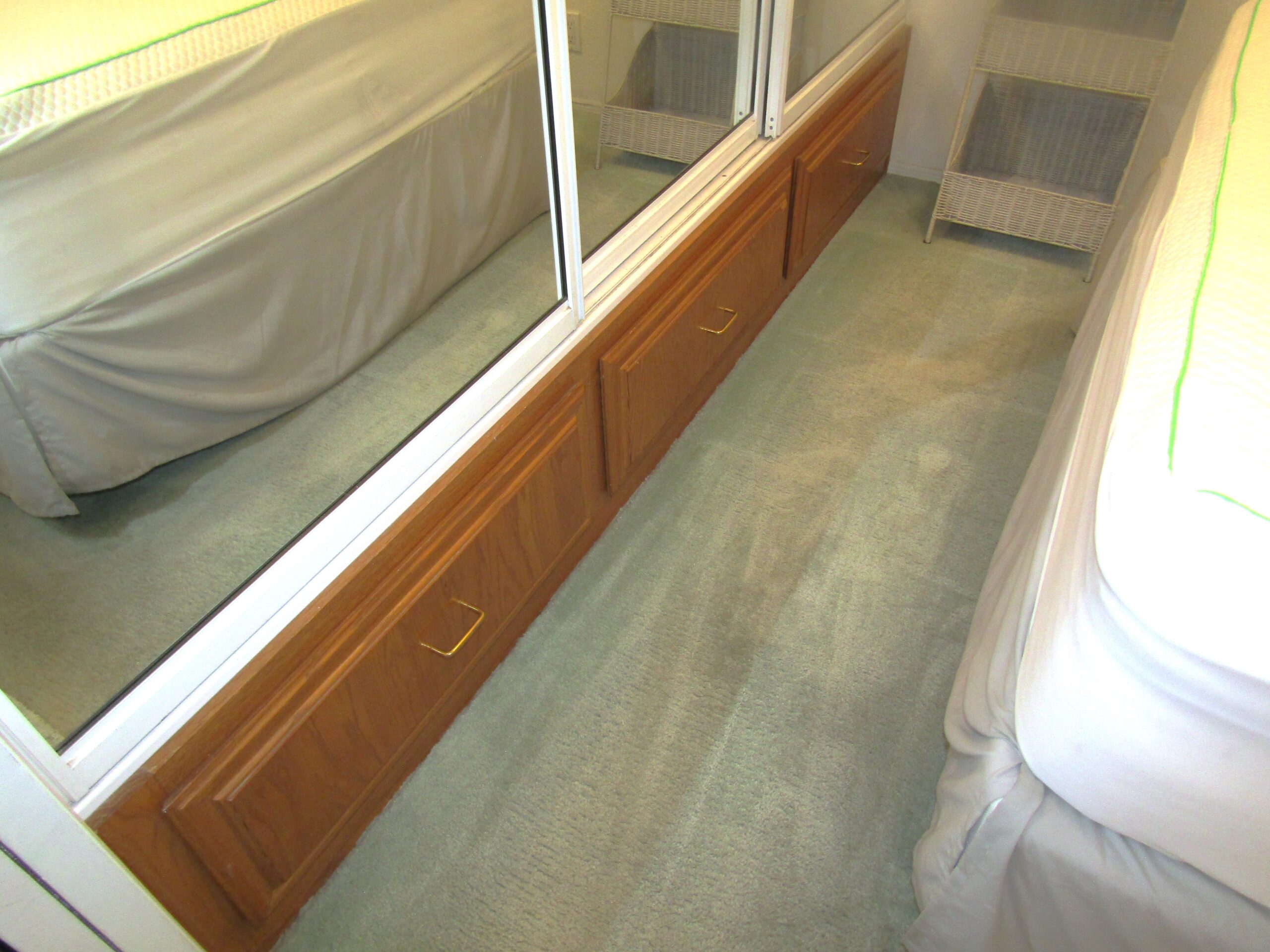- Carpeted Queen Bedroom w/Full Triple Mirrored Closet, & Built-In Dresser/Cabinets/Drawers