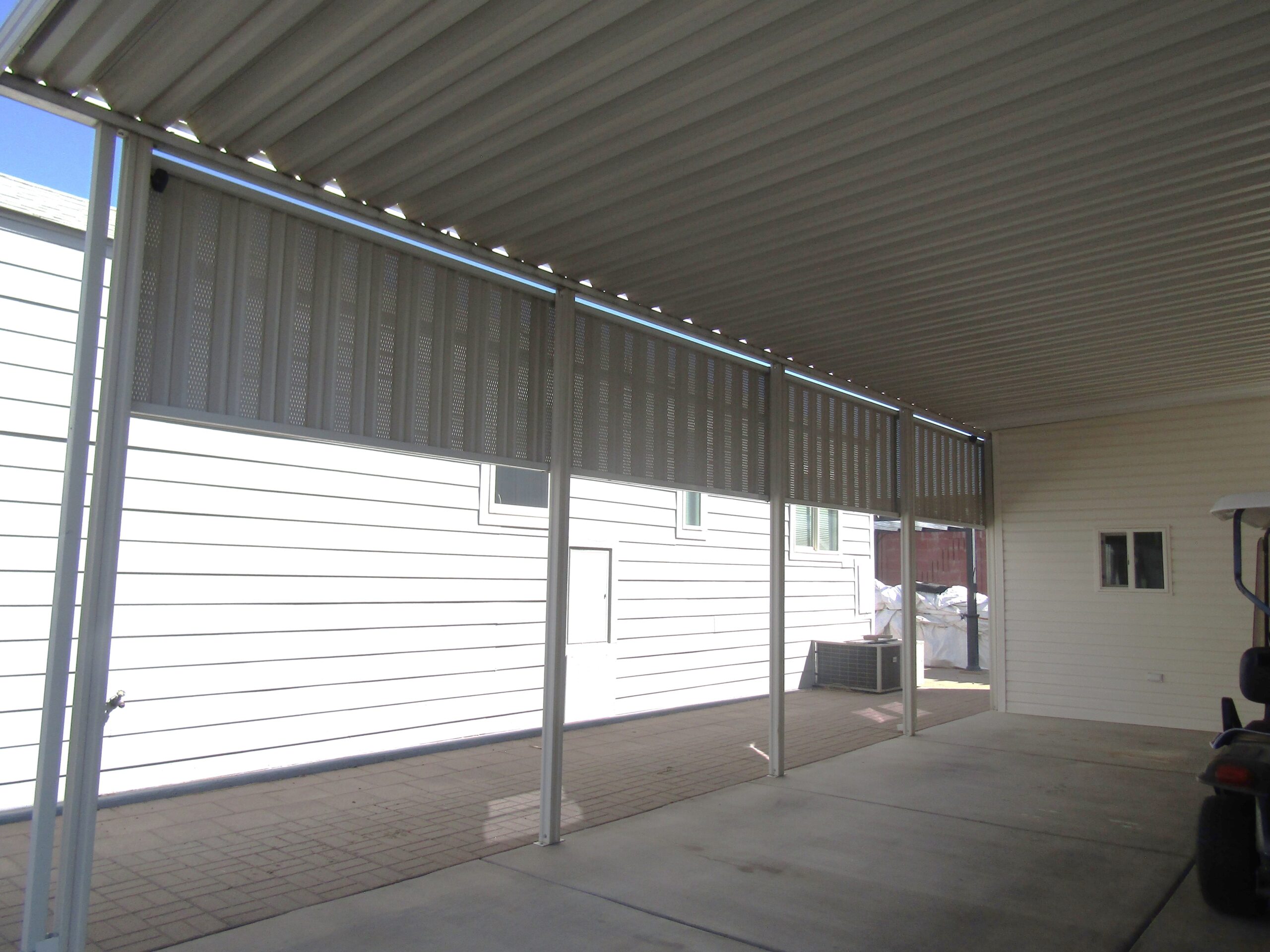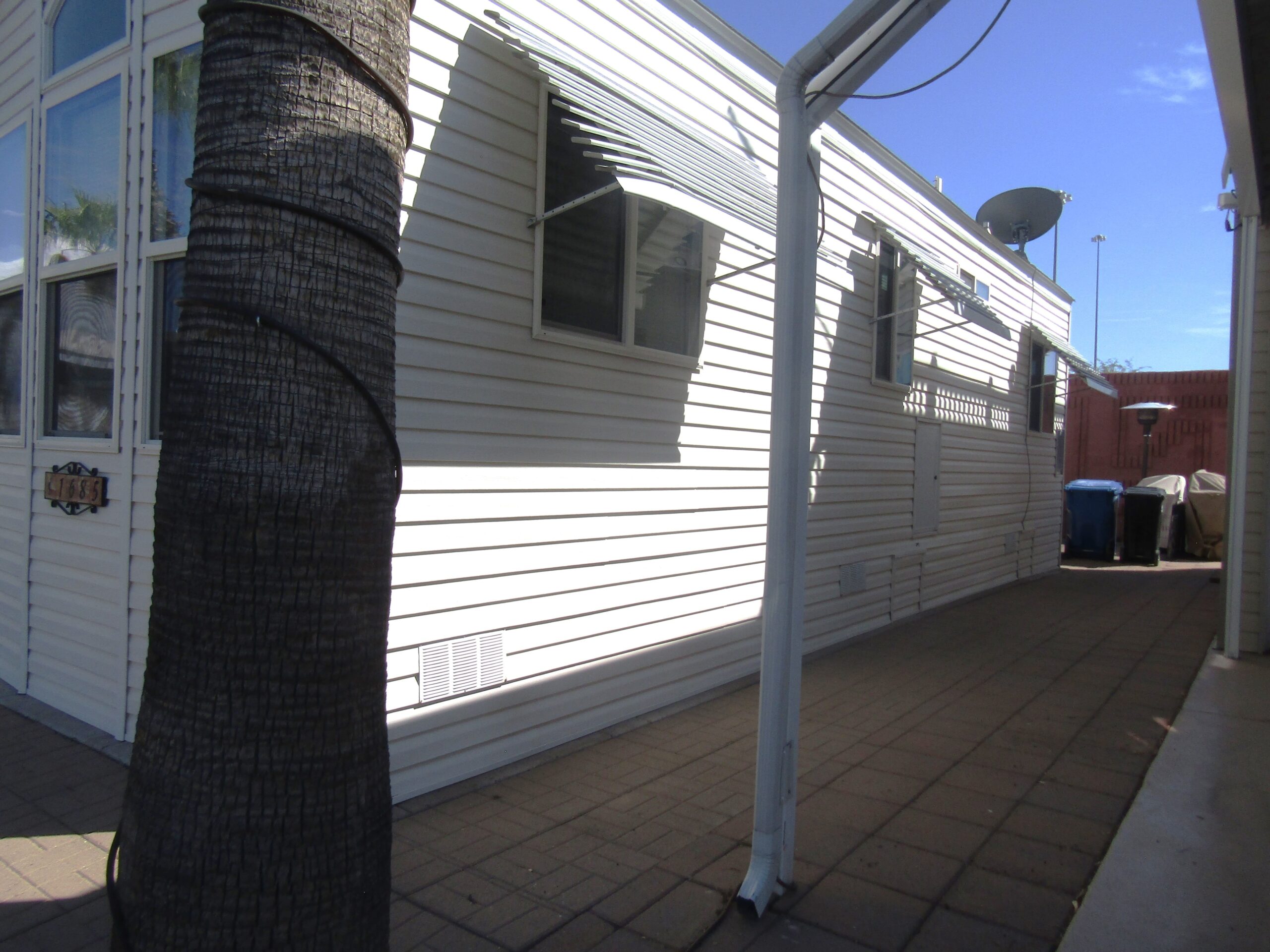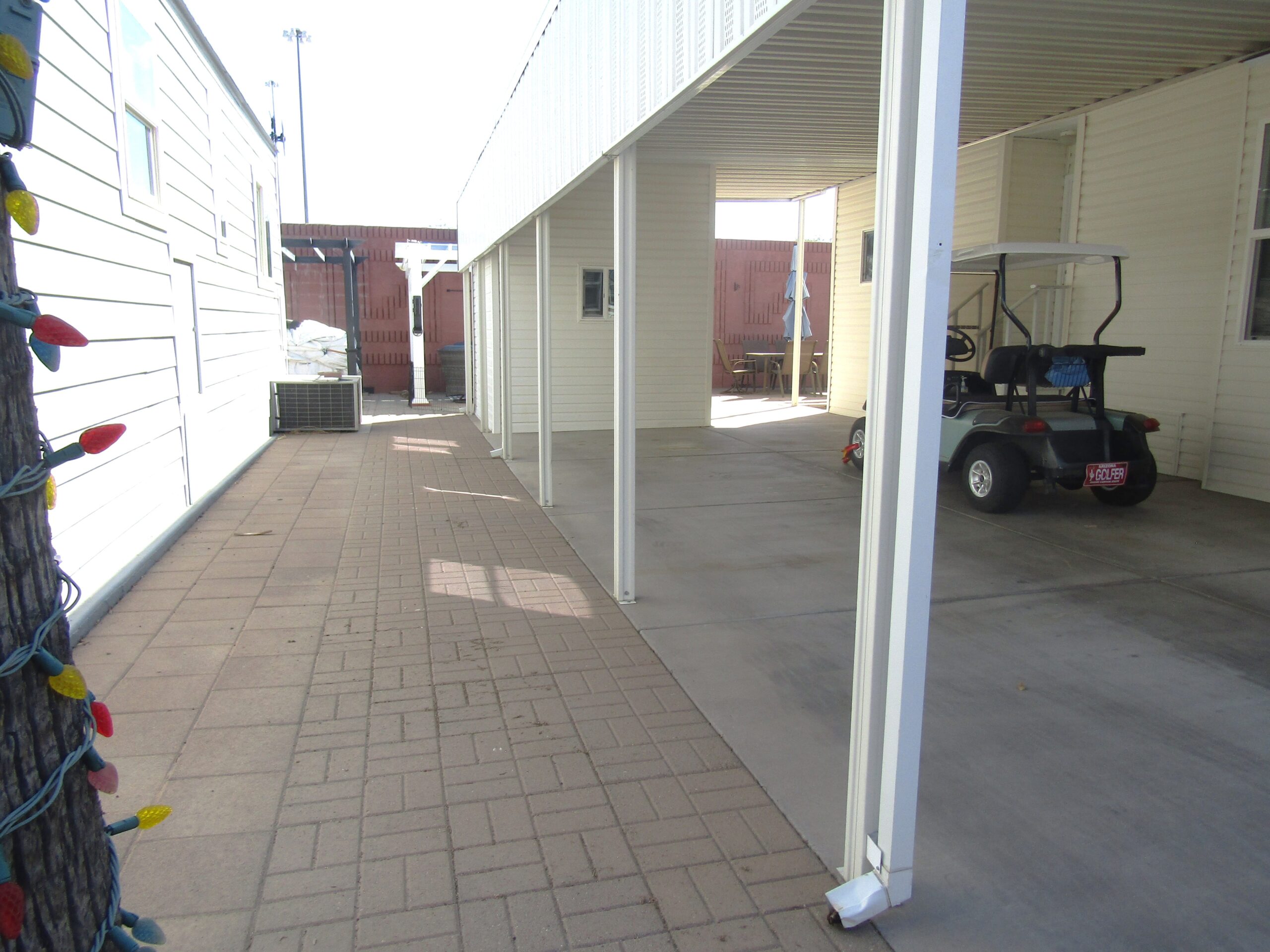• Patio Pavers All Around, Partial Awnings/Sunscreens in Carport, & Window Awnings on West Side