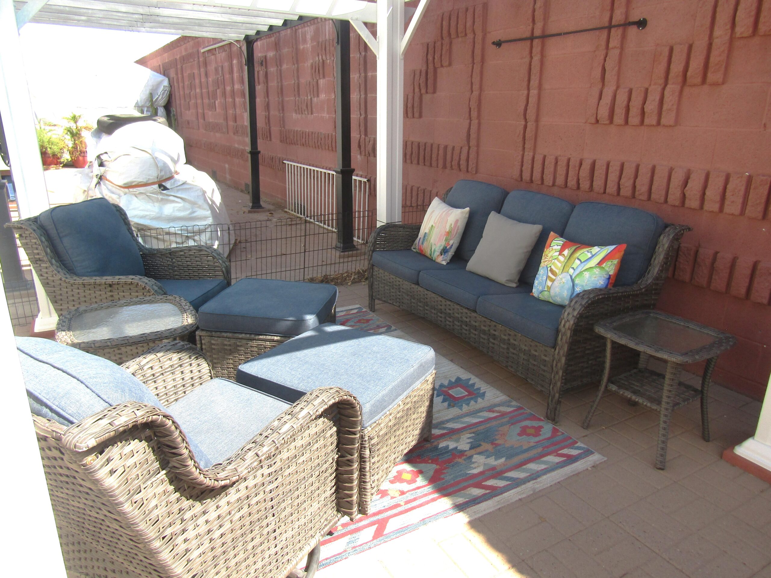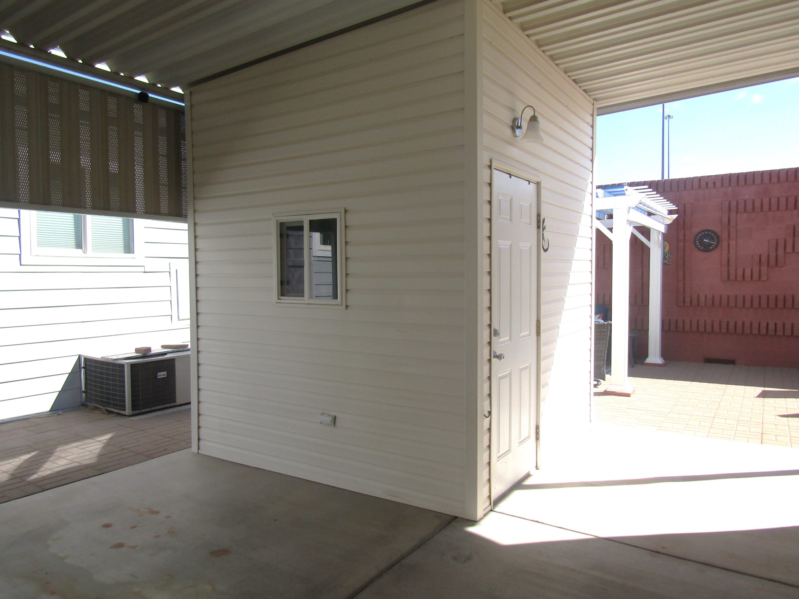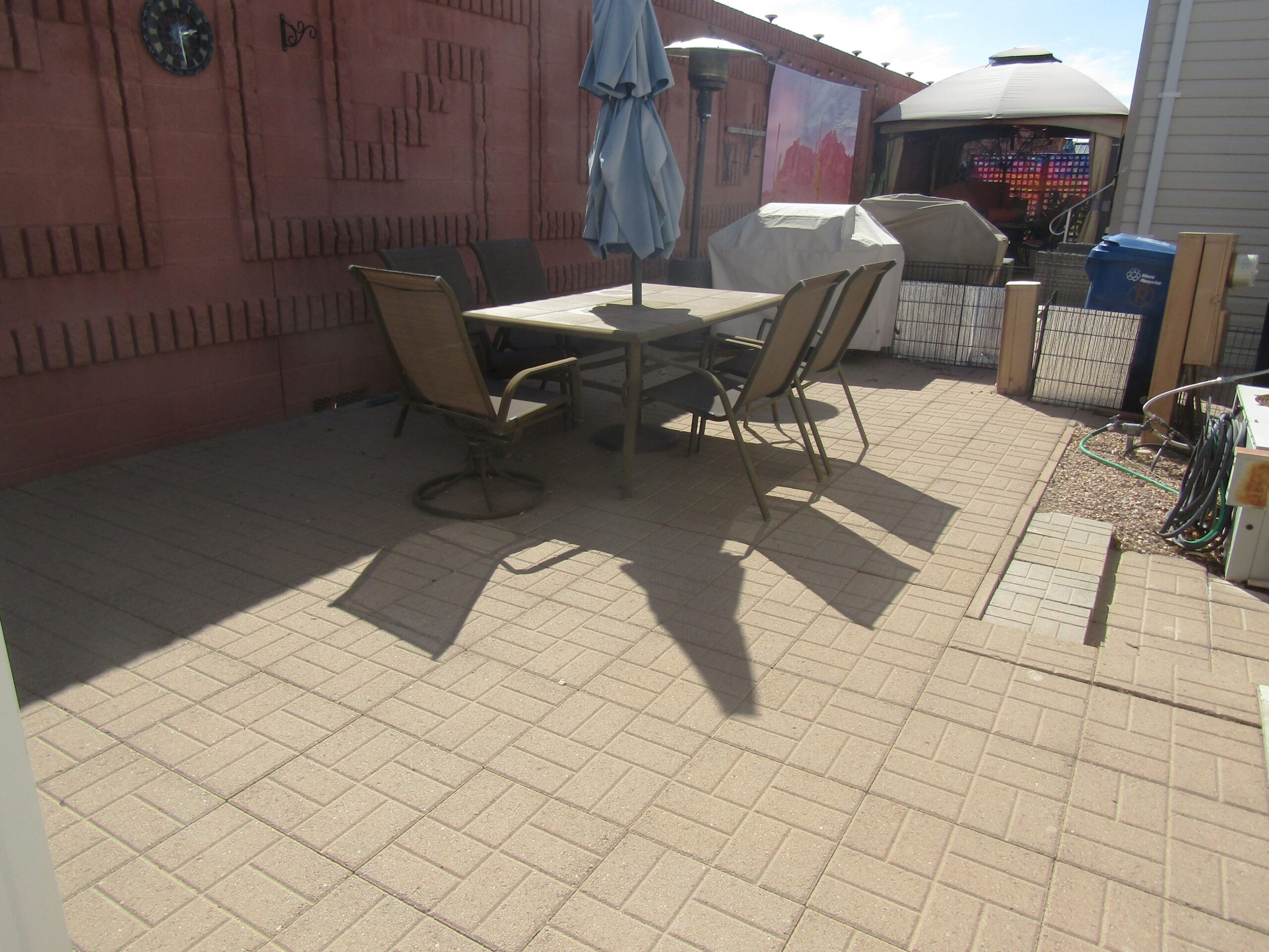 • Patio Pavers All Around, Partial Awnings/Sunscreens in Carport, & Window Awnings on West Side