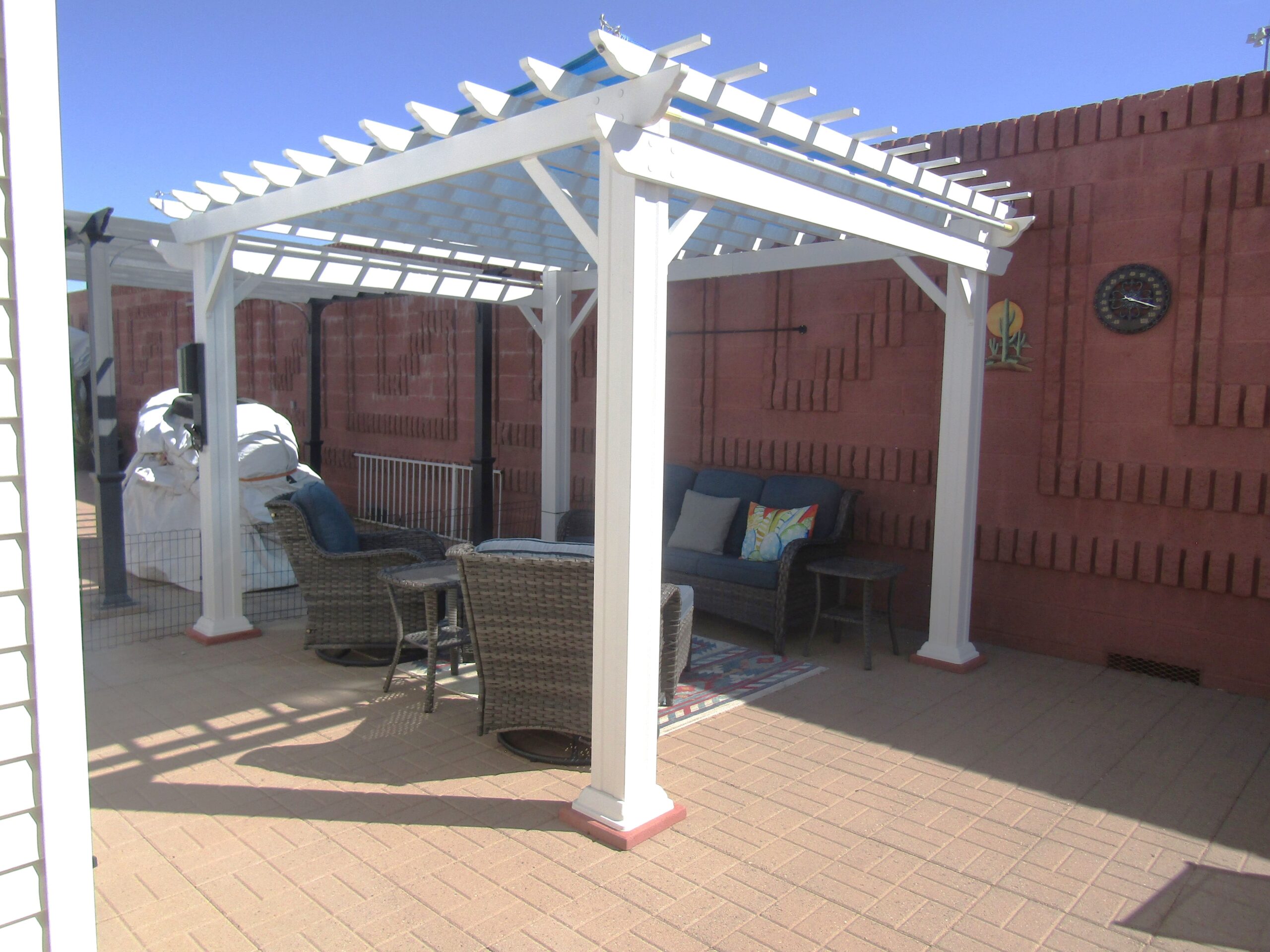 • White Composite Gazebo w/Wicker Furniture, & Patio Table/Chairs – Back Patio Wall Site!
